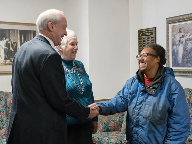 Doug and Cheryl Fisher work with Bishop Stephen Naylor to assist Emily Turner and seven other families in the inner city area. Emily moved to Salt Lake City with her two children in 2005 after being displaced by Hurricane Katrina.