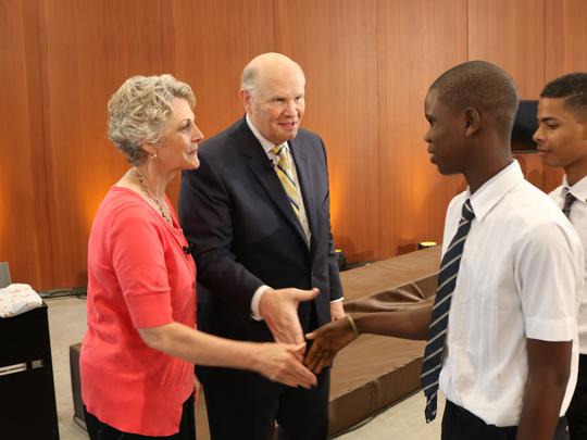 Sharon Eubank, Director of LDS Charities, in London with Prince Charles