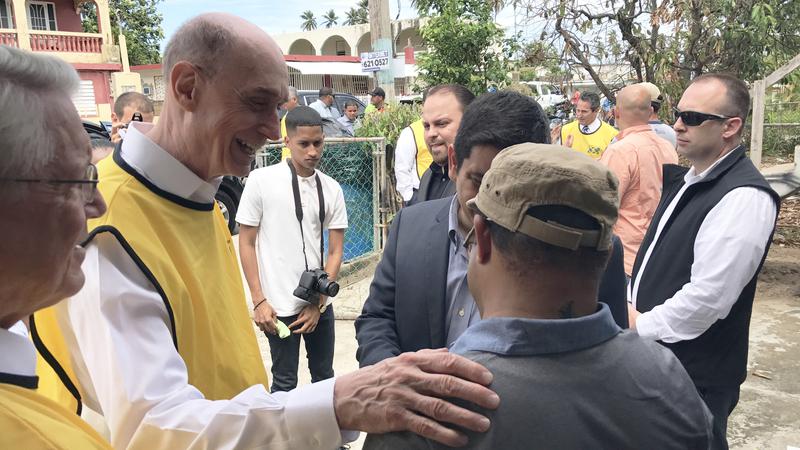 On the heels of stops Friday in Puerto Rico and St. Thomas in the Caribbean, President Eyring was joined by Bishop Dean M. Davies of the Presiding Bishopric and General Authority Seventy Elder Jörg Klebingat as they visited Naples, Florida. Naples was hit especially hard as the eye of Hurricane Irma passed by and unleashed peak wind gusts of 140 miles per hour. The destructive winds caused widespread damage to homes, property and businesses in the area.