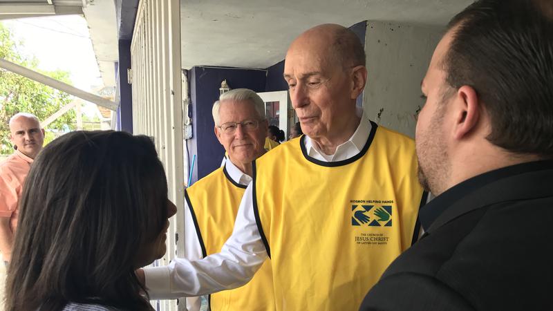 President Henry B. Eyring, first counselor in the First Presidency of The Church of Jesus Christ of Latter-day Saints, visited with government officials and ministered to local Latter-day Saints and residents in the Caribbean Friday, September 15, 2017, in the wake of destructive Hurricane Irma, which battered the islands a week ago.