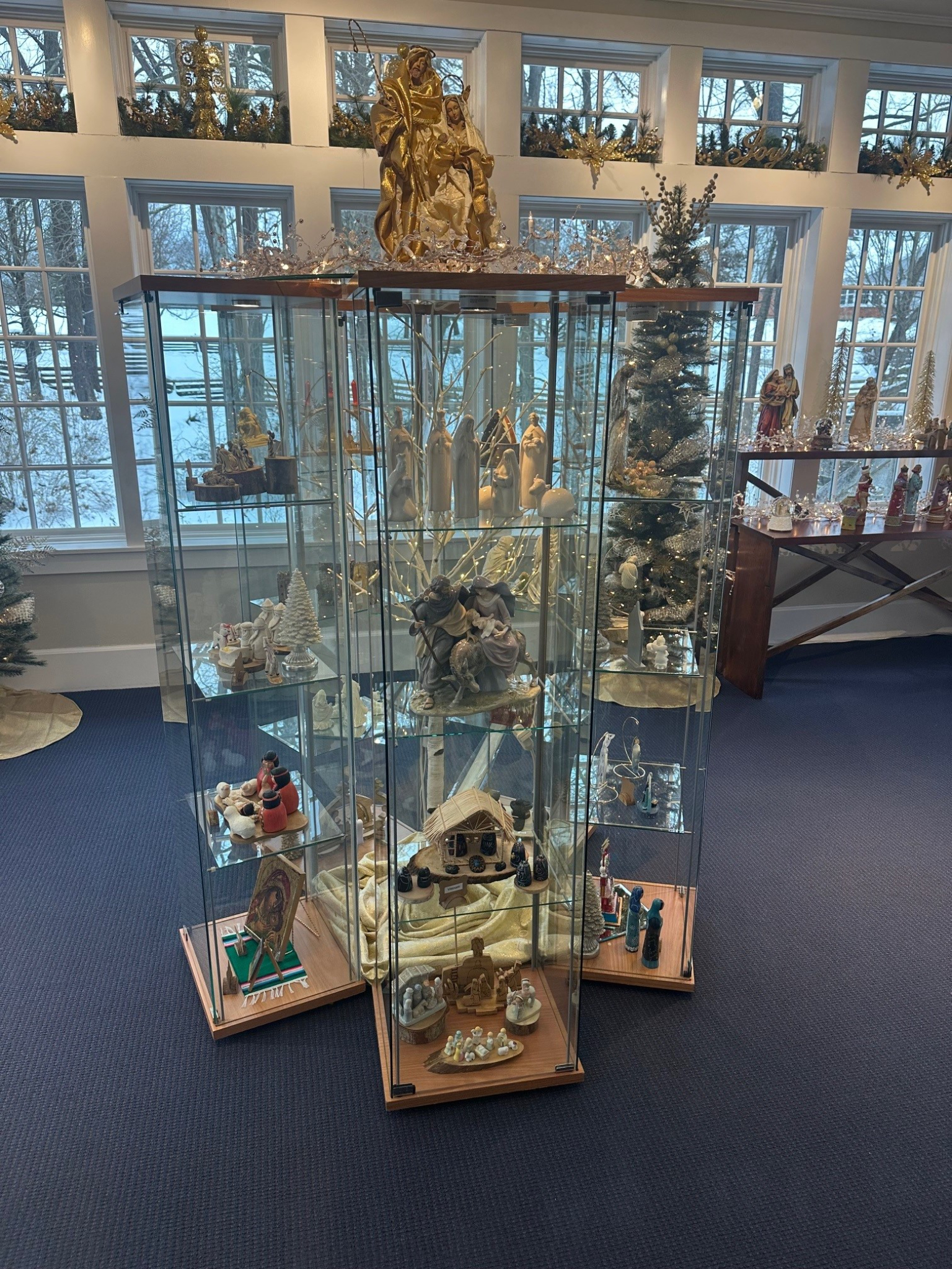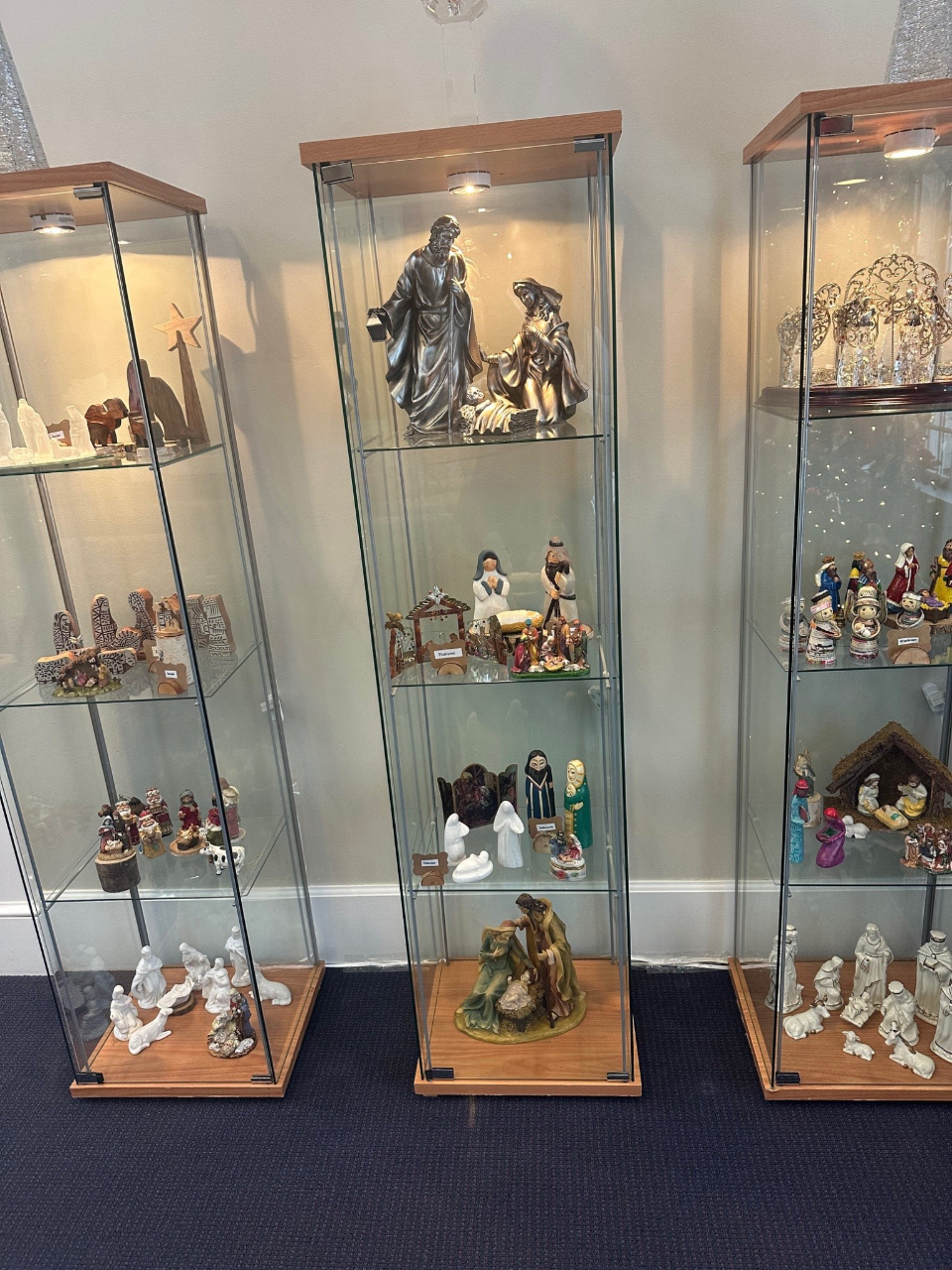 The display consists of numerous variations on the traditional scene with Mary, Joseph and the baby Jesus, along with sheep, camels and donkeys. Some creches feature not-so-traditional lions, giraffes, a hippo, a snake and even a turtle.
