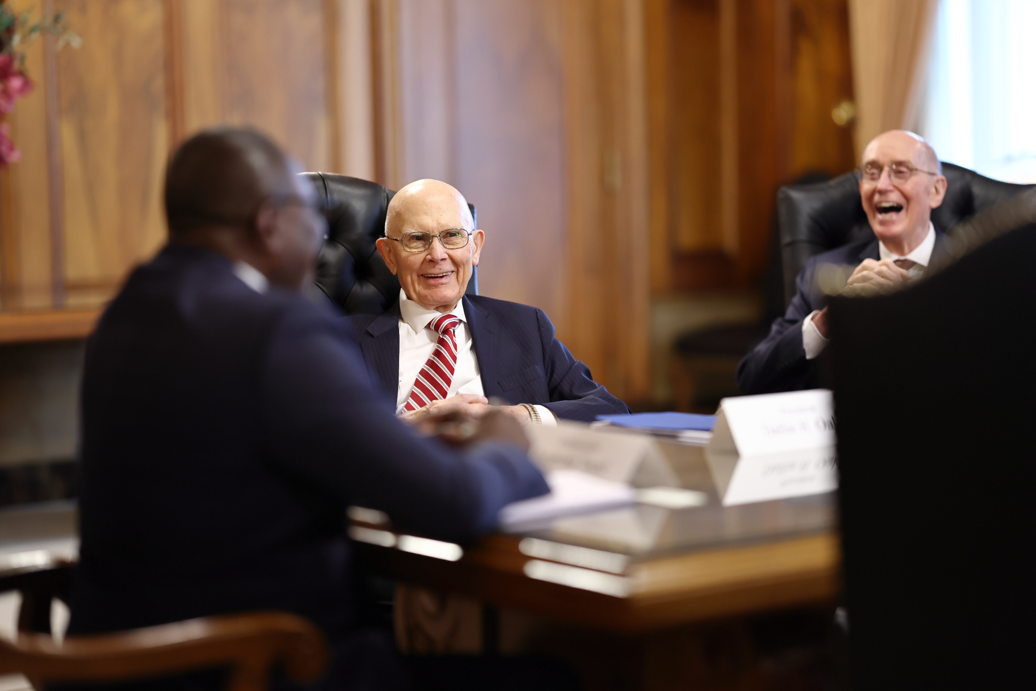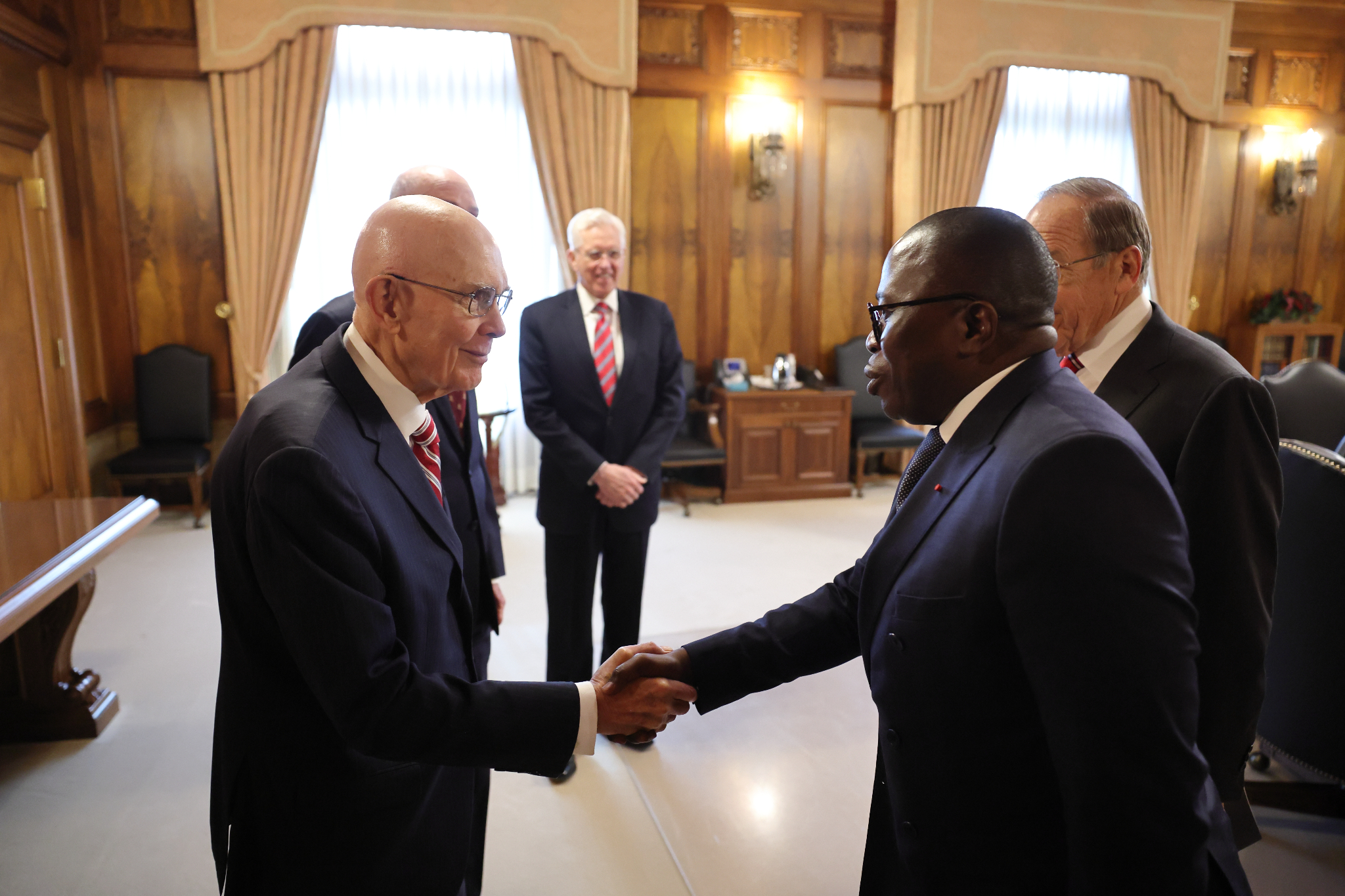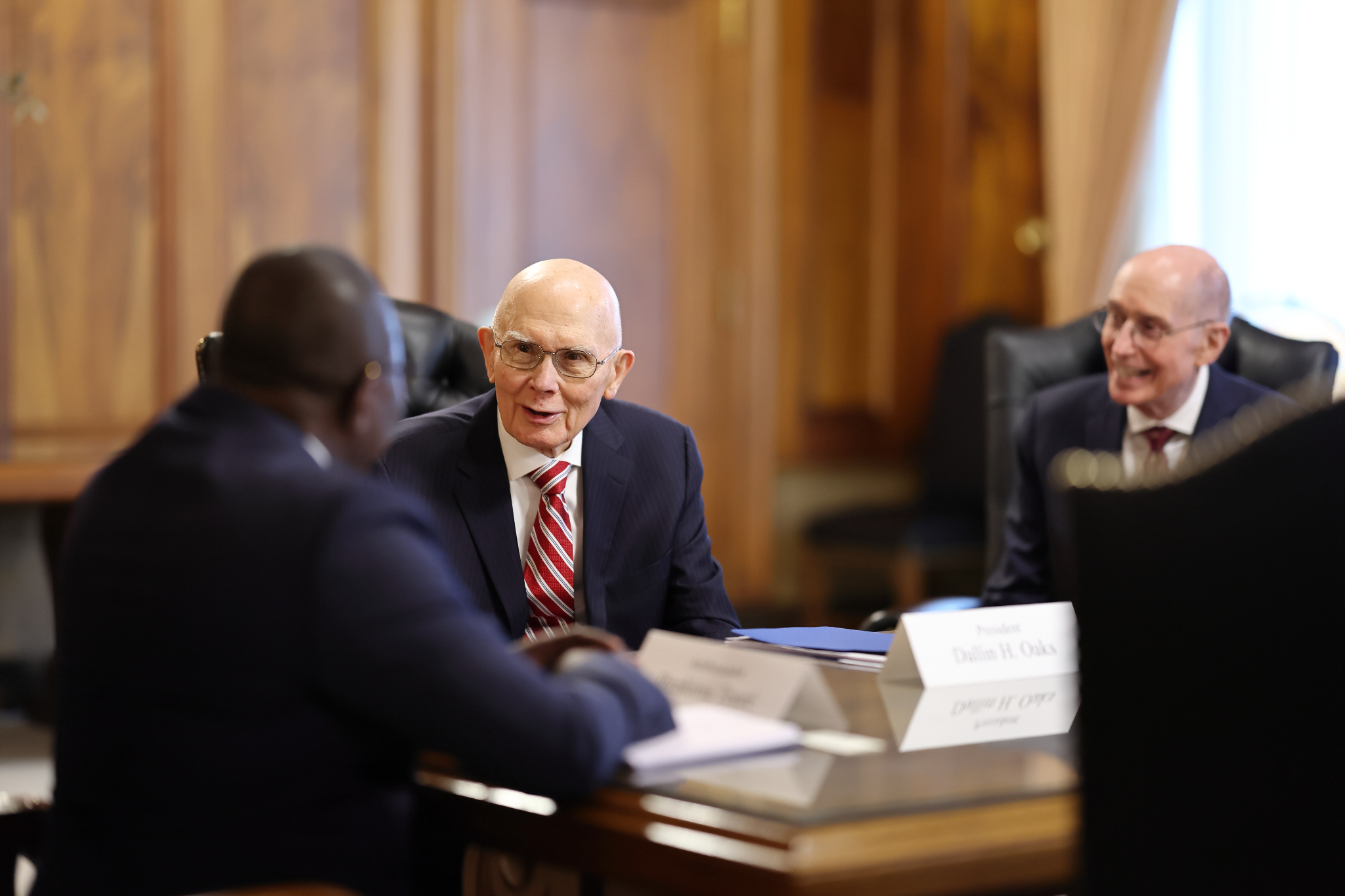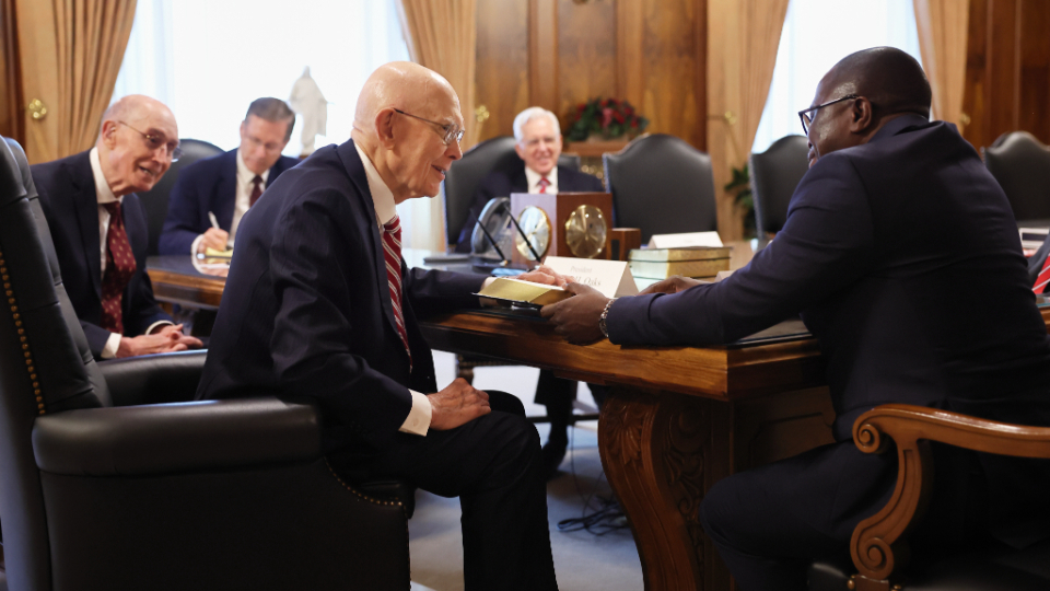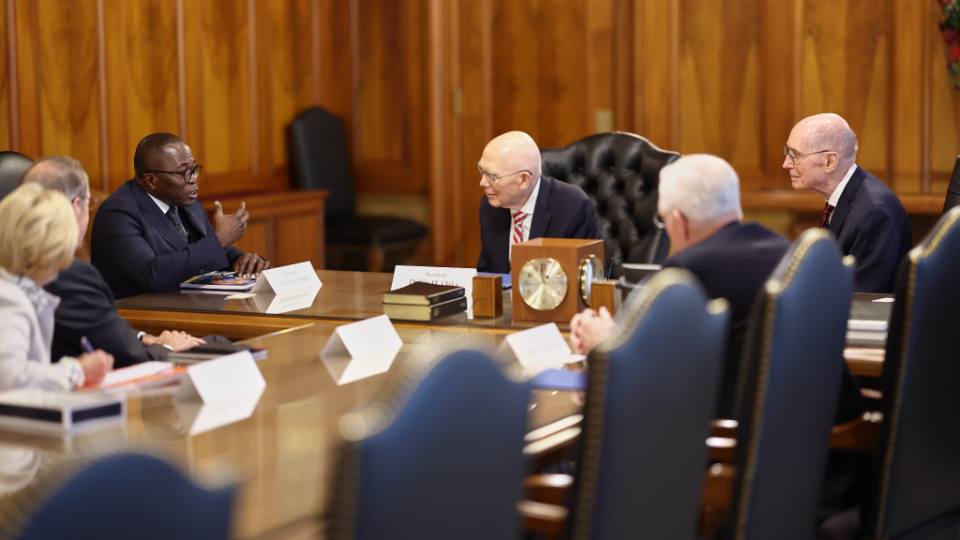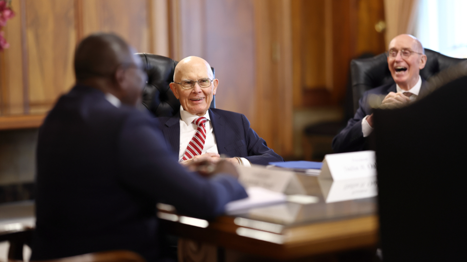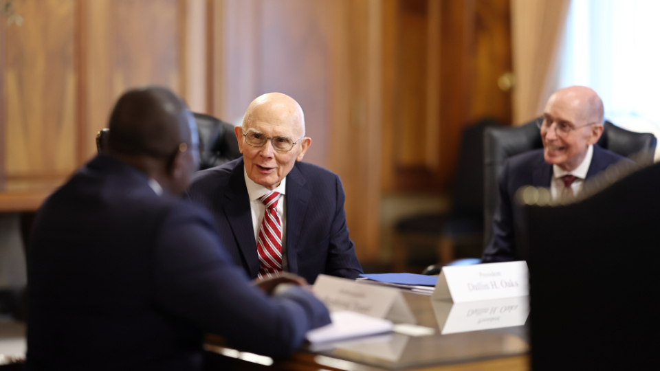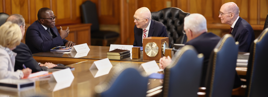 He then met with members of the First Presidency — President Dallin H. Oaks and President Henry B. Eyring — as well as Elder D. Todd Christofferson of the Quorum of the Twelve Apostles.