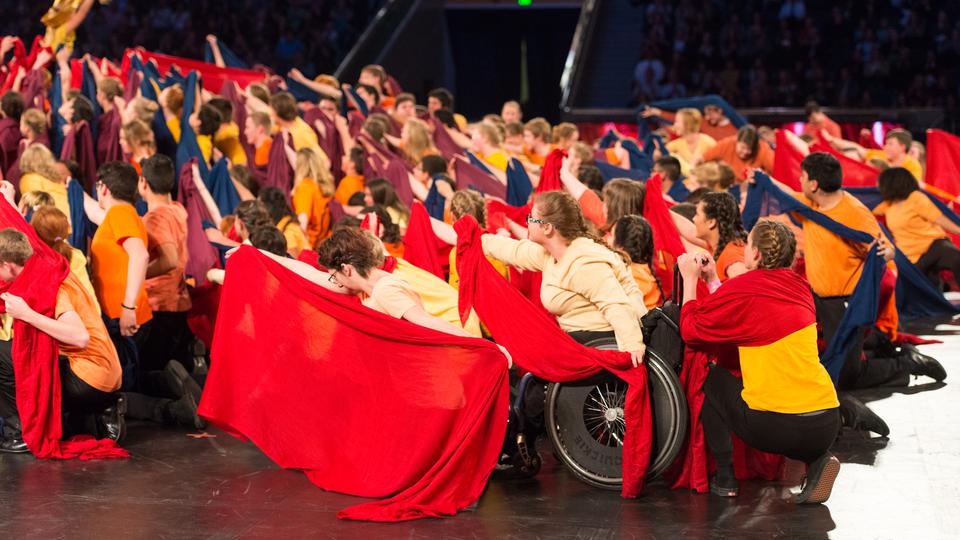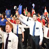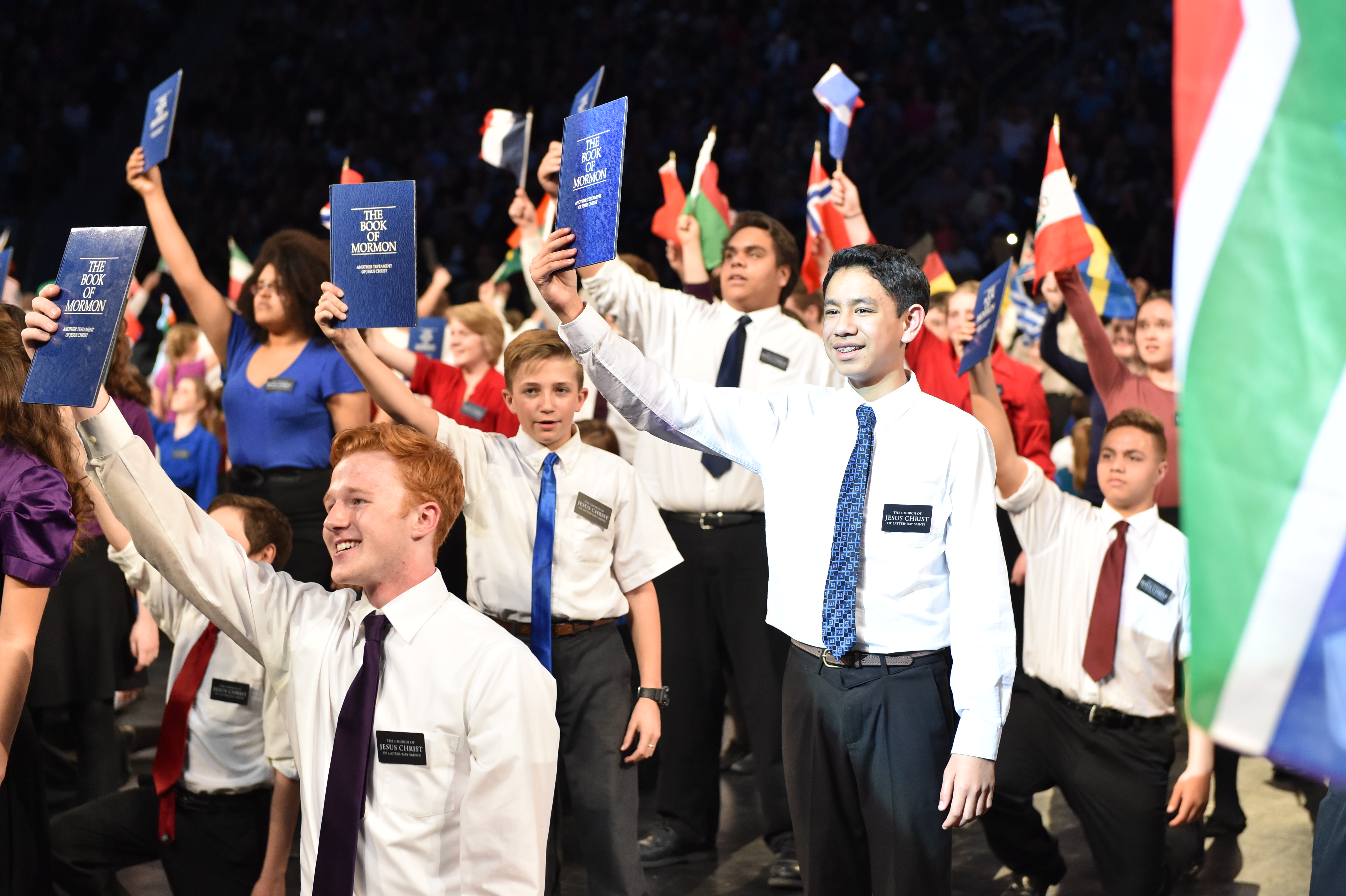 On Saturday night, March 19, 4,500 Latter-day Saint youth gathered in Brigham Young University’s Marriott Center for an evening of entertainment and historical reflection. The young people presented the history of the Church in Utah and celebrated the completion of the Provo City Center Temple.