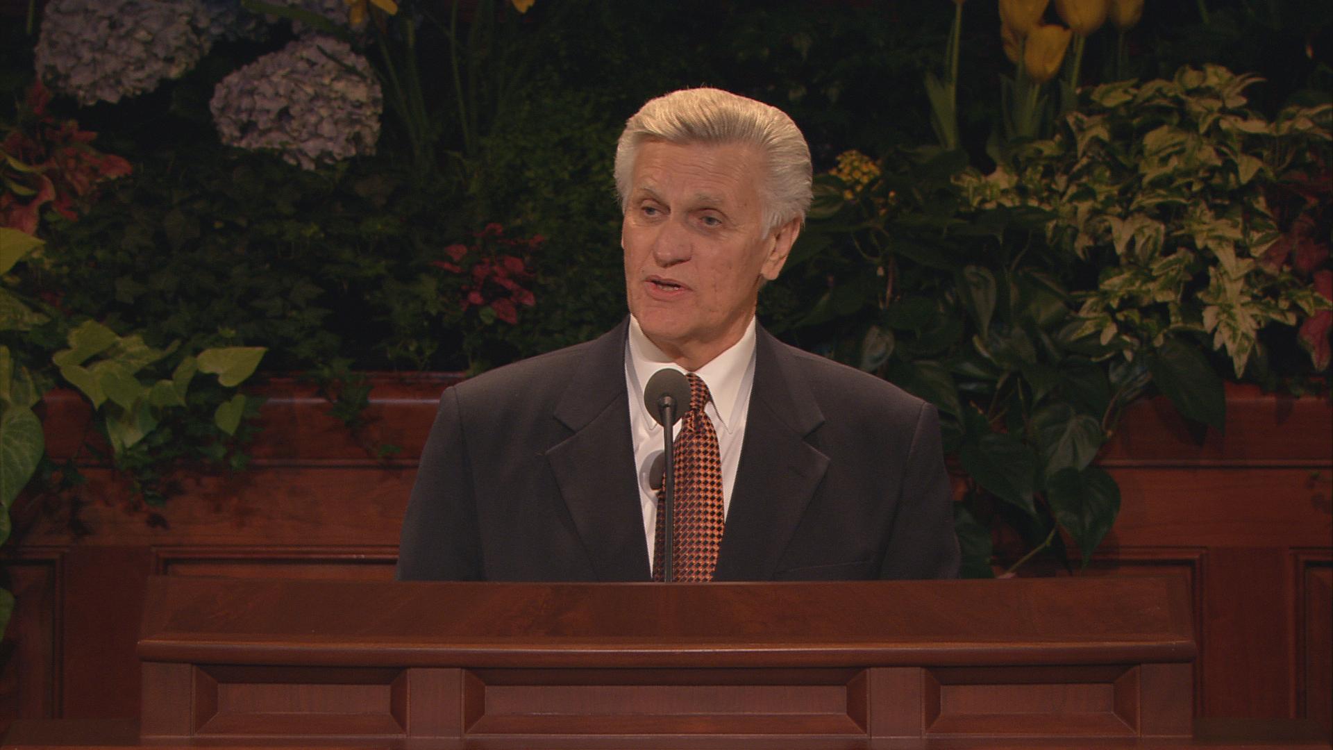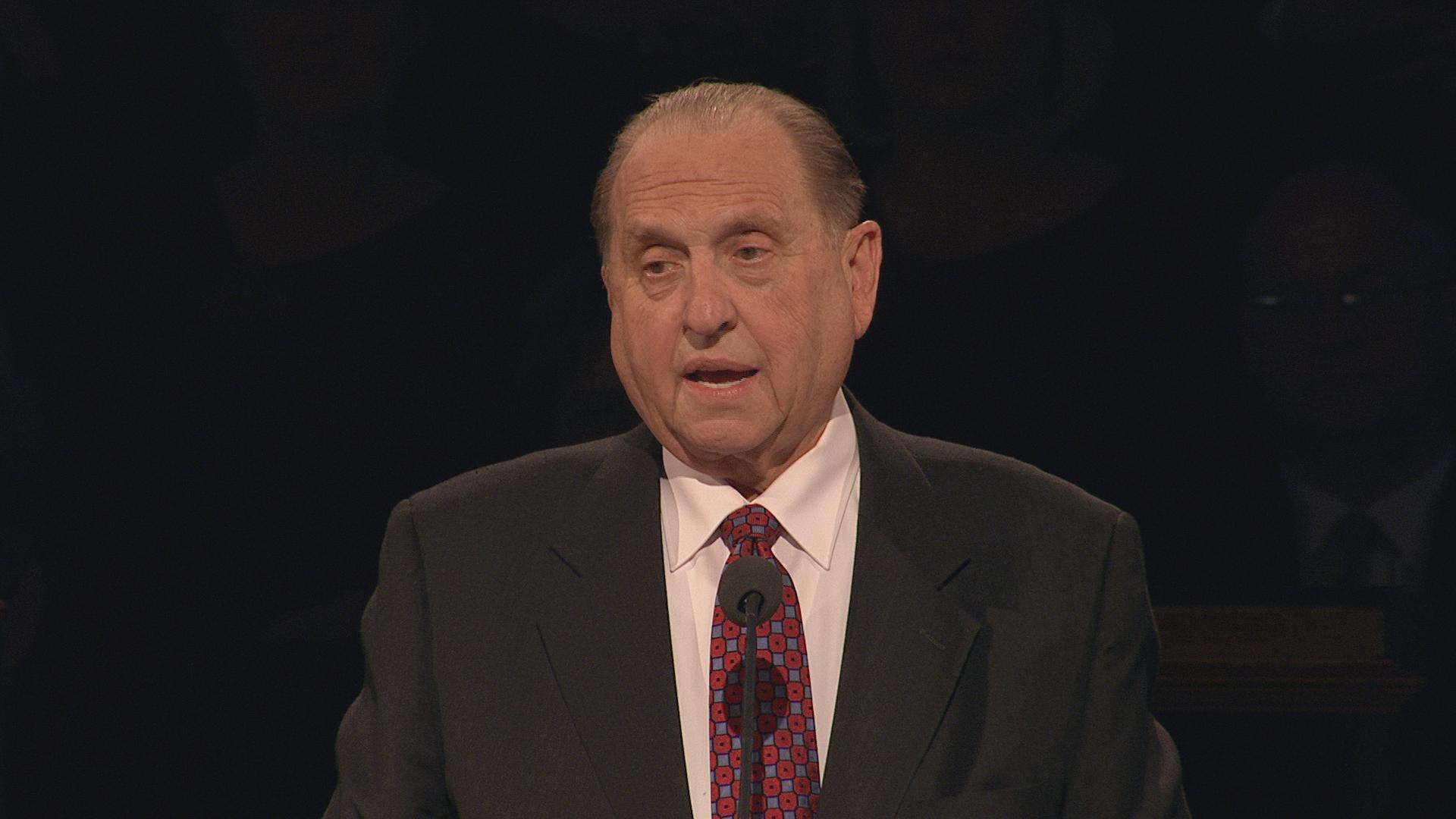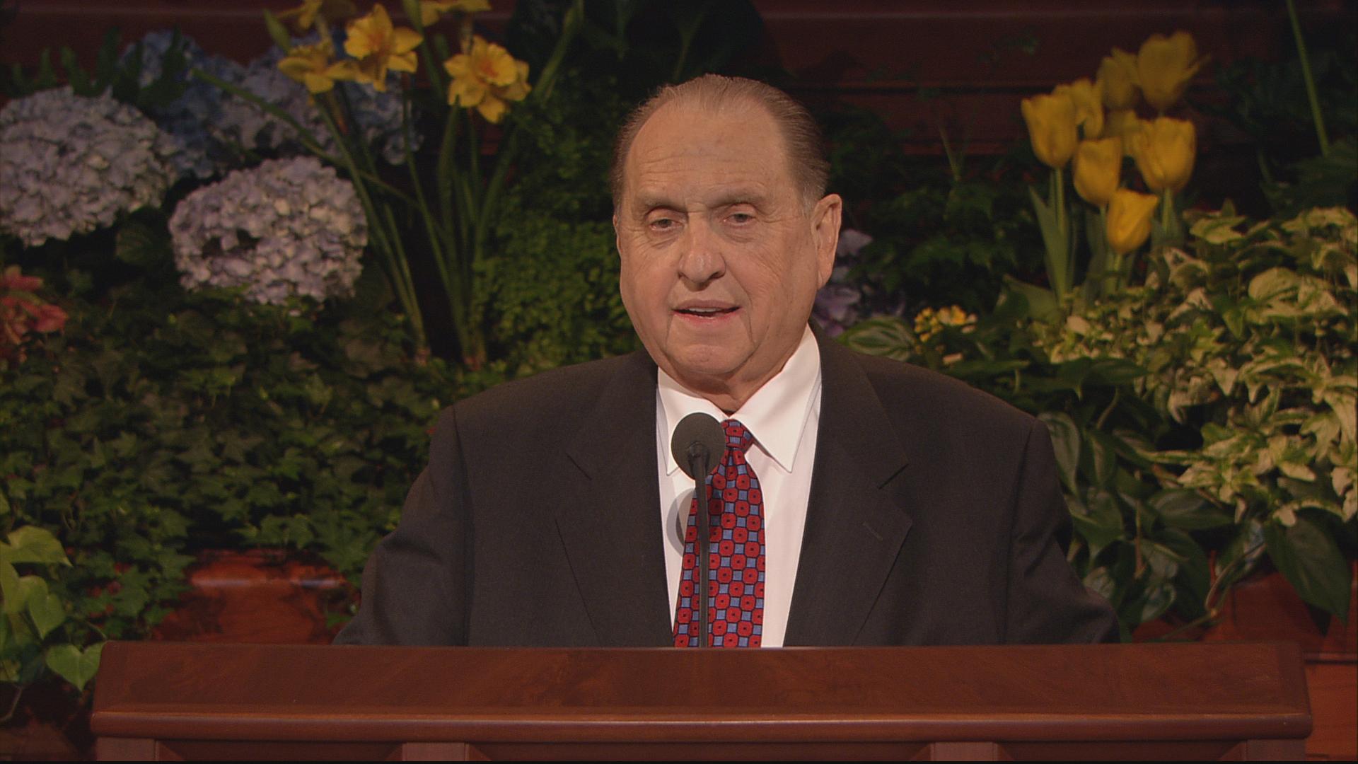 With his well-known humor and wit, President Gordon B. Hinckley, age 96, said in his Sunday morning address, “The wind is blowing, and I feel like the last leaf on the tree. Actually my health is quite good, despite all the rumors to the contrary. Skillful doctors and nurses keep me on the right track, and some of you may go before I do.”