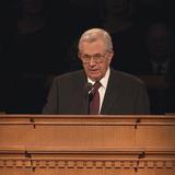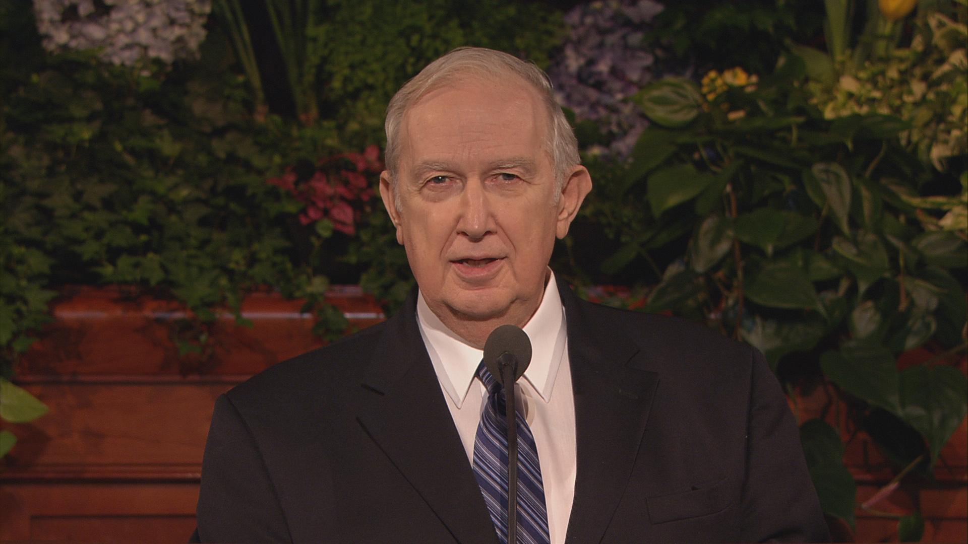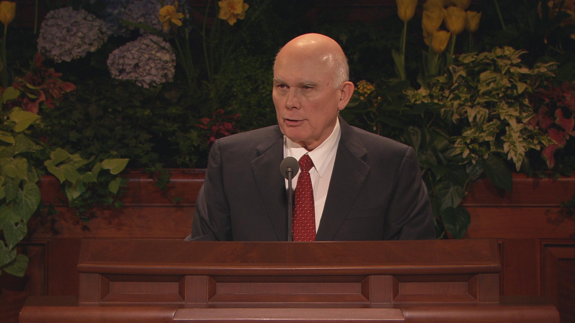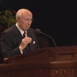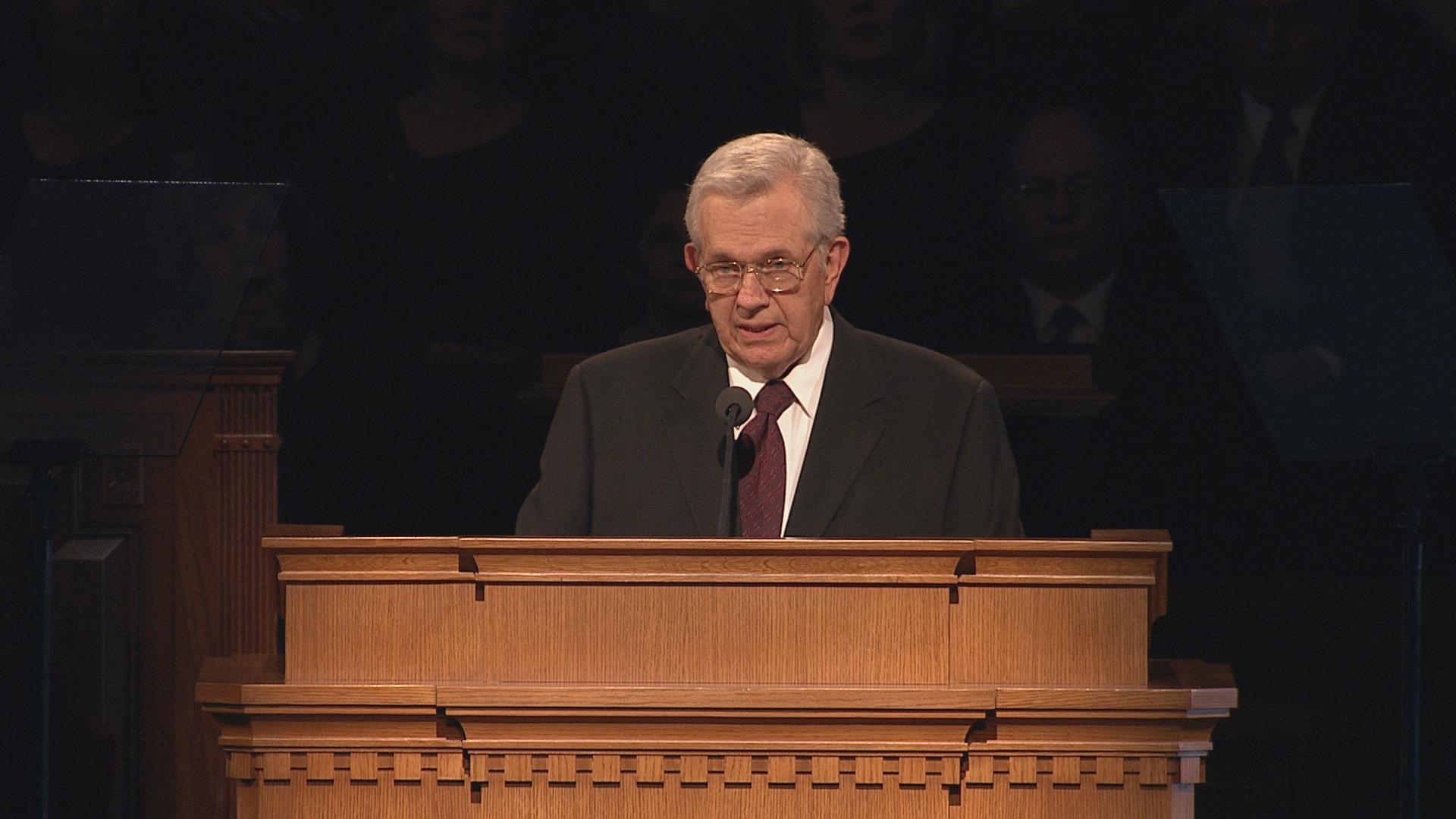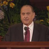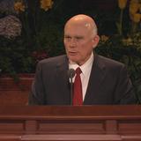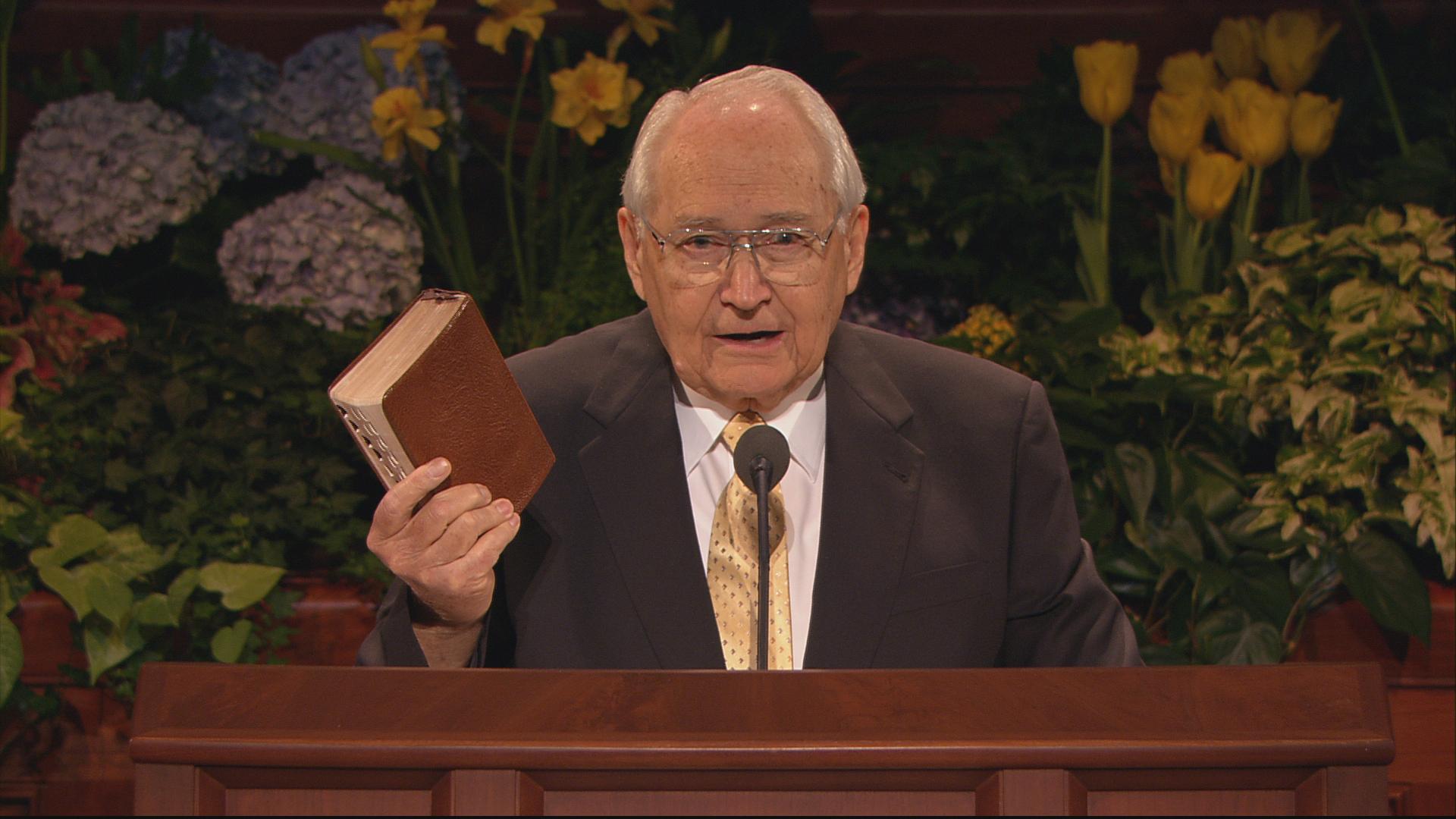 With his well-known humor and wit, President Gordon B. Hinckley, age 96, said in his Sunday morning address, “The wind is blowing, and I feel like the last leaf on the tree. Actually my health is quite good, despite all the rumors to the contrary. Skillful doctors and nurses keep me on the right track, and some of you may go before I do.”