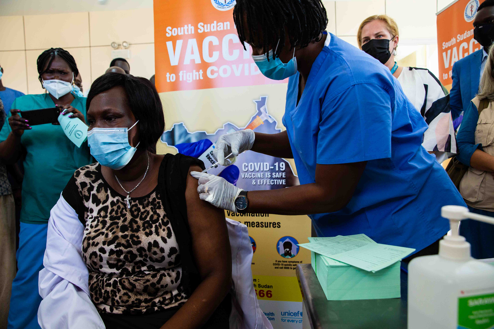 “We have just received the first stop of the COVID-19 vaccines,” said Hamida Lasseko, UNICEF representative in South Sudan. “This is targeting mostly the frontline health workers and also the people who are living with underlying conditions. This is just the beginning. It is the first consignment.”