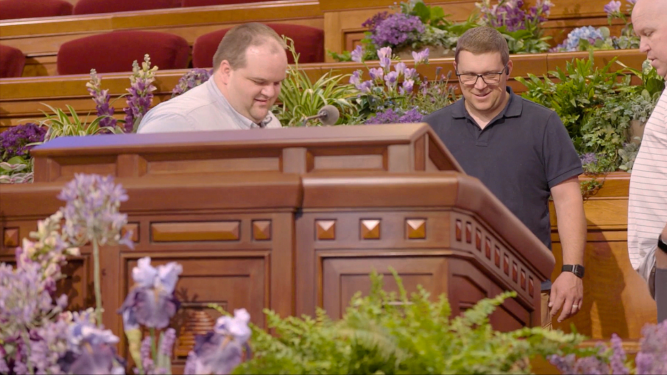 From rehearsing individually with each speaker to wrapping cables and putting tape on the floor, the entire production of certain elements of general conference are highly coordinated, tested and rehearsed. Redundancies are built into the process, and every role on the broadcast team is significant.