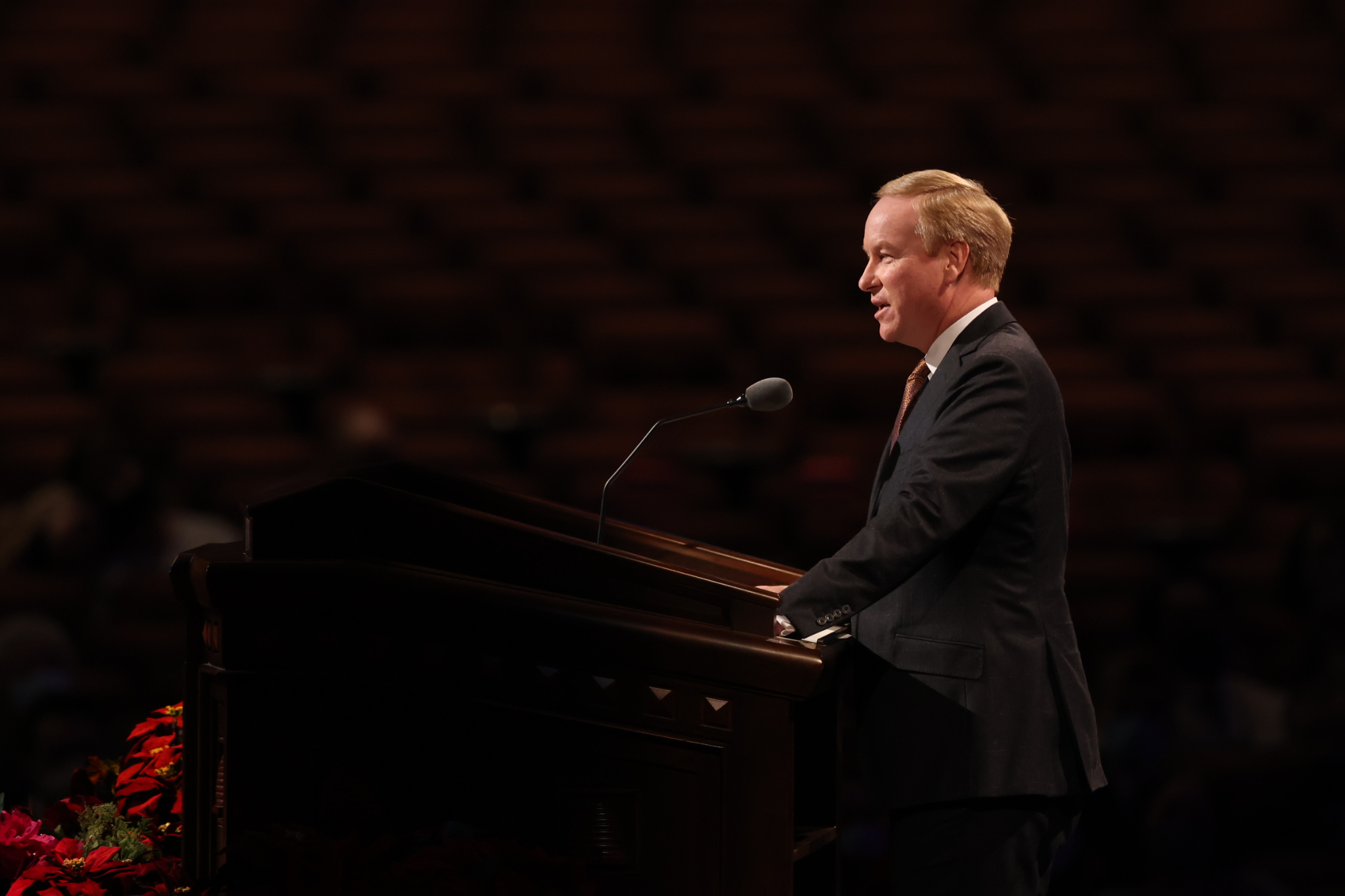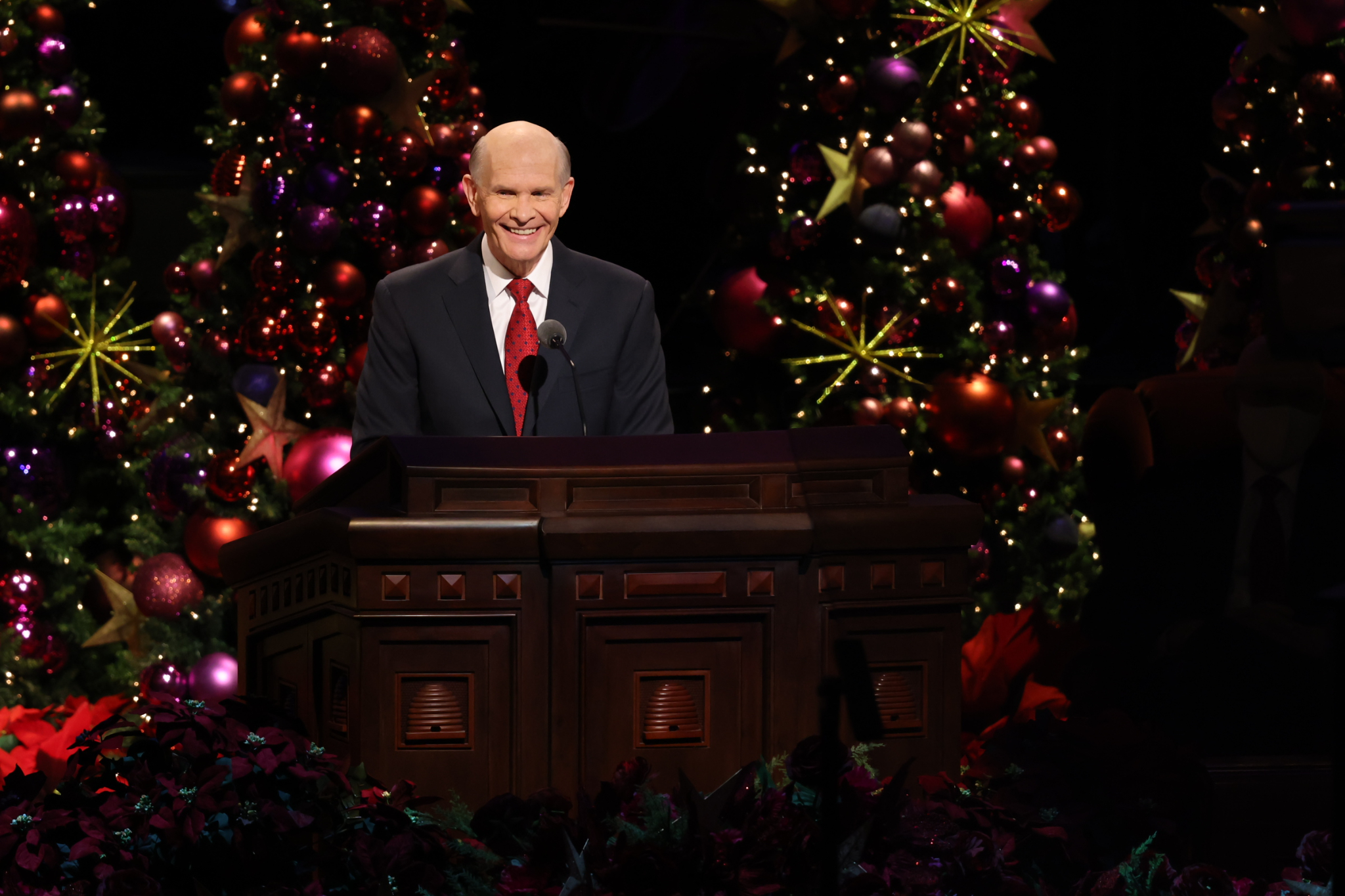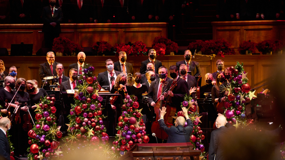 The speakers were President Henry B. Eyring, Second Counselor in the First Presidency; Elder Dale G. Renlund of the Quorum of the Twelve Apostles; Elder W. Mark Bassett of the Seventy; and Sister Michelle D. Craig of the Young Women General Presidency. The Tabernacle Choir at Temple Square performed “Hark! The Herald Angels Sing,” “O Little Town of Bethlehem,” “In the Bleak Midwinter,” “O Holy Night,” and “Silent Night.”