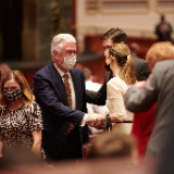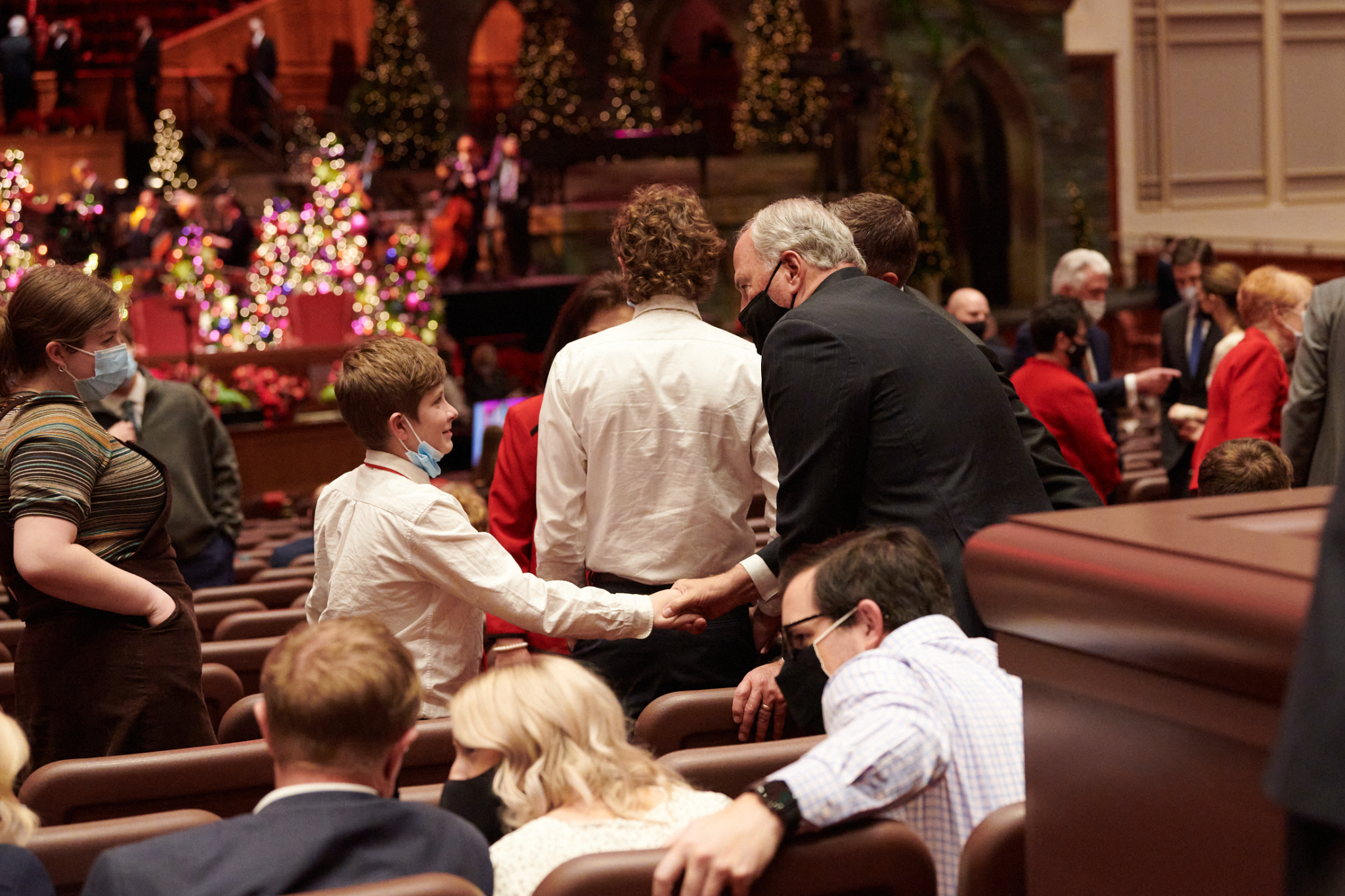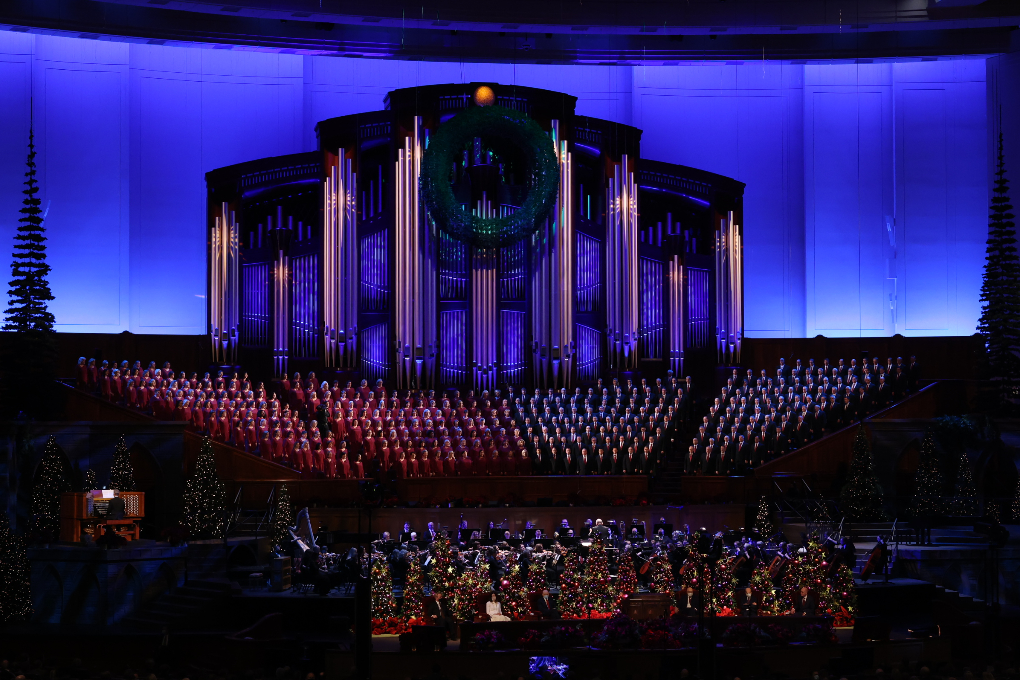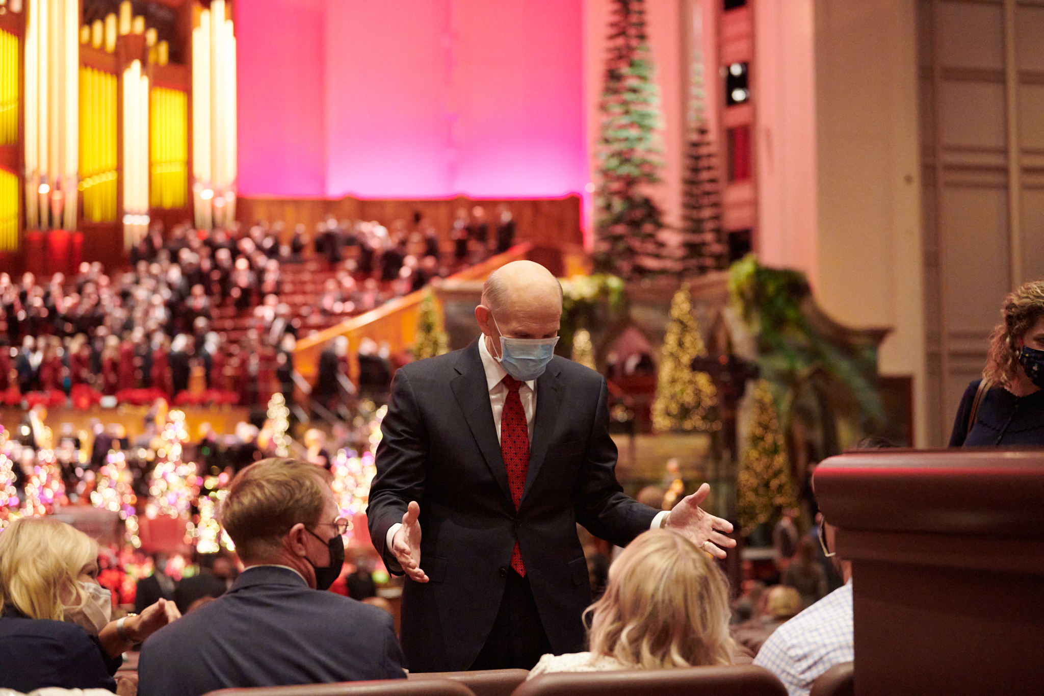 The speakers were President Henry B. Eyring, Second Counselor in the First Presidency; Elder Dale G. Renlund of the Quorum of the Twelve Apostles; Elder W. Mark Bassett of the Seventy; and Sister Michelle D. Craig of the Young Women General Presidency. The Tabernacle Choir at Temple Square performed “Hark! The Herald Angels Sing,” “O Little Town of Bethlehem,” “In the Bleak Midwinter,” “O Holy Night,” and “Silent Night.”