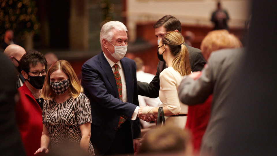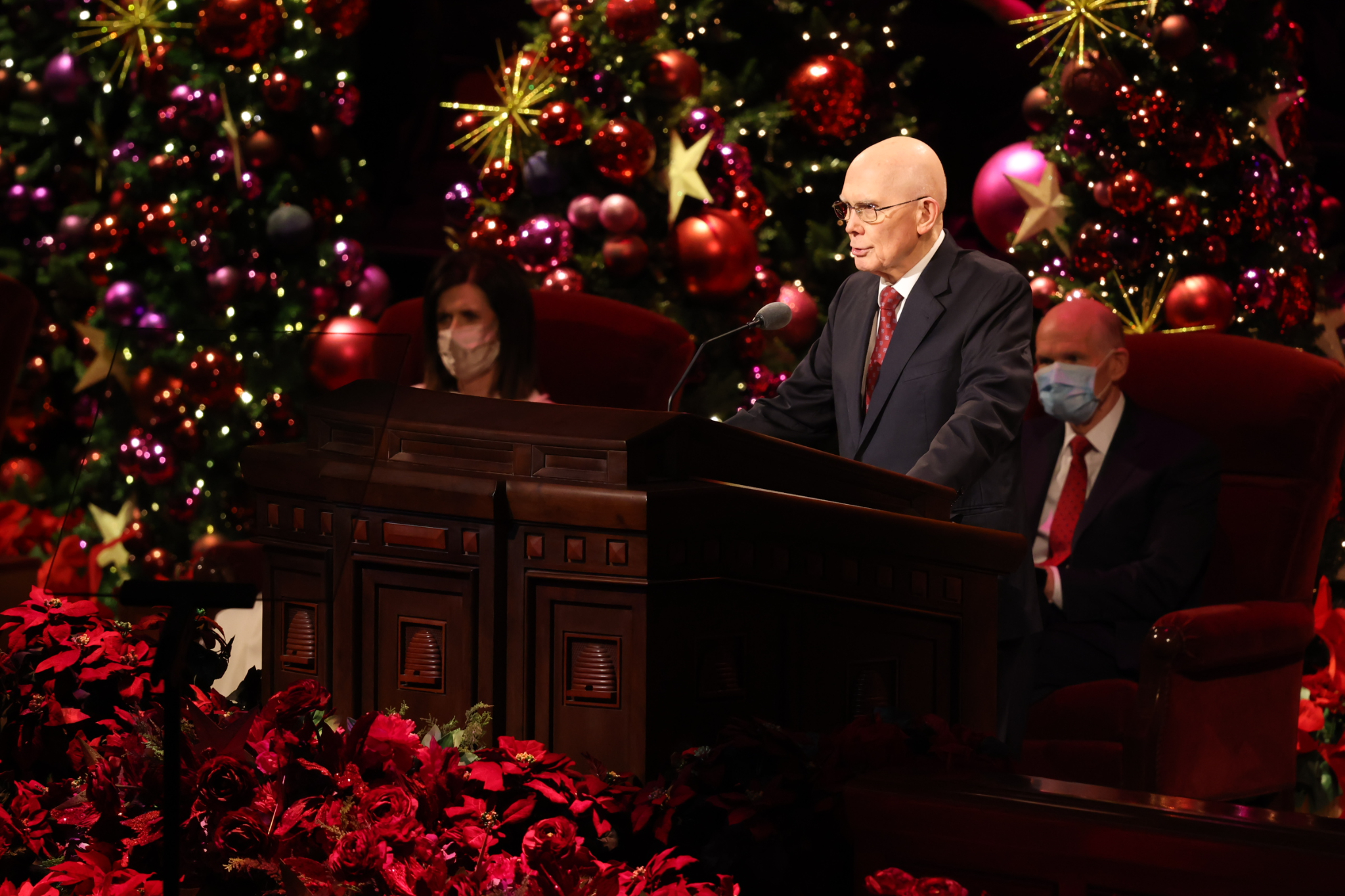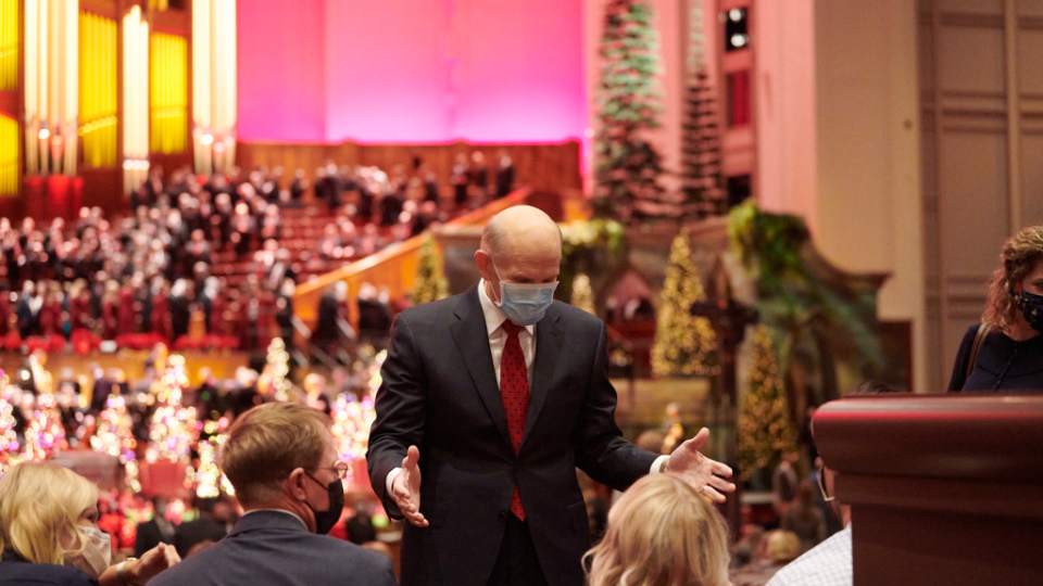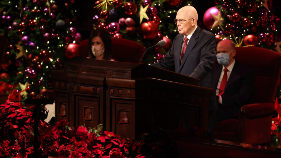 Four leaders of The Church of Jesus Christ of Latter-day Saints, along with the Tabernacle Choir at Temple Square, lifted Church members and friends of the faith around the world on Sunday with messages of peace and hope at the 2021 First Presidency Christmas devotional.