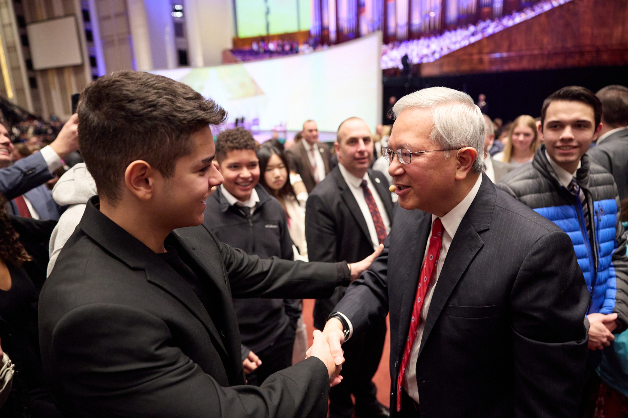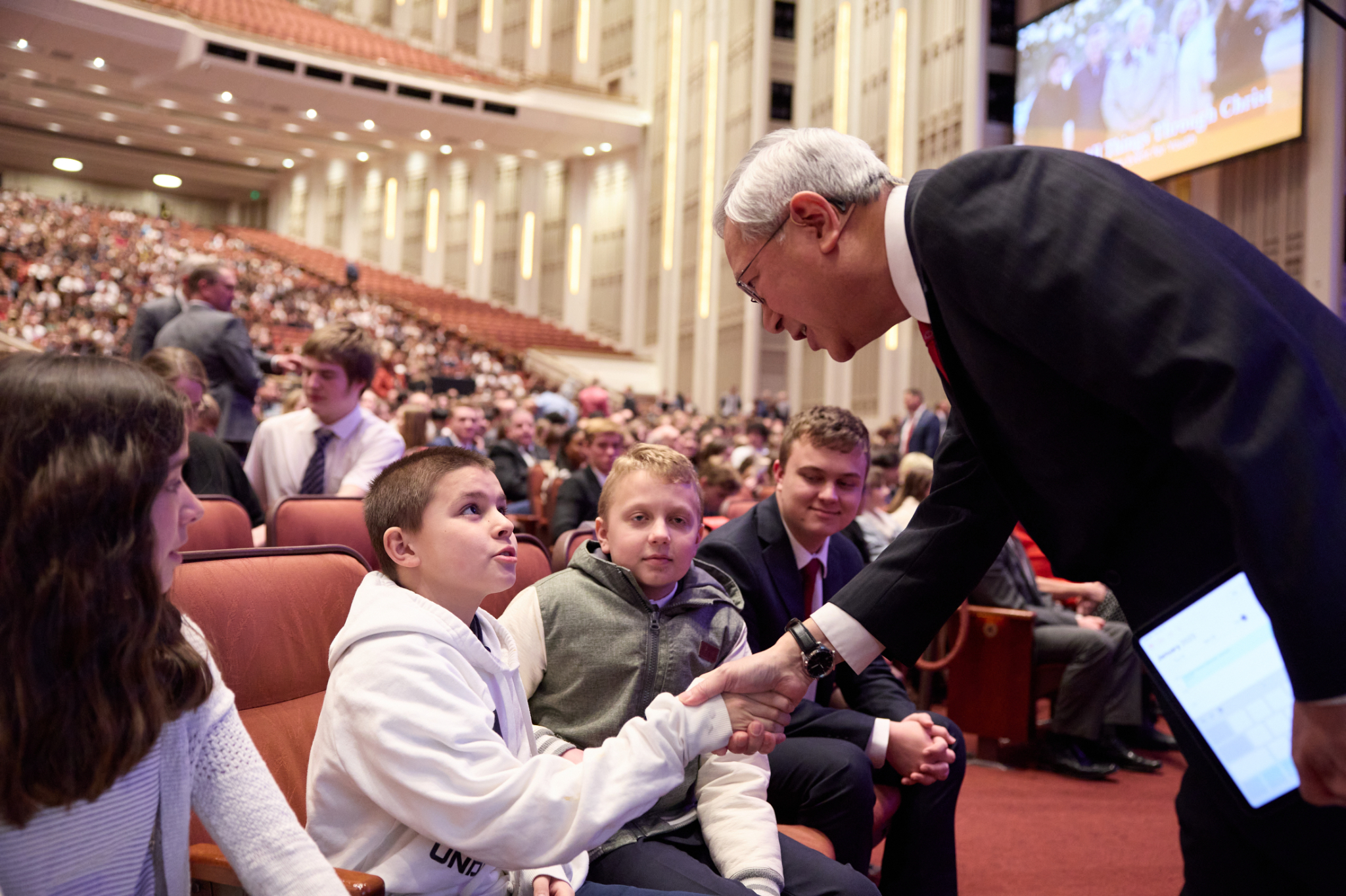 Latter-day Saint youth speak with Elder Gerrit W. Gong of the Quorum of the Twelve Apostles, Young Women General President Bonnie H. Cordon and Young Men General President Steven J. Lund at a worldwide devotional for youth in the Conference Center in Salt Lake City on Sunday, January 22, 2023.2023 by Intellectual Reserve, Inc. All rights reserved.“I would a thousand times rather have God on my side when I’m going through those hardships than when I’m not,” Bryson said. “We’re here to grow, to learn, to make connections, meet people. That’s just super powerful.”