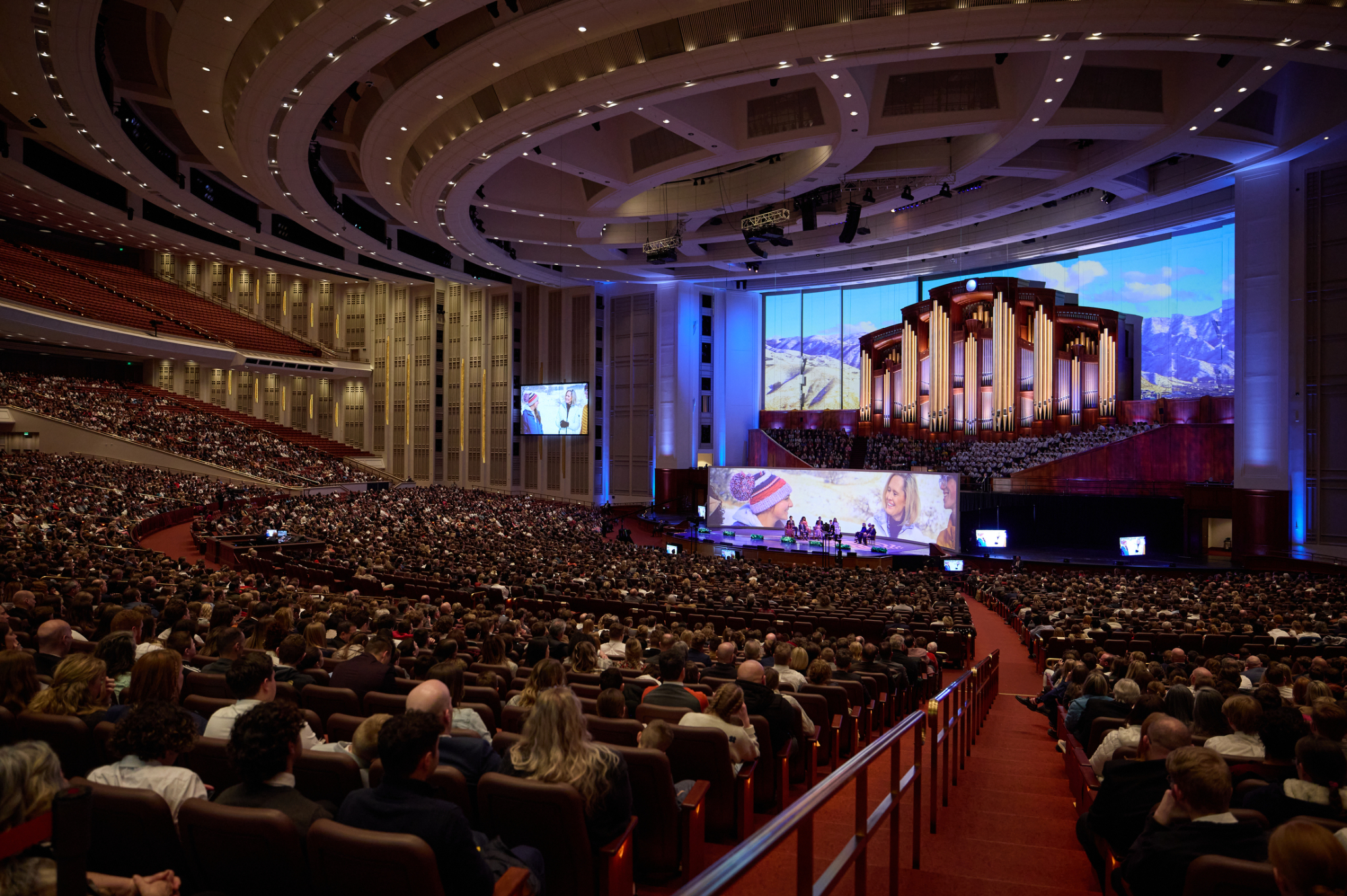 Young men and women watch a devotional in the Conference Center in Salt Lake City with Elder Gerrit W. Gong of the Quorum of the Twelve Apostles, Young Women General President Bonnie H. Cordon and Young Men General President Steven J. Lund on Sunday, January 22, 2023.2023 by Intellectual Reserve, Inc. All rights reserved.President Cordon said cultivating a relationship with Jesus will bolster our bonds with family and friends.