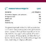 Through ongoing collaboration with the World Food Program USA, UNICEF, CARE and other organizations, the Church supported 591 food security projects and 267 clean water, hygiene and sanitation projects.