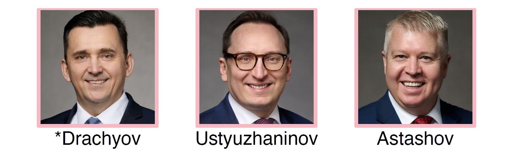 The Eurasian Area Presidency for 2026–2027, from left to right: Elder Aleksandr A. Drachyov, President; Elder Nikolai Ustyuzhaninov; and Elder Vladimir N. Astashov. All are Area Seventies.