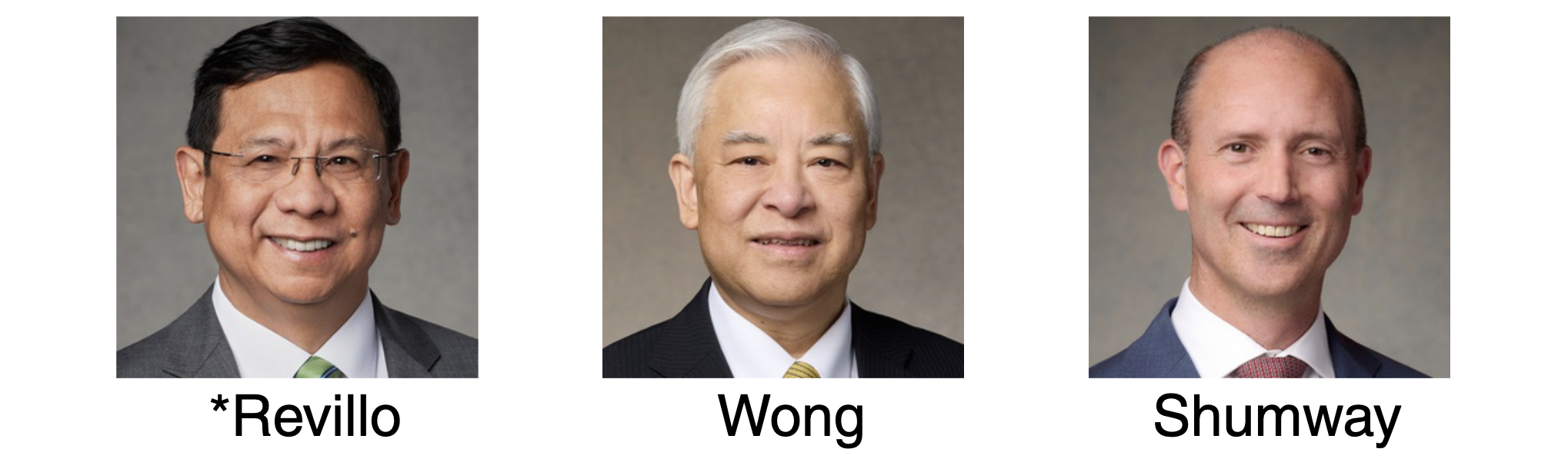 The Philippines Area Presidency for 2026–2027, from left to right: Elder Carlos G. Revillo Jr., President; Elder Chi Hong (Sam) Wong; and Elder Steven D. Shumway.