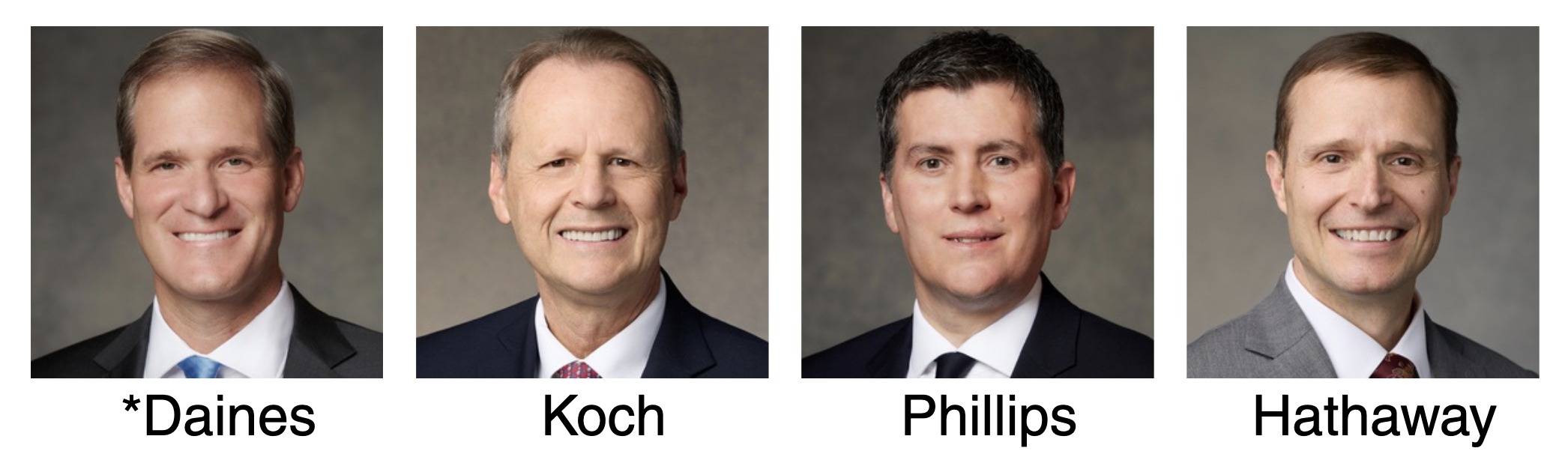 The United States Northeast Area Presidency for 2026–2027, from left to right: Elder Robert M. Daines, President; Elder Joni L. Koch; Elder Alan T. Phillips; and Elder Kevin J. Hathaway.