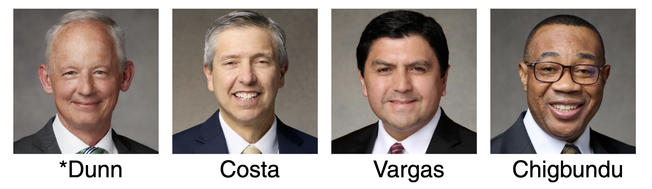 The United States Southwest Area Presidency for 2026–2027, from left to right: Elder Michael A. Dunn, President; Elder Joaquin E. Costa; Elder Sergio R. Vargas; and Elder Christian C. Chigbundu.
