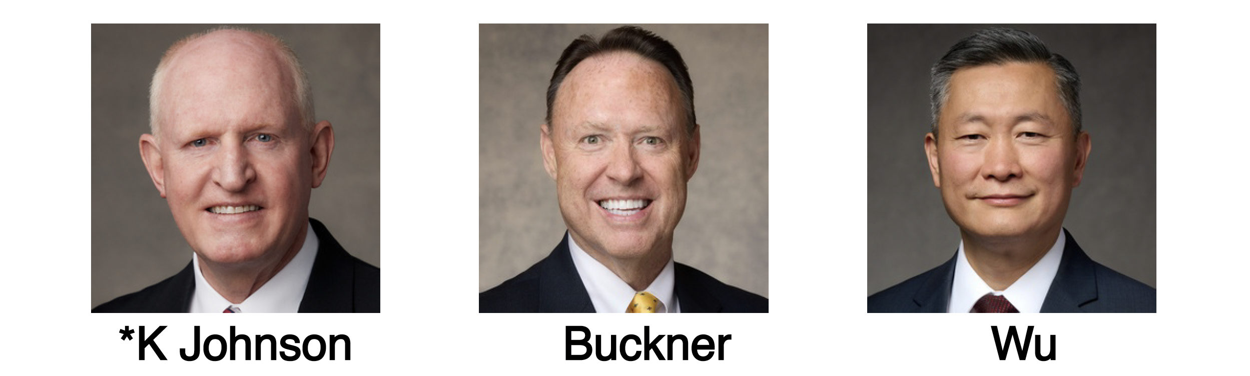 The Asia Area Presidency for 2026–2027, from left to right: Elder Kelly R. Johnson, President; Elder David L. Buckner; and Elder Wan-Liang Wu.