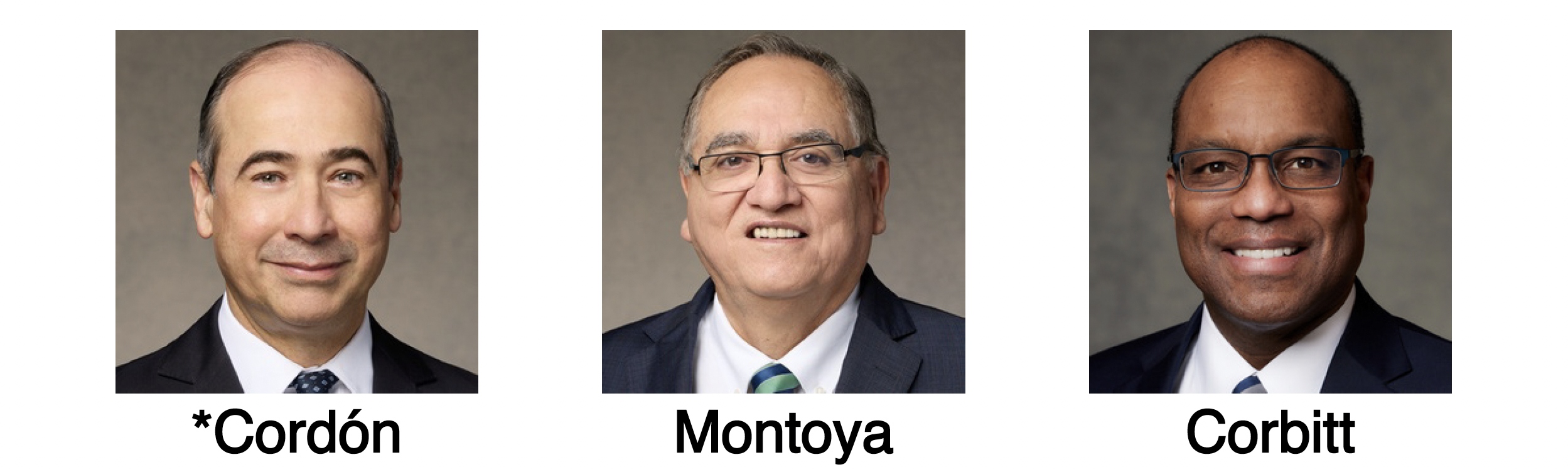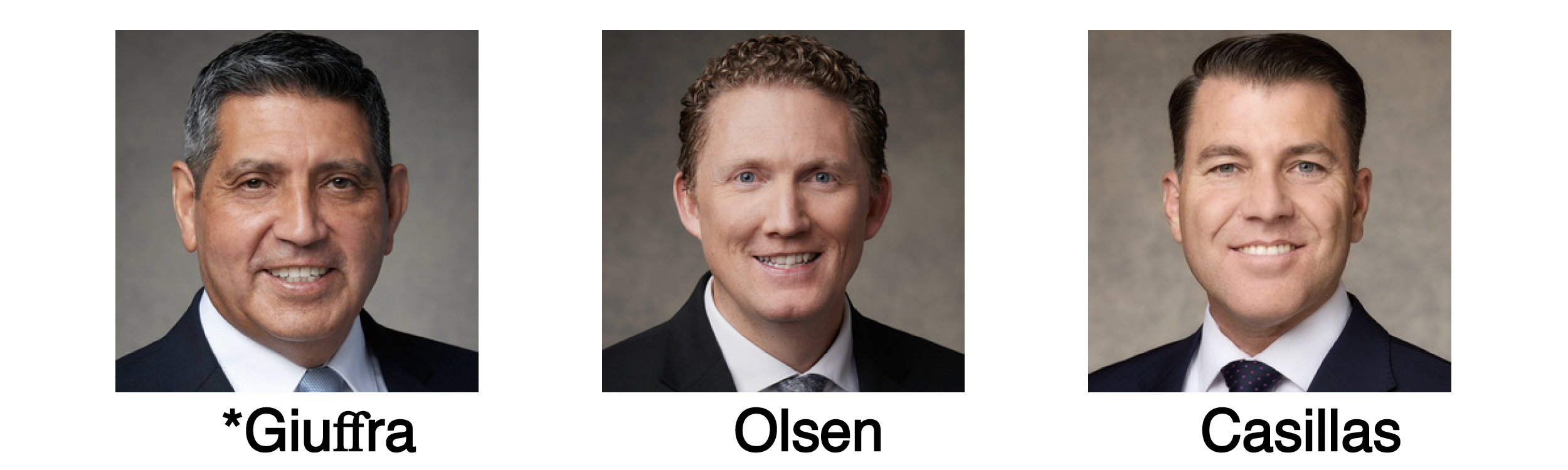 The Central America Area Presidency for 2026–2027, from left to right: Elder Patricio M. Guiffra, President; Elder Ryan K. Olsen; and Elder Gregorio E. Casillas.