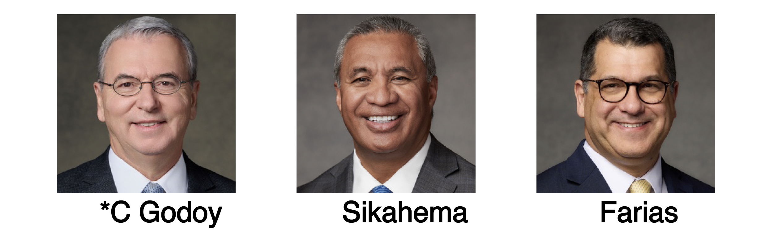 The Africa South Area Presidency for 2026–2027, from left to right: Elder Carlos A. Godoy, President; Elder Vaiangina Sikahema; and Elder Ozani Farias.