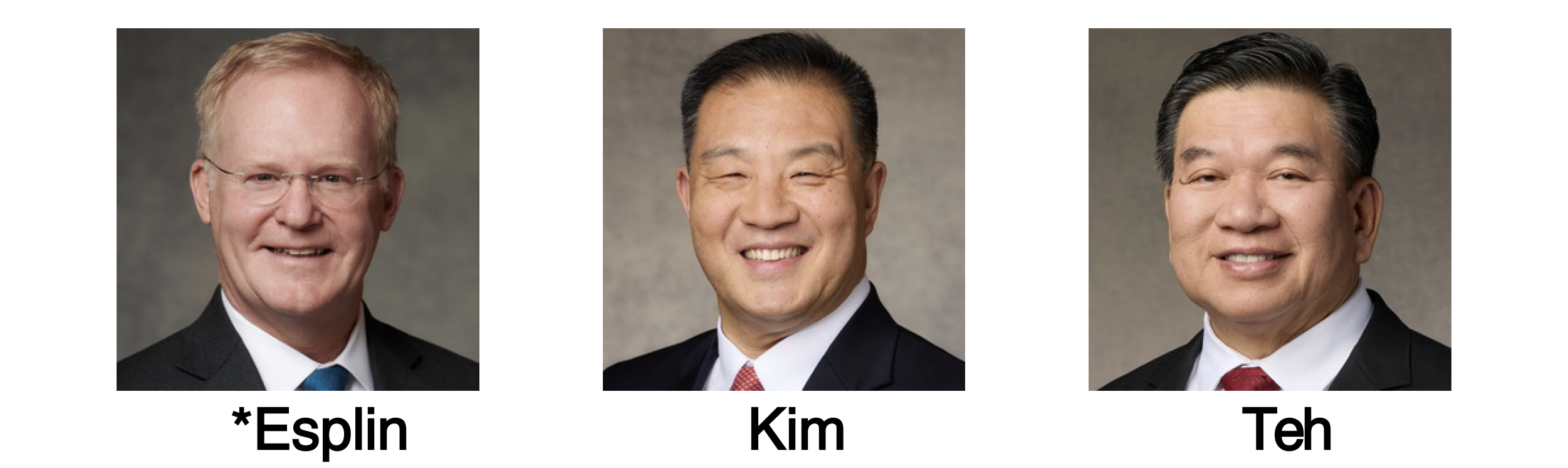 The Asia North Area Presidency for 2026–2027, from left to right: Elder J. Kimo Esplin, President; Elder Christopher H. Kim; and Elder Michael John U. Teh.