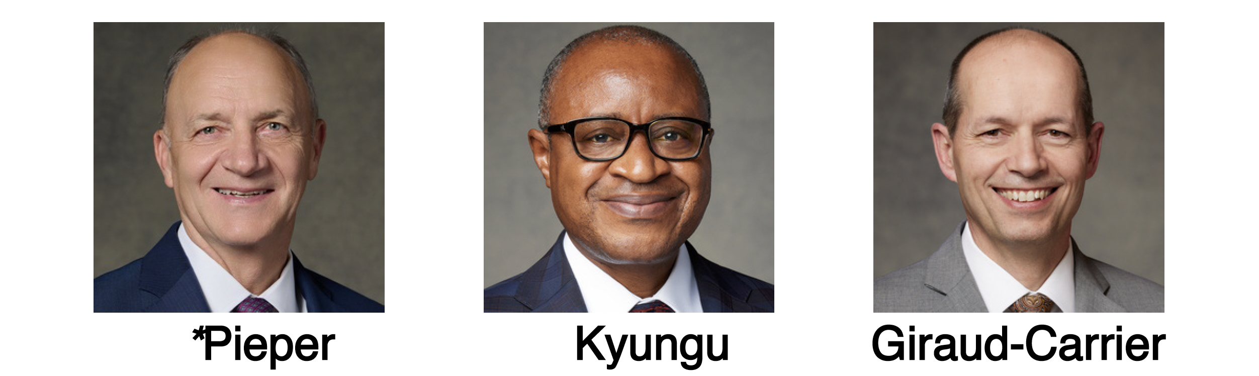 The Africa Central Area Presidency for 2026–2027, from left to right: Elder Paul B. Pieper, President; Elder Alfred Kyungu; and Elder Christophe G. Giraud-Carrier.