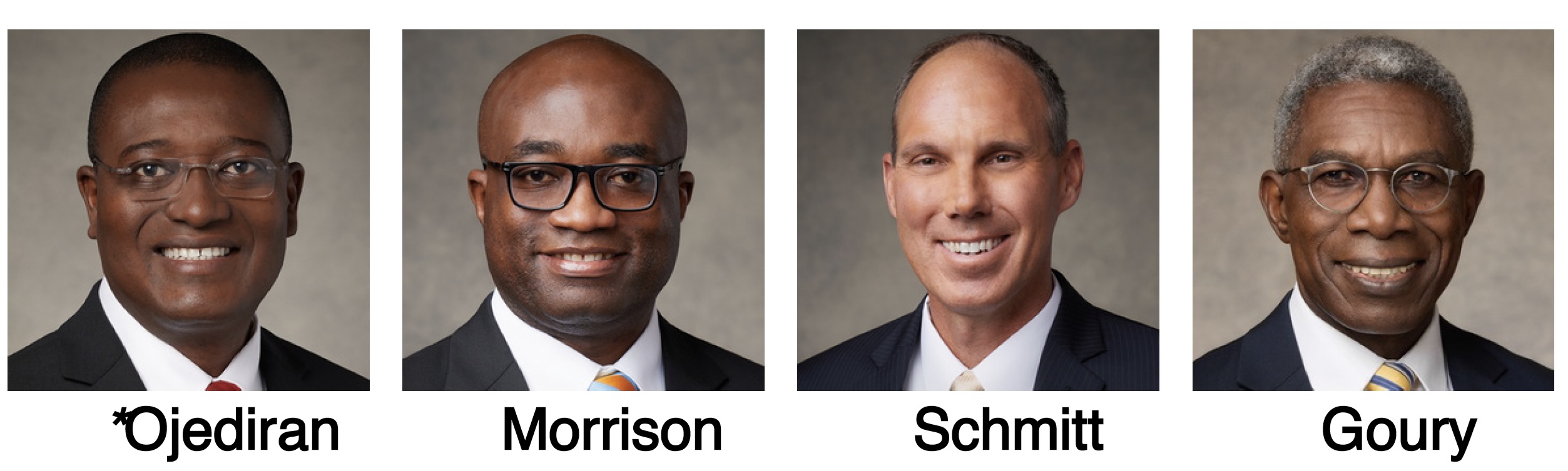 The Africa West Area Presidency for 2026–2027, from left to right: Elder Adeyinka A. Ojediran, President; Elder Isaac K. Morrison; Elder Jonathan S. Schmitt; and Elder D. Martin Goury.