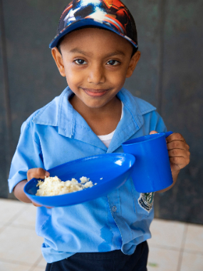 “Hungry children need food,” said Elder Gerrit W. Gong, an Apostle of The Church of Jesus Christ of Latter-day Saints, in January 2021. “With one humanitarian partner, we are delivering 30 million meals to school children in nine developing countries. Each meal plate includes 482 life-sustaining calories of grains, protein, vegetables and fruits.”