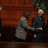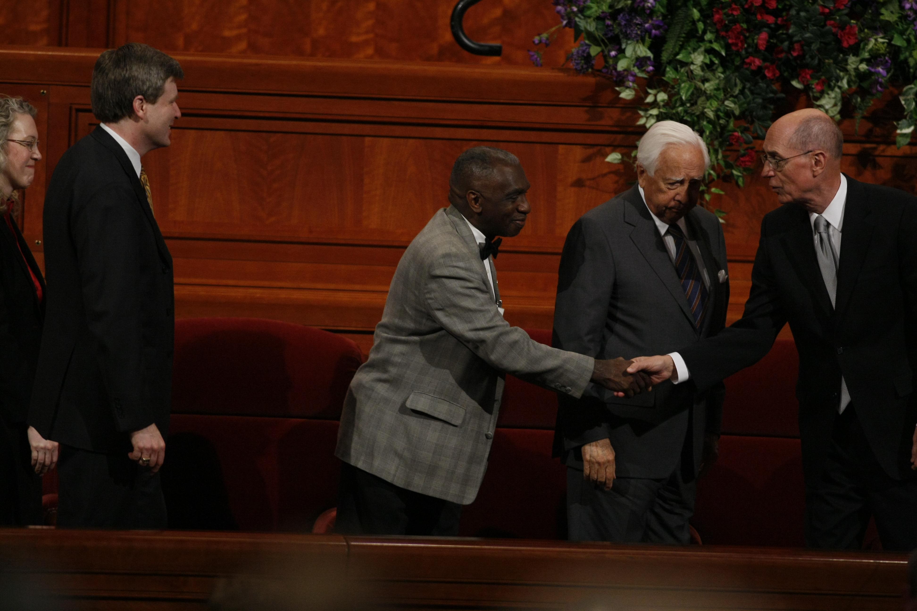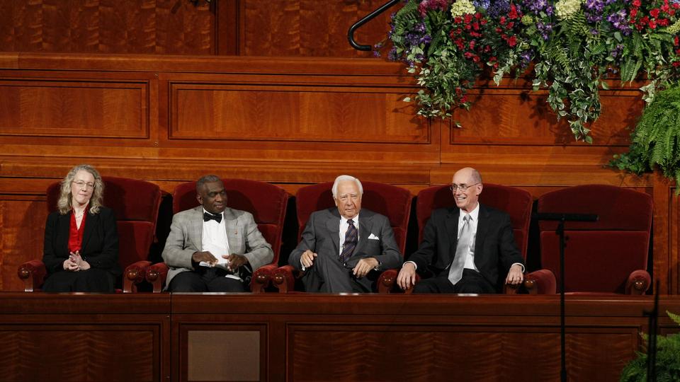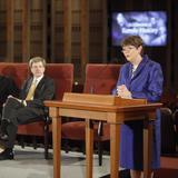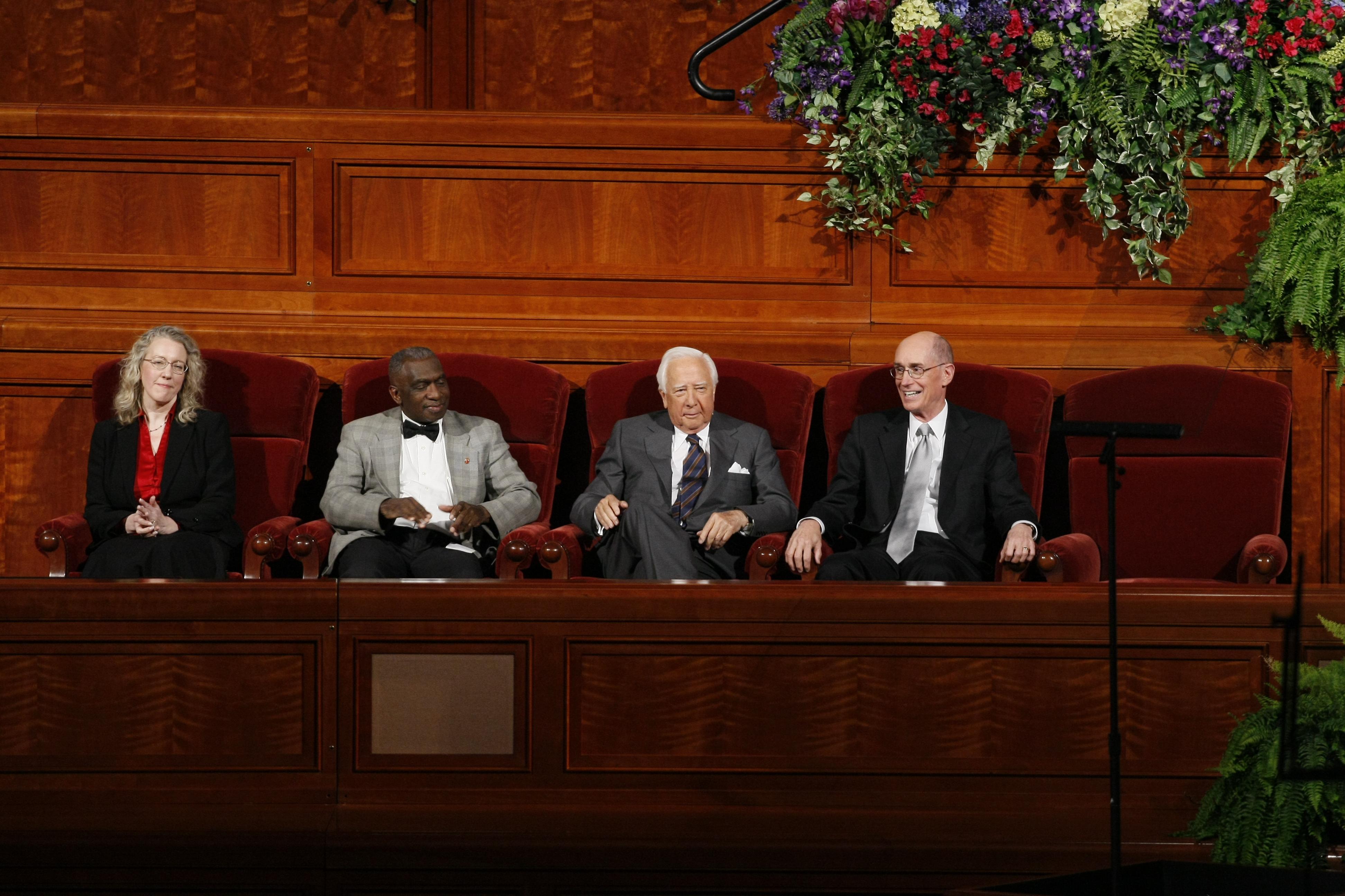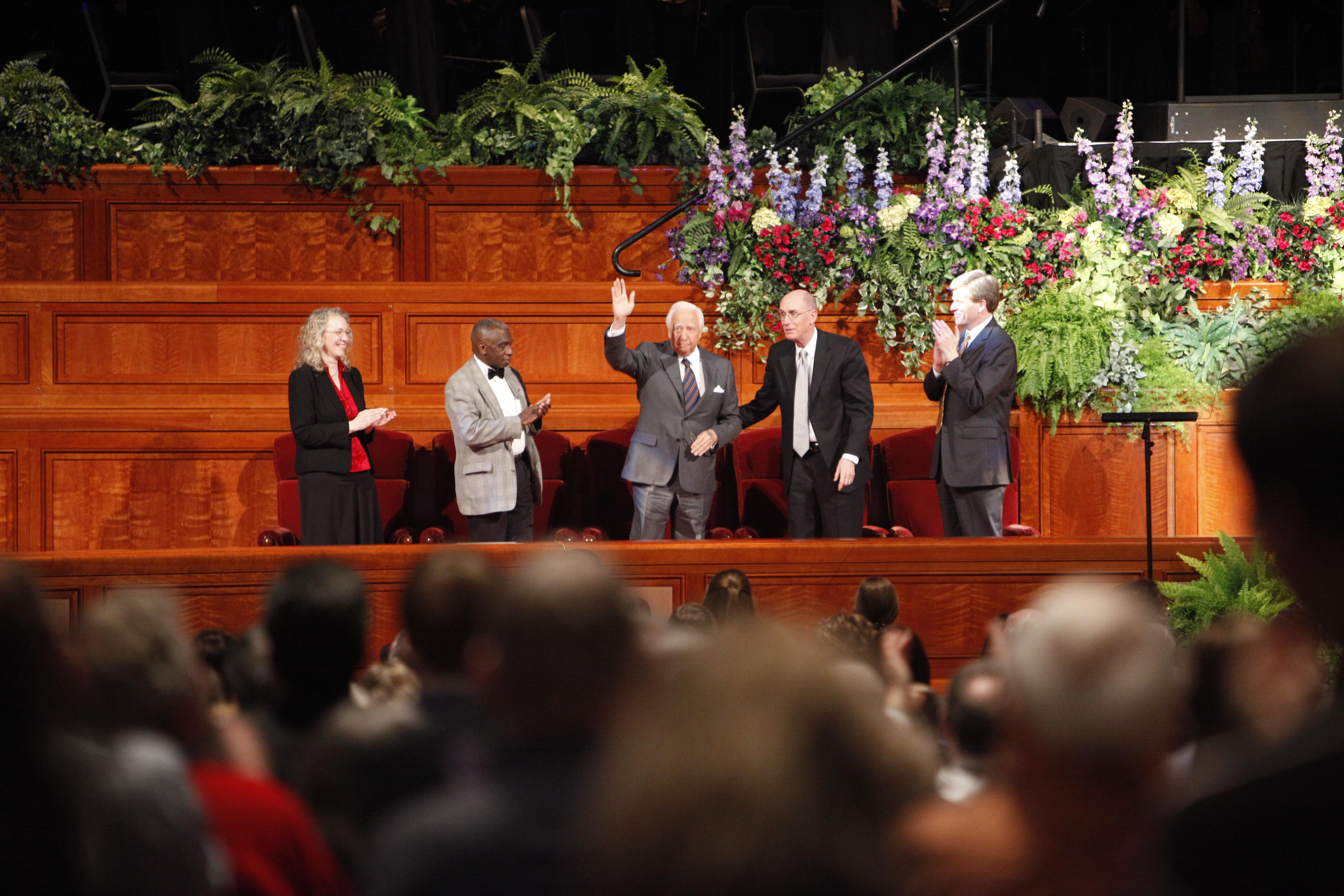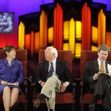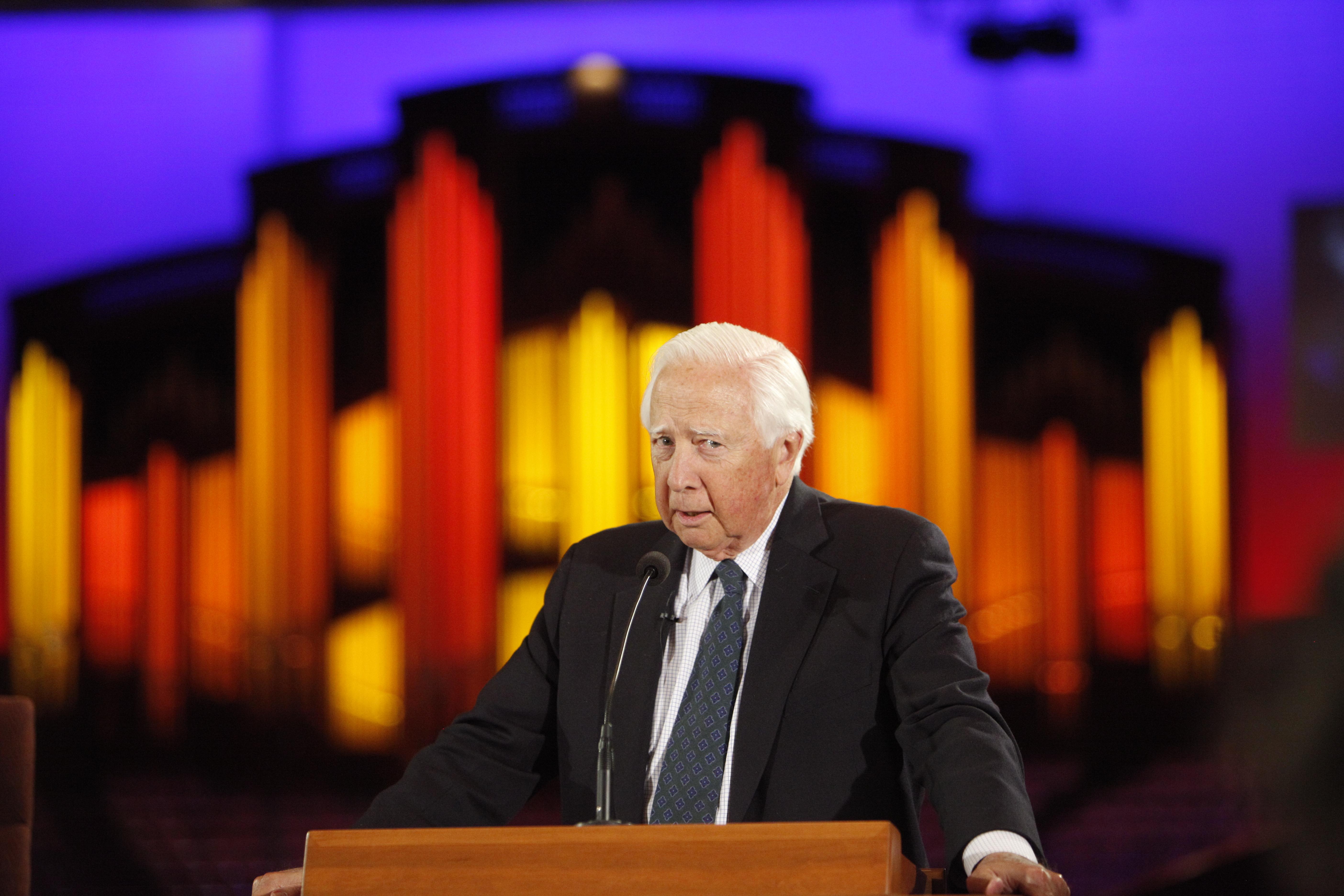 To the delight of the audience, two-time Pulitzer Prize-winning author and historian David McCullough returned to the Conference Center for the second time in six months to participate in the program. In December 2009, he worked with the Mormon Tabernacle Choir and Orchestra at Temple Square for their annual Christmas concert.