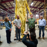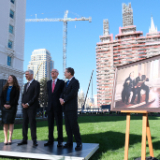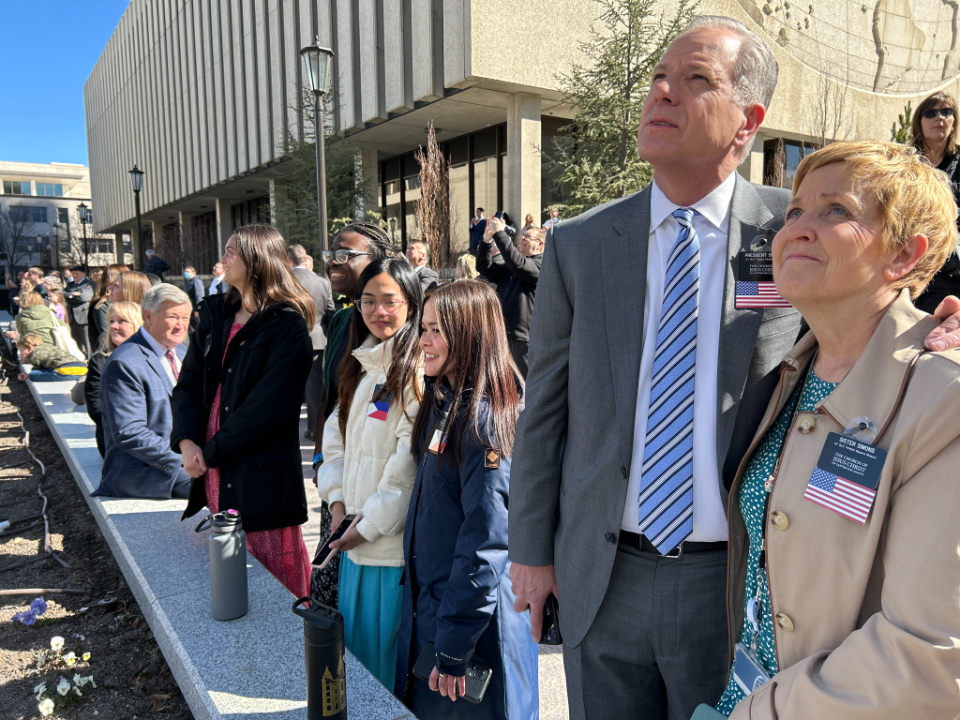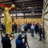 Also present to witness the return of the statue were two people with family connections to the Salt Lake Temple — Elder Larry Y. Wilson and Mark Woodruff — descendants of Presidents Young and Woodruff, respectively.