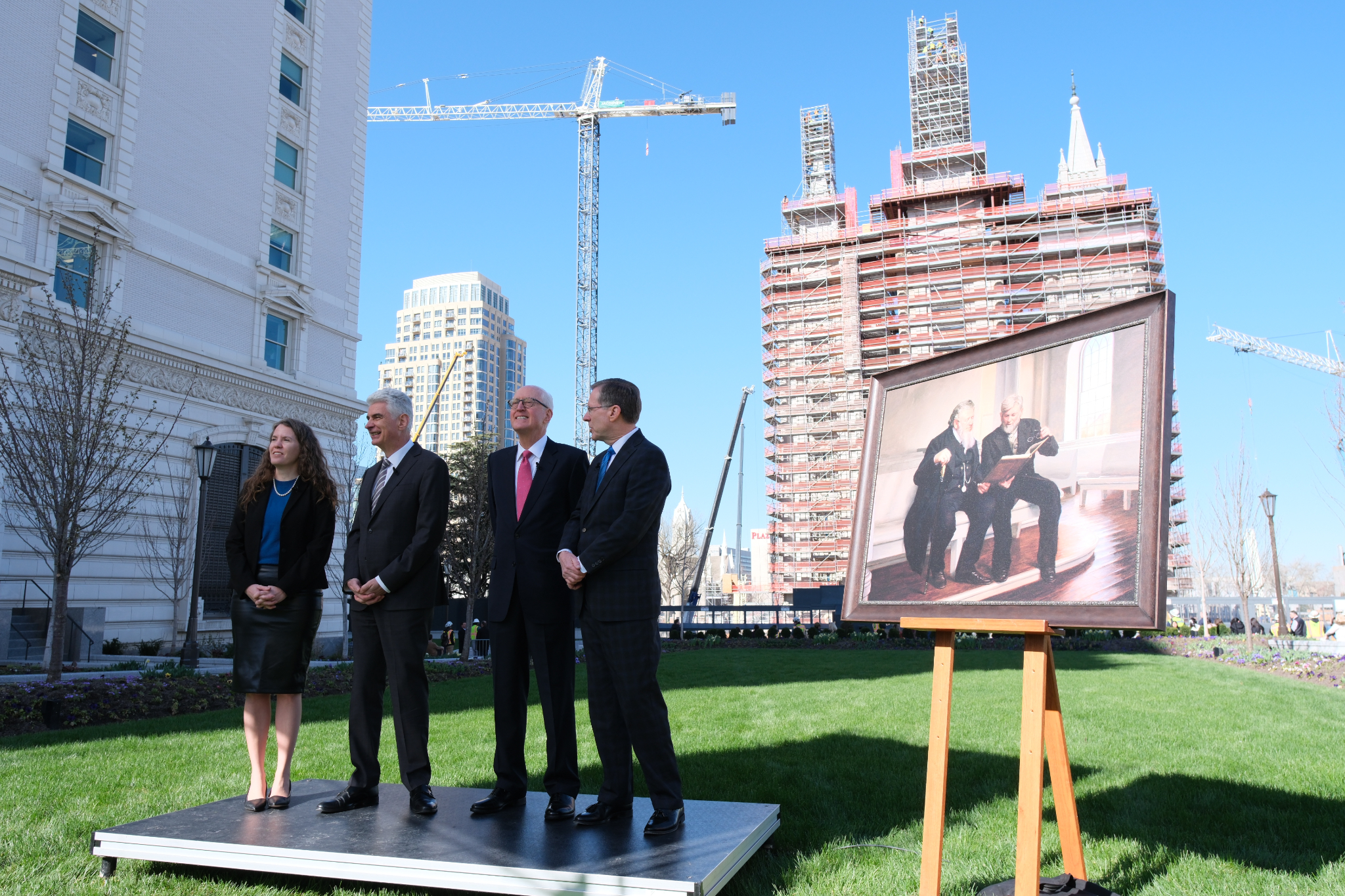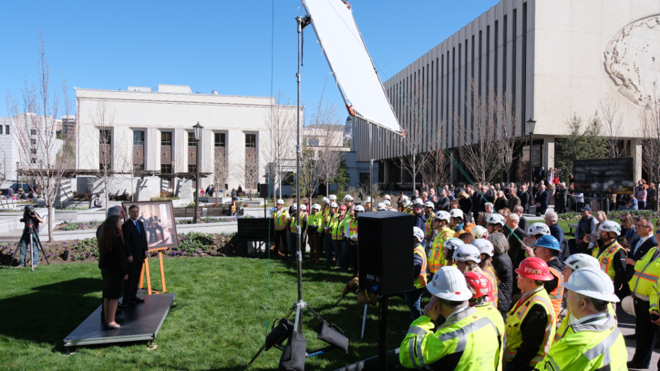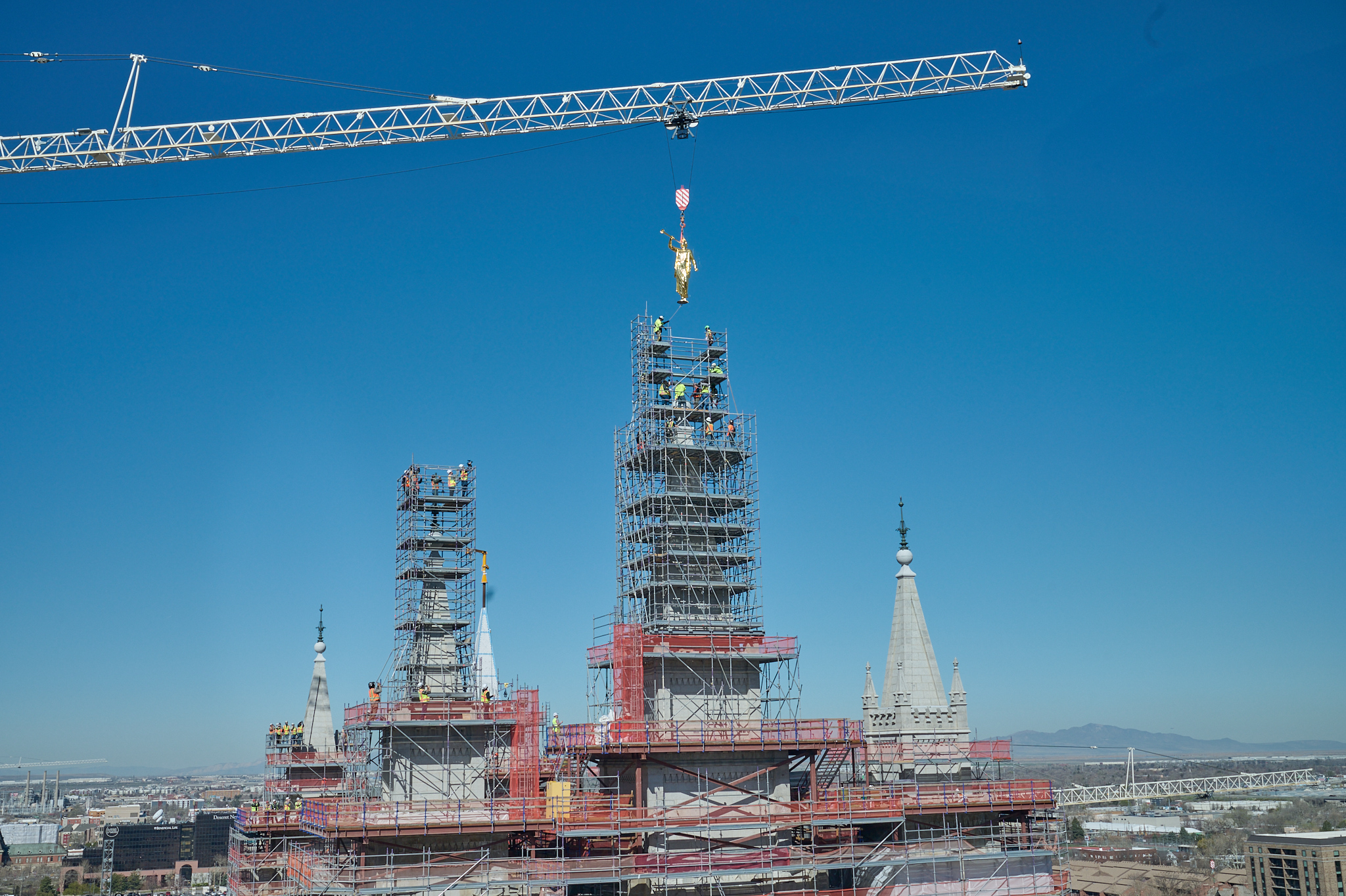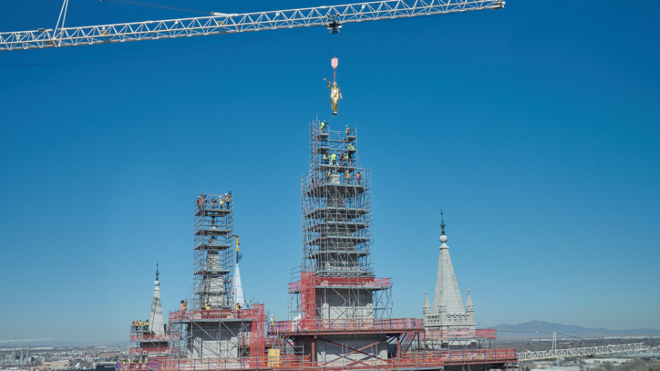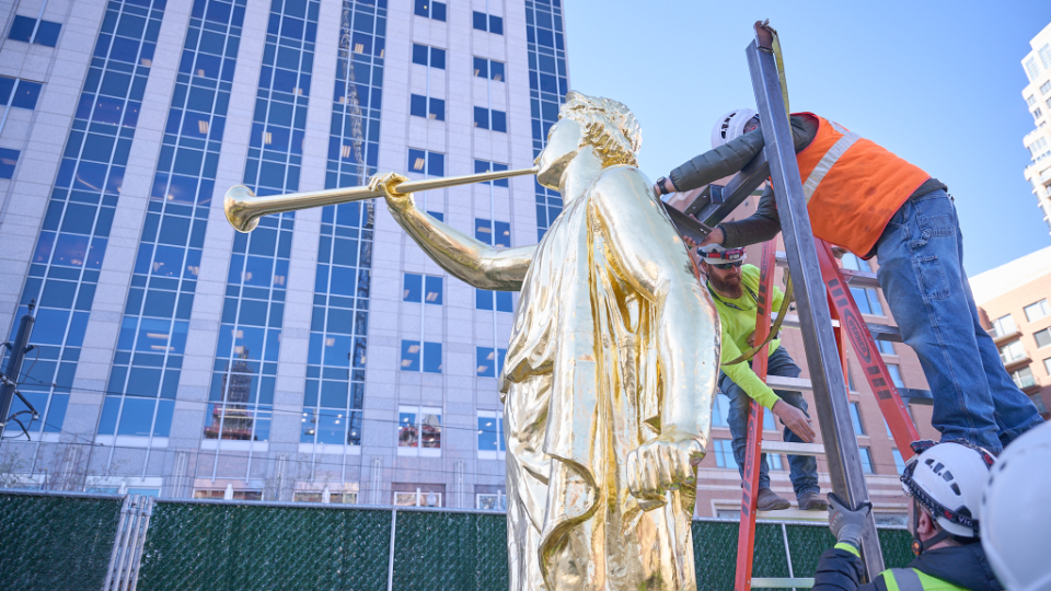 The placement of the statue after a four-year absence (it was removed in May 2020) is a notable milestone toward the completion of the Salt Lake Temple renovation project. “An important part of this project has been to strengthen the foundation of the temple,” said Presiding Bishop Gérald Caussé. “President Russell M. Nelson spoke to the world about the need to fortify our spiritual foundations in 2021 when he reminded us of the sacred use of the house of the Lord and said, ‘The temple lies at the center of strengthening our faith and spiritual fortitude because the Savior and His doctrine are the very heart of the temple. Everything taught in the temple, through instruction and through the Spirit, increases our understanding of Jesus Christ.’”