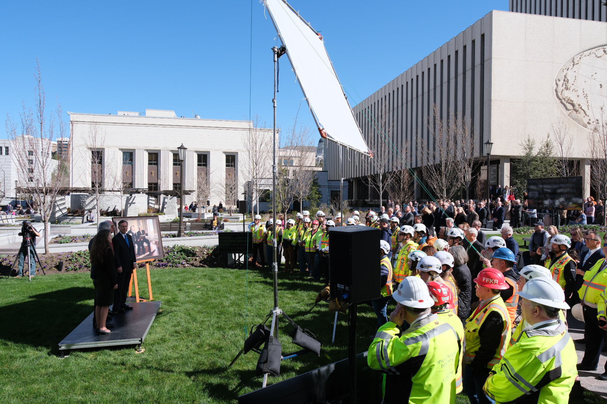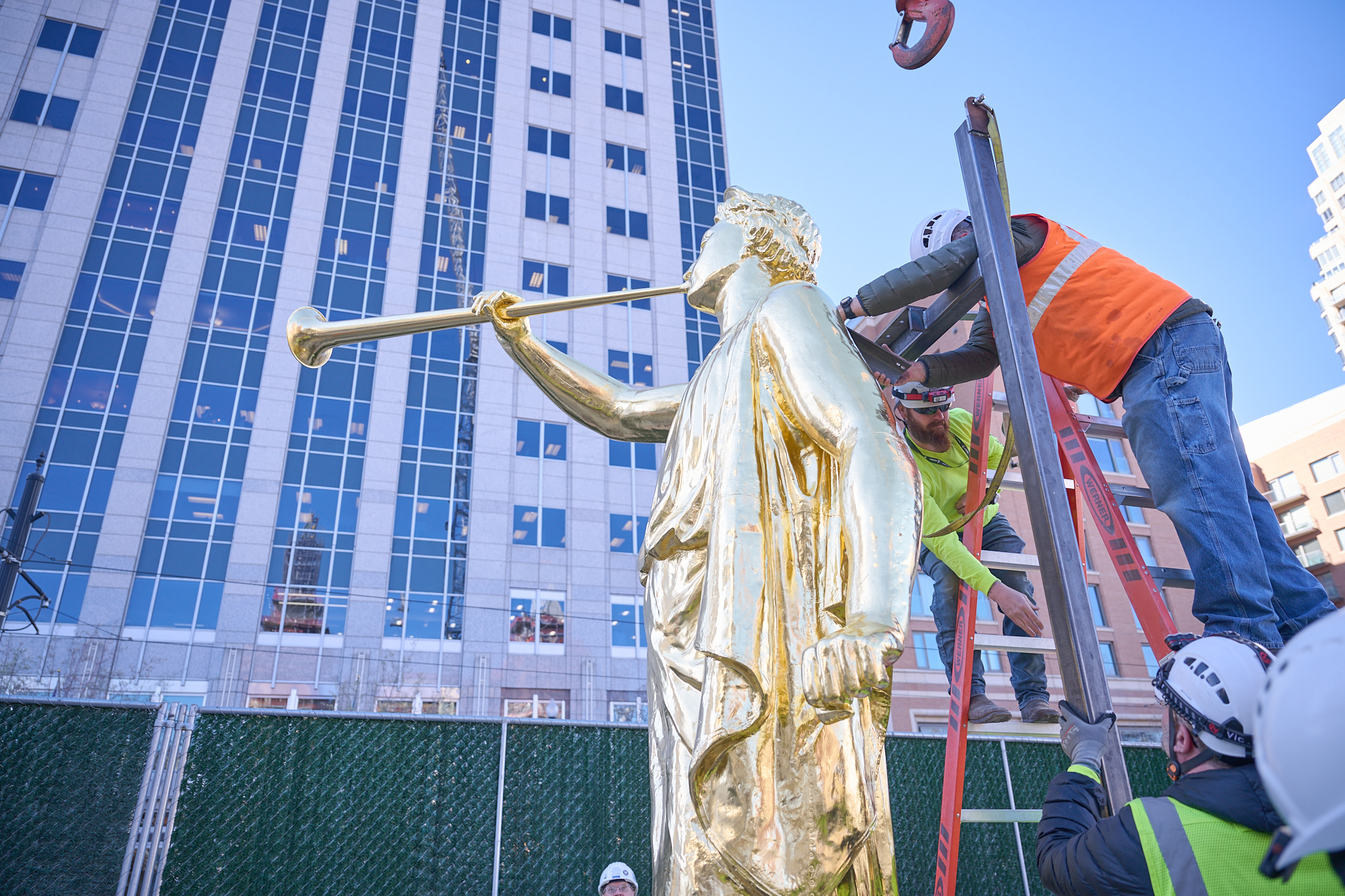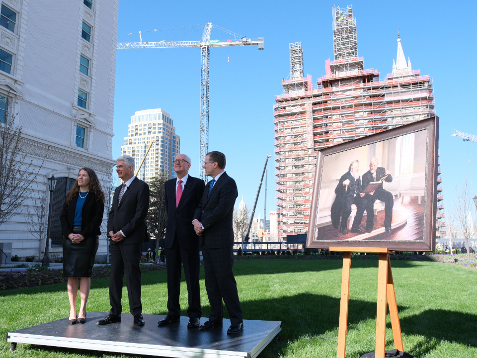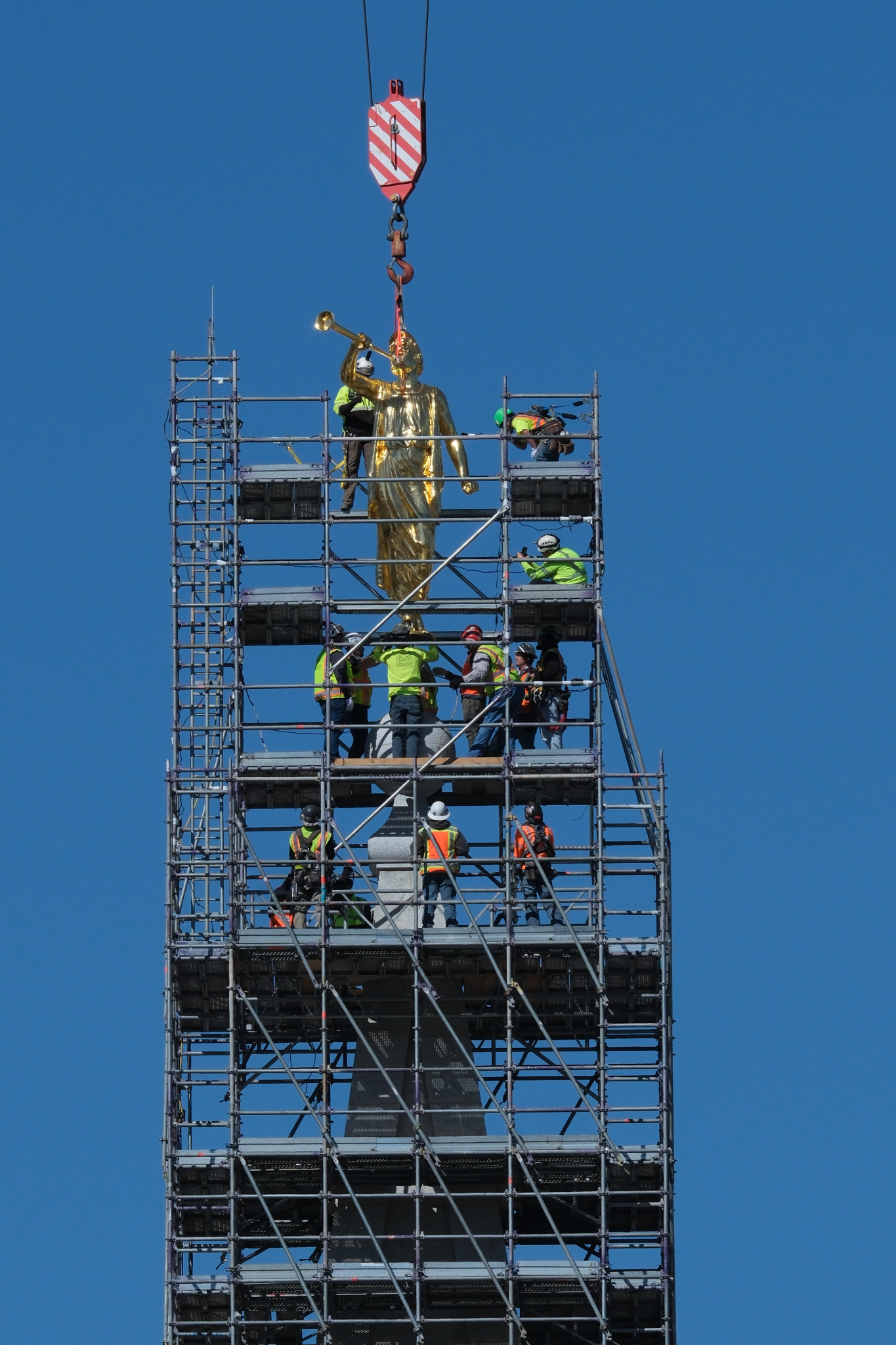 The placement of the statue after a four-year absence (it was removed in May 2020) is a notable milestone toward the completion of the Salt Lake Temple renovation project. “An important part of this project has been to strengthen the foundation of the temple,” said Presiding Bishop Gérald Caussé. “President Russell M. Nelson spoke to the world about the need to fortify our spiritual foundations in 2021 when he reminded us of the sacred use of the house of the Lord and said, ‘The temple lies at the center of strengthening our faith and spiritual fortitude because the Savior and His doctrine are the very heart of the temple. Everything taught in the temple, through instruction and through the Spirit, increases our understanding of Jesus Christ.’”