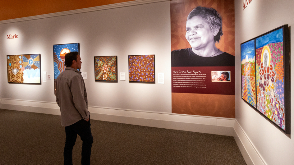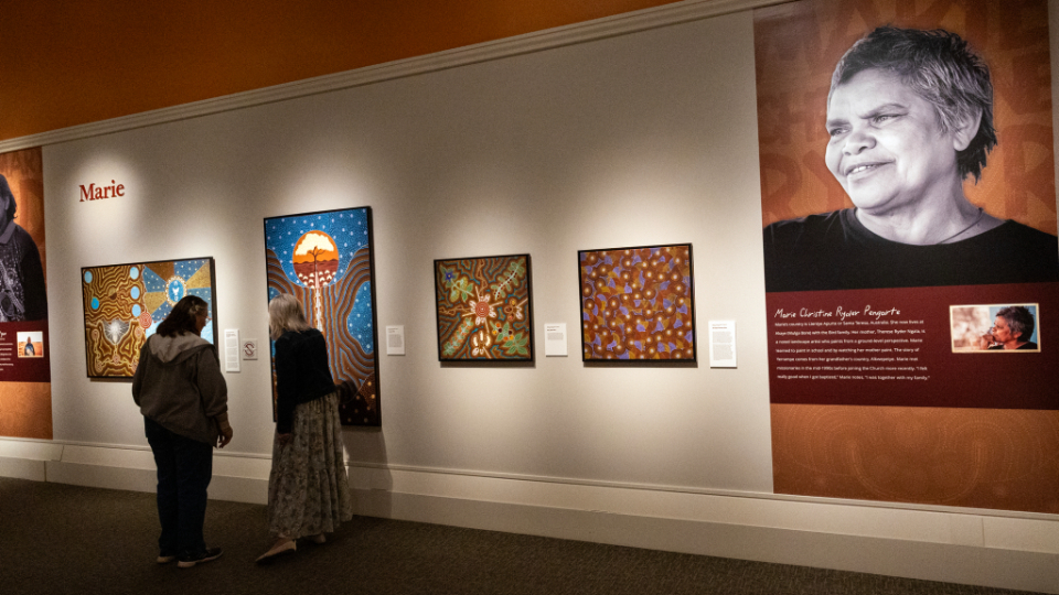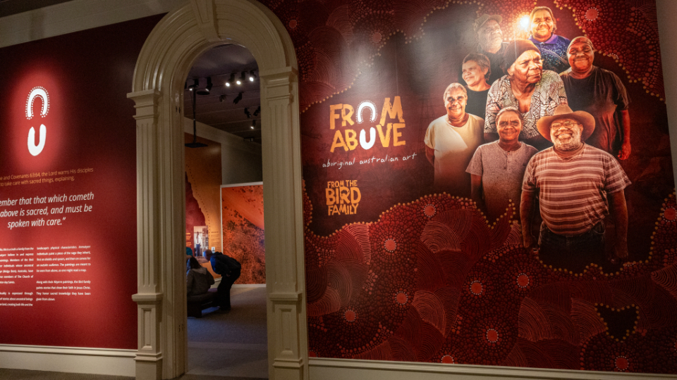The Church History Museum of The Church of Jesus Christ of Latter-day Saints opened a new art exhibit, “From Above: Aboriginal Australian Art from the Bird Family,” on March 12, 2026.