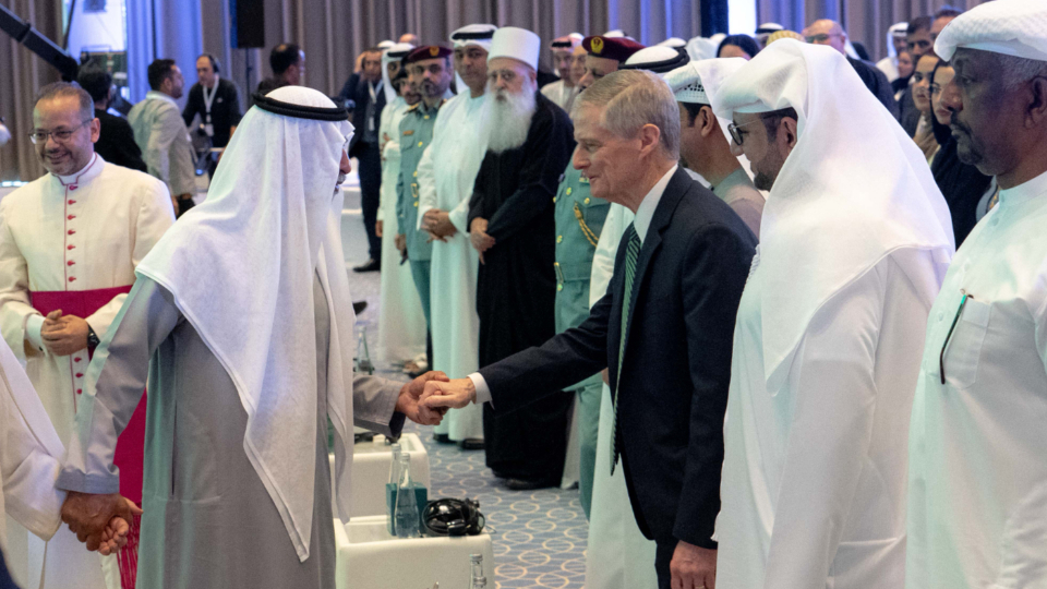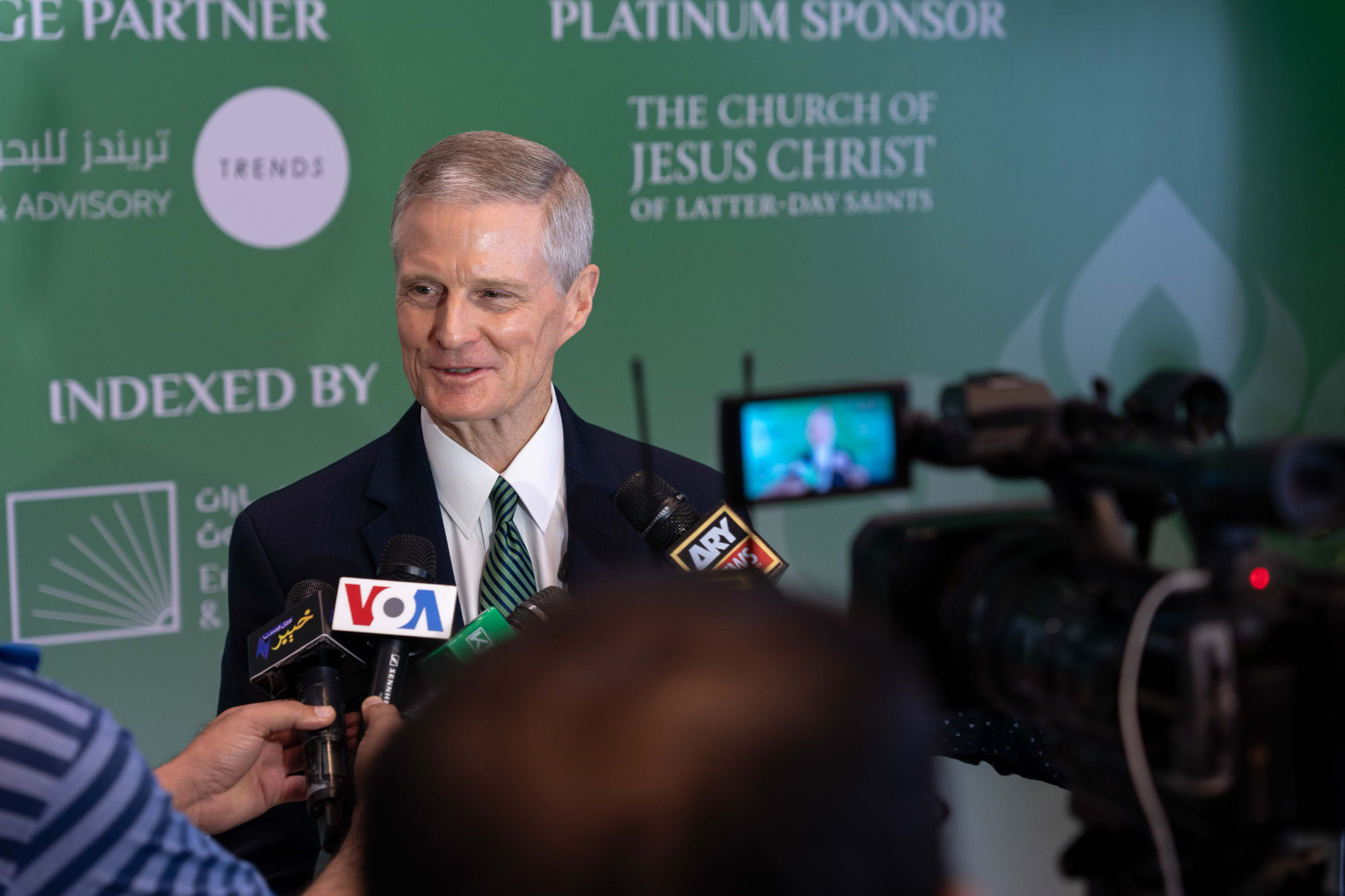 “That was humbling,” Elder Bednar said of the Sheikh’s gesture. “I very much appreciated his expression of our friendship in such a public way. I have known Sheikh Nahyan for a number of years. He is very genuine. He is the Minister of Tolerance and Coexistence in the United Arab Emirates. This [conference] reflects an honest desire to bring peace to various parts of the world. I commend them for that effort.”