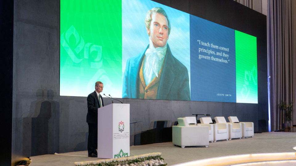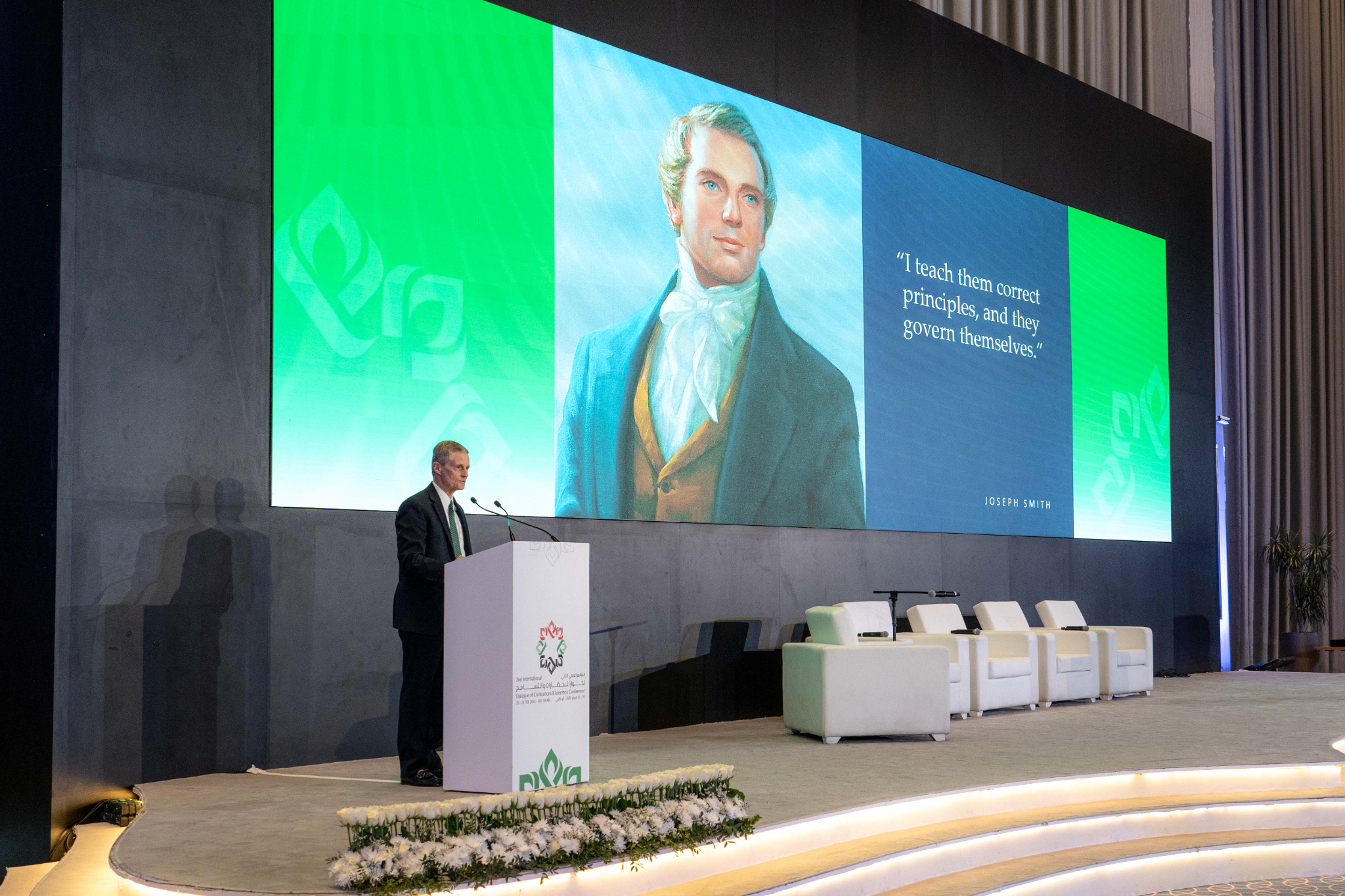 At an event in Abu Dhabi focused on empowering youth for a more tolerant future, Elder David A. Bednar taught how The Church of Jesus Christ of Latter-day Saints strengthens youth through the principles of learning, acting, serving, and becoming.