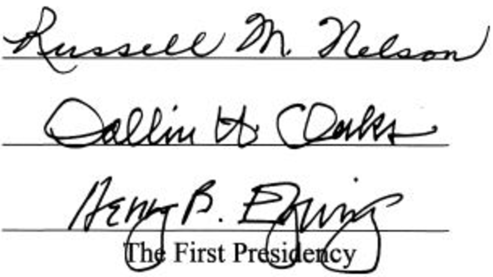 See the full letter from the First Presidency, as well as an accompanying FAQ, below. A PDF version of the letter and FAQ is also available.