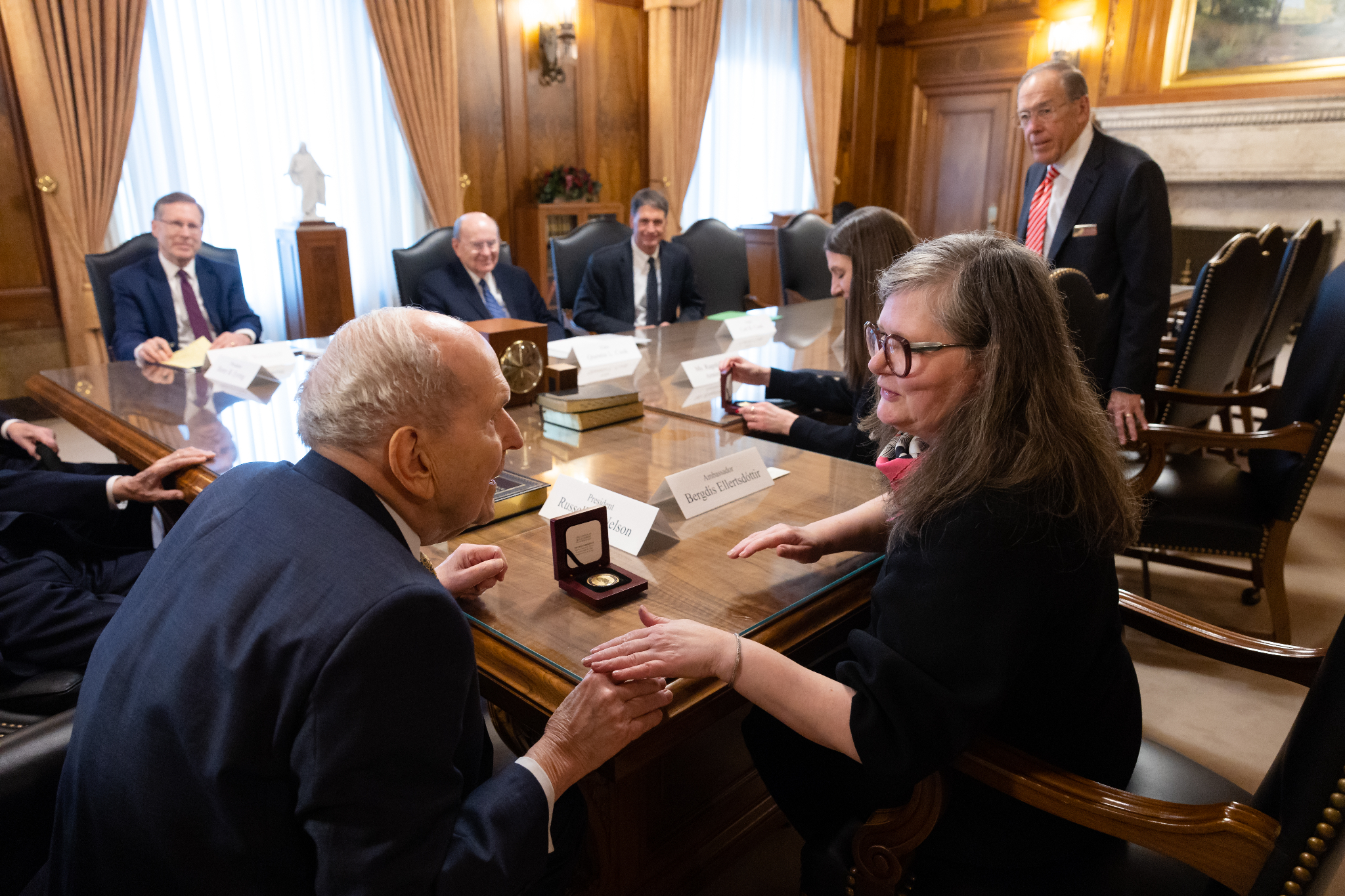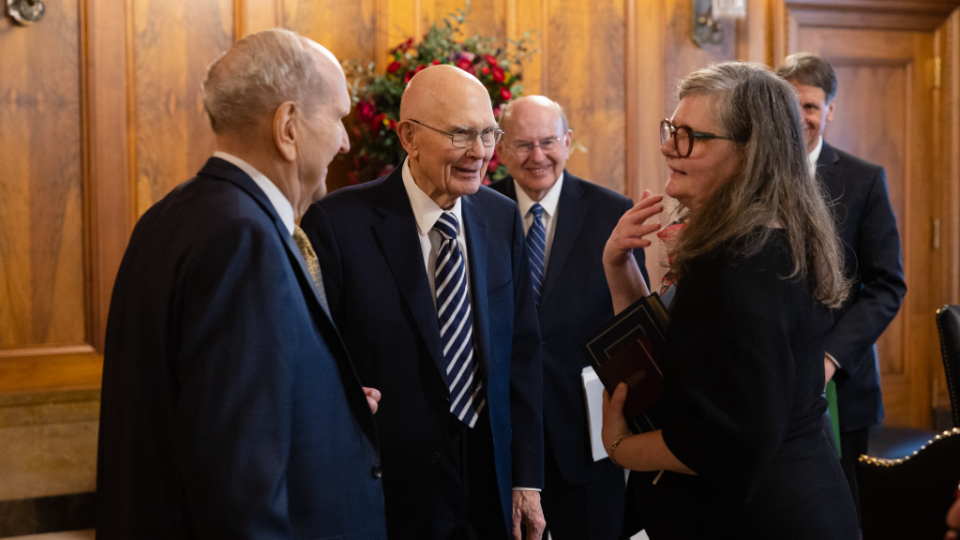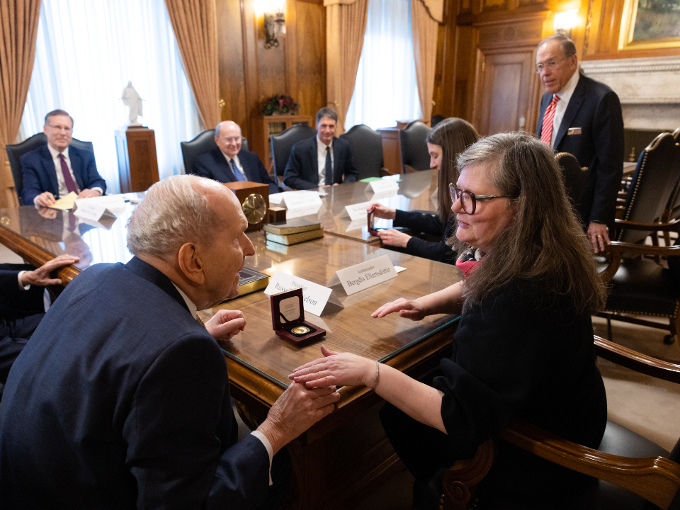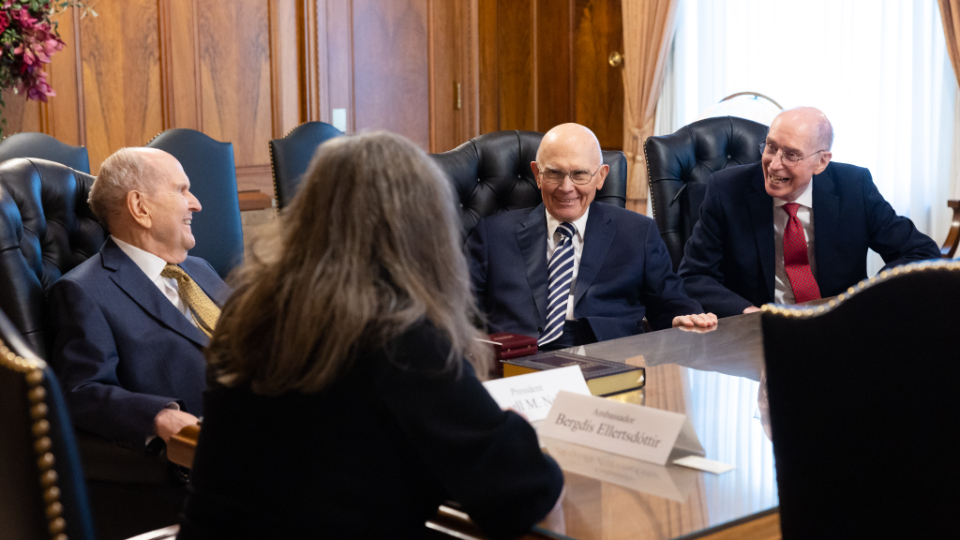 On the afternoon of Thursday, January 18, 2024, Ellertsdóttir met with the First Presidency of the Church — President Russell M. Nelson, President Dallin H. Oaks and President Henry B. Eyring. Elder Quentin L. Cook of the Quorum of the Twelve Apostles and Elder Carl B. Cook of the Presidency of the Seventy also were in attendance.