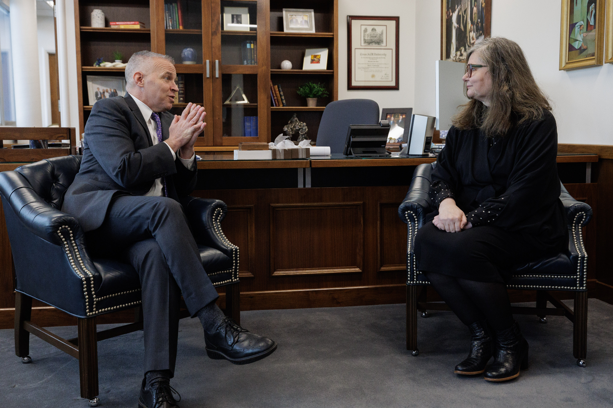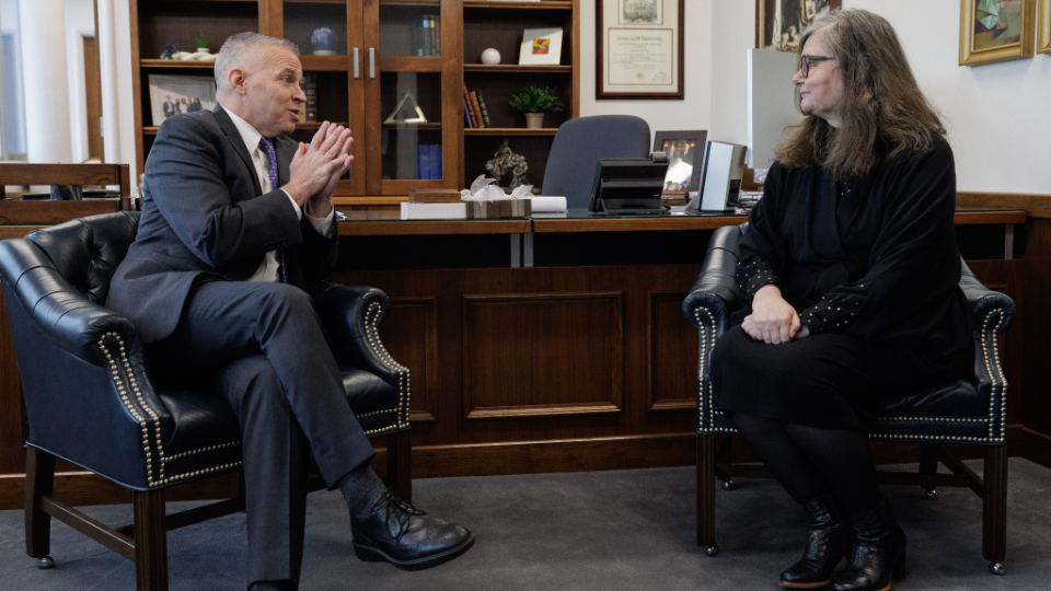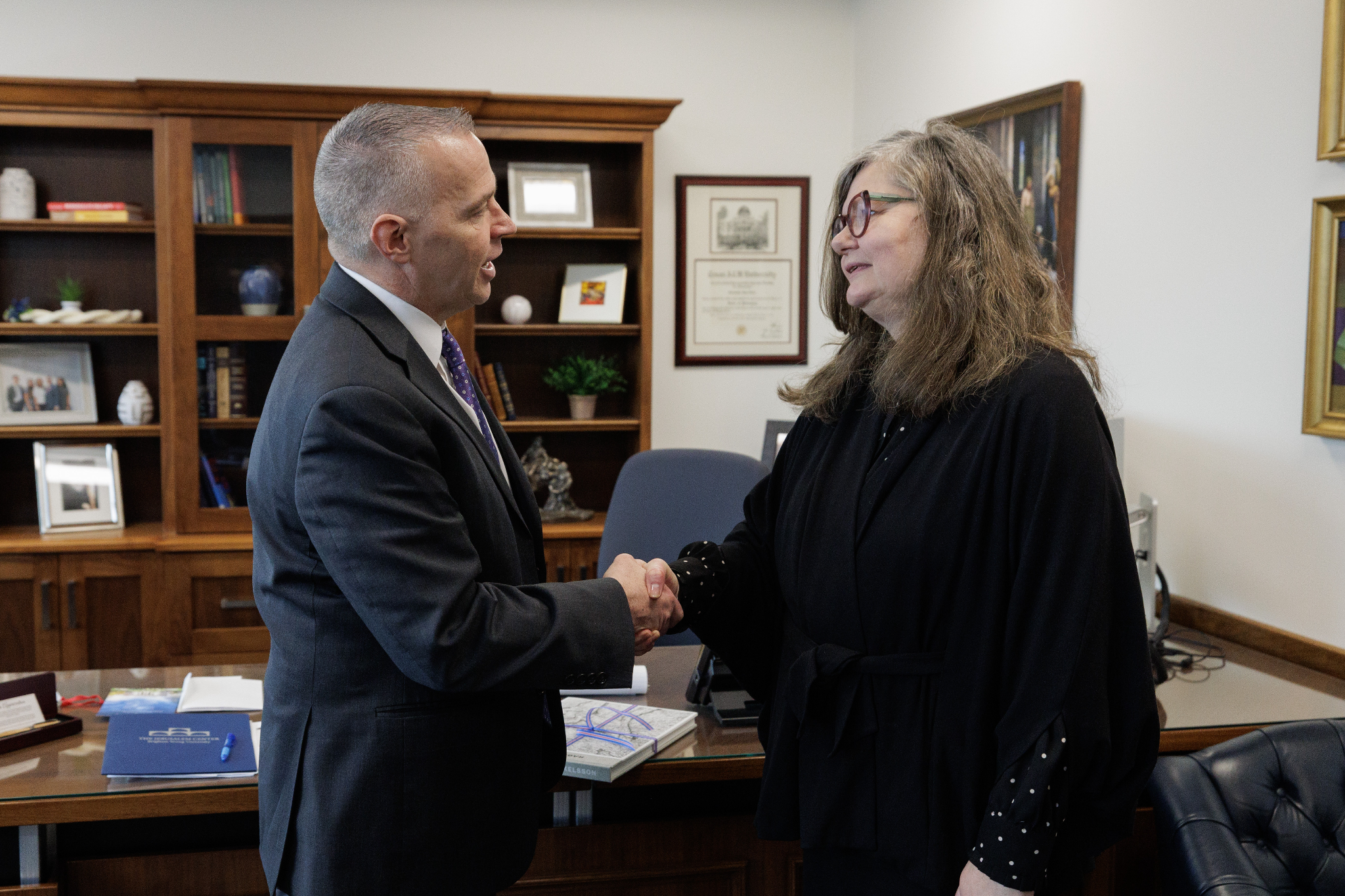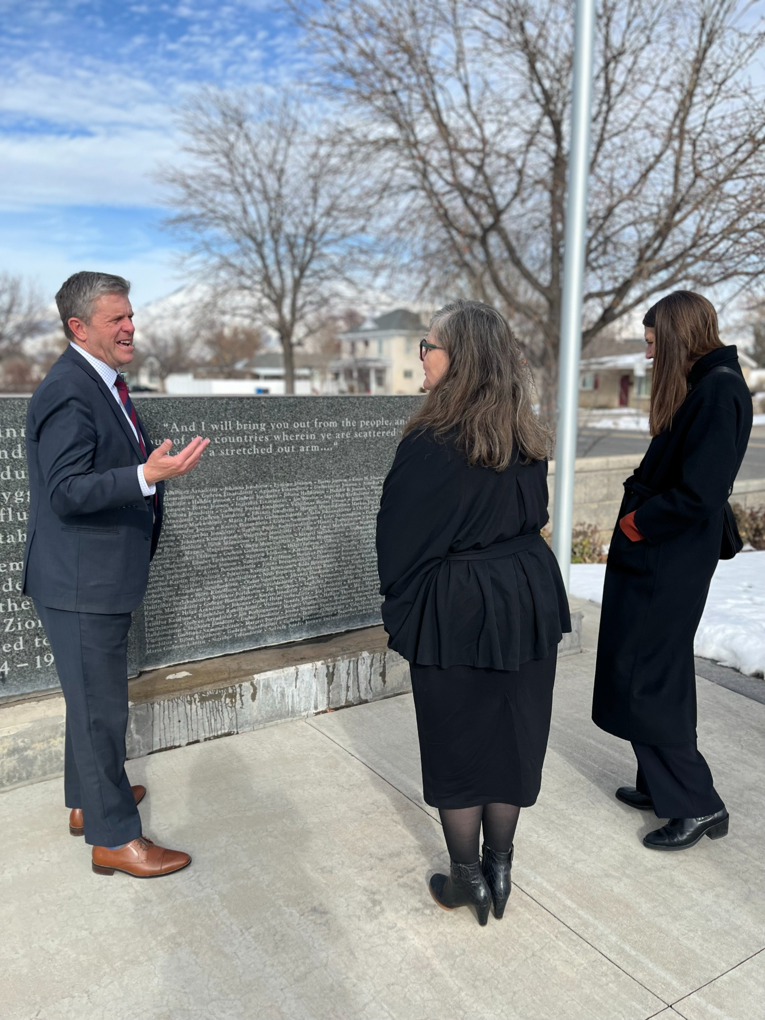BYU President C. Shane Reese (left) meets with Bergdís Ellertsdóttir, Iceland's ambassador to the United States (right), in Provo, Utah, on Friday, January 19, 2024.2024 by Intellectual Reserve, Inc. All rights reserved.After giving a lecture at BYU, Ellertsdóttir traveled to Spanish Fork to see a memorial erected in honor of the Icelandic Latter-day Saint pioneers who settled there between 1854 and 1914.