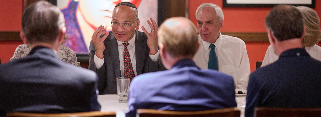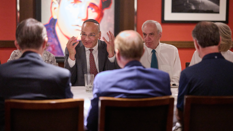 Also at the dinner was Elder Matthew S. Holland, a General Authority Seventy and former Raoul Wallenberg Scholar at the Hebrew University of Jerusalem. He shared two Old Testament scriptures (Deuteronomy 6:4–5 and Leviticus 19:17–18) that teach foundational principles of loving God and loving one’s neighbor.