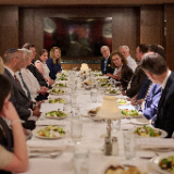 During dinner on Tuesday, the AJC delegation shared impressions from their visit and gifted Church leaders and hosting volunteers with challah bread as a symbol of shared values and hospitality. Rabbi Noam Marans, AJC’s Director of Interreligious Affairs, compared the Church’s hosting efforts to the welcoming spirit that Abraham and Sarah display in Genesis 18 of the Old Testament.