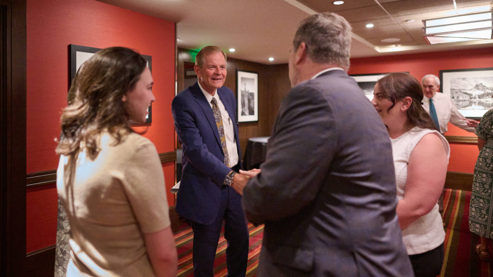 Elder Gary E. Stevenson (middle) of the Quorum of the Twelve Apostles addressees members of the American Jewish Committee during dinner in Salt Lake City on Tuesday, August 12, 2025.2025 by Intellectual Reserve, Inc. All rights reserved.“They became such dear friends, Many of them were mentors for me in my business career," Elder Stevenson said. "We attended their children’s bar mitzvah and bat mitzvahs celebrations and weddings. Tonight, I find myself overwhelmed with warm memories and emotion triggered by this interaction. This brings a rush of love and appreciation for each of you, who you are, and what you represent.”