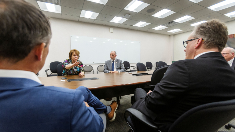 Four leaders from the American Red Cross (ARC) visited Welfare Square and the Bishops’ Central Storehouse in Salt Lake City on Tuesday, August 19, 2025. They came to learn more about the humanitarian service of The Church of Jesus Christ of Latter-day Saints and to strengthen ties with Church leaders.