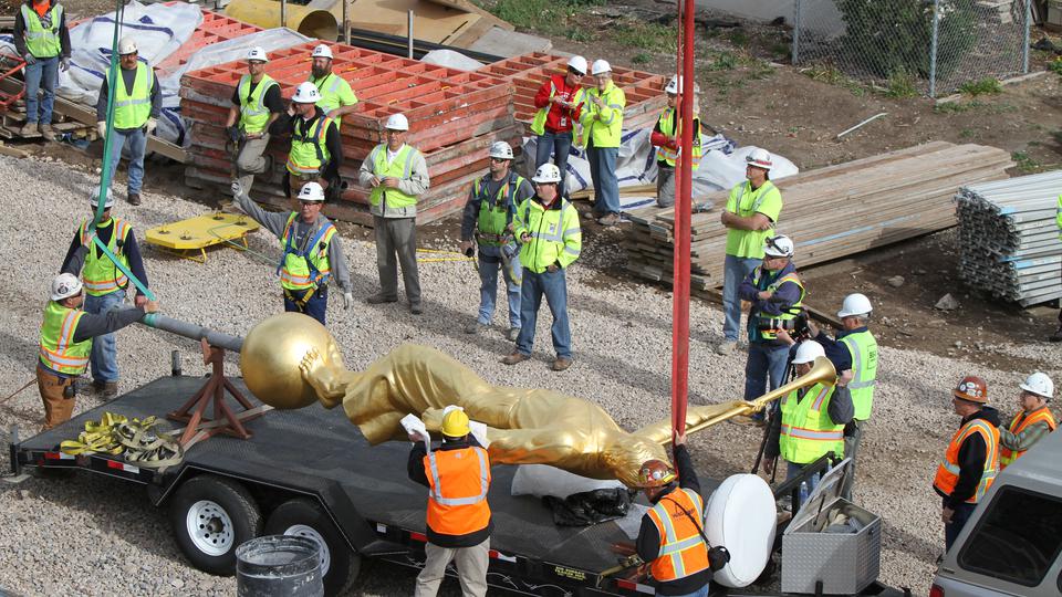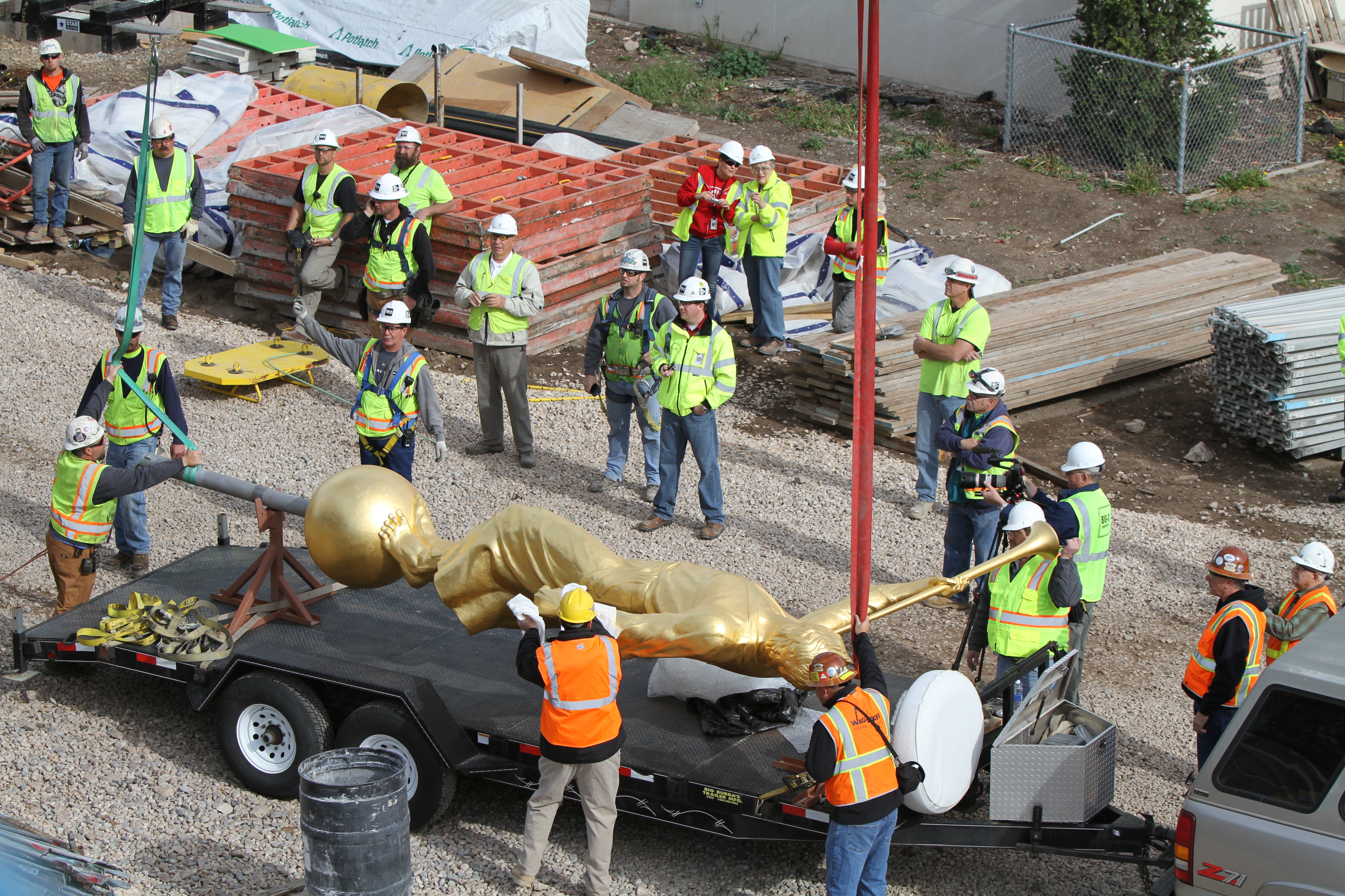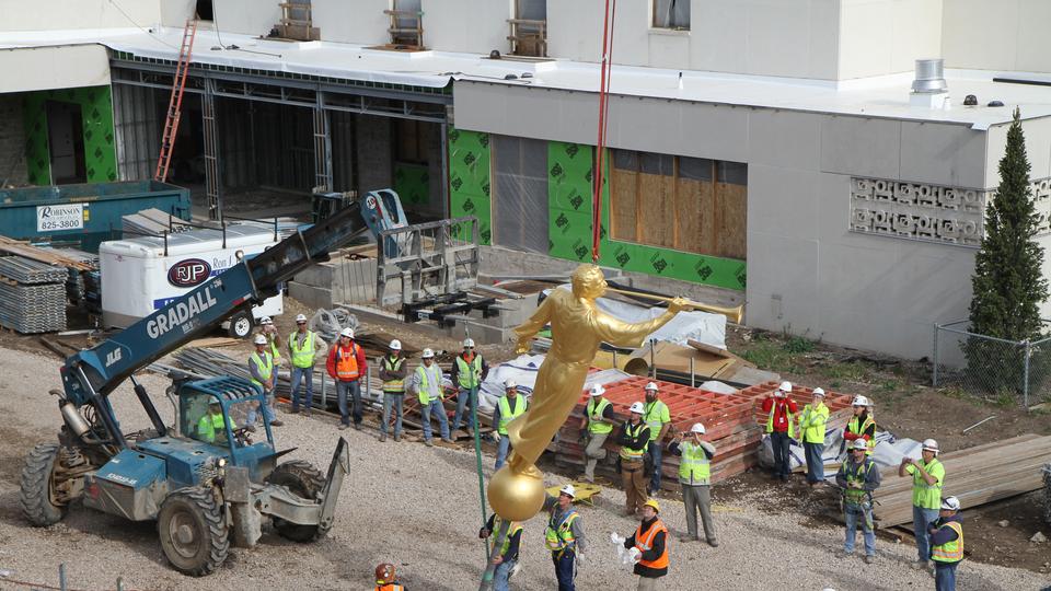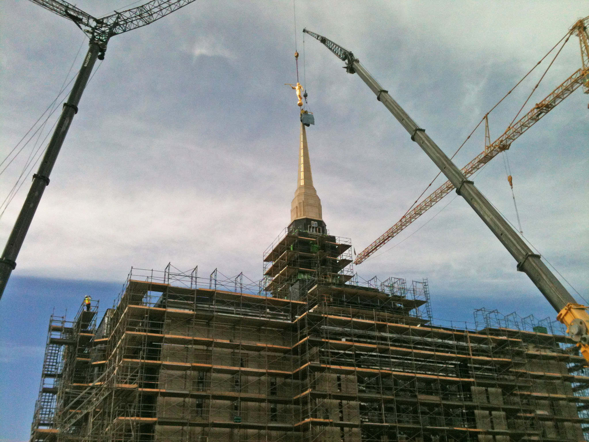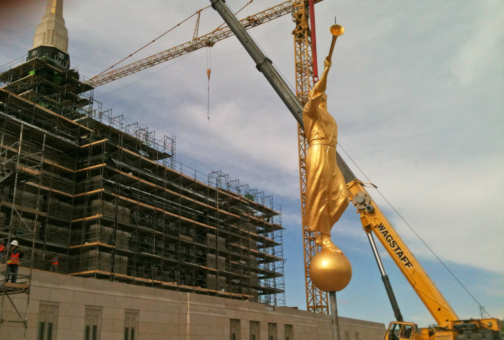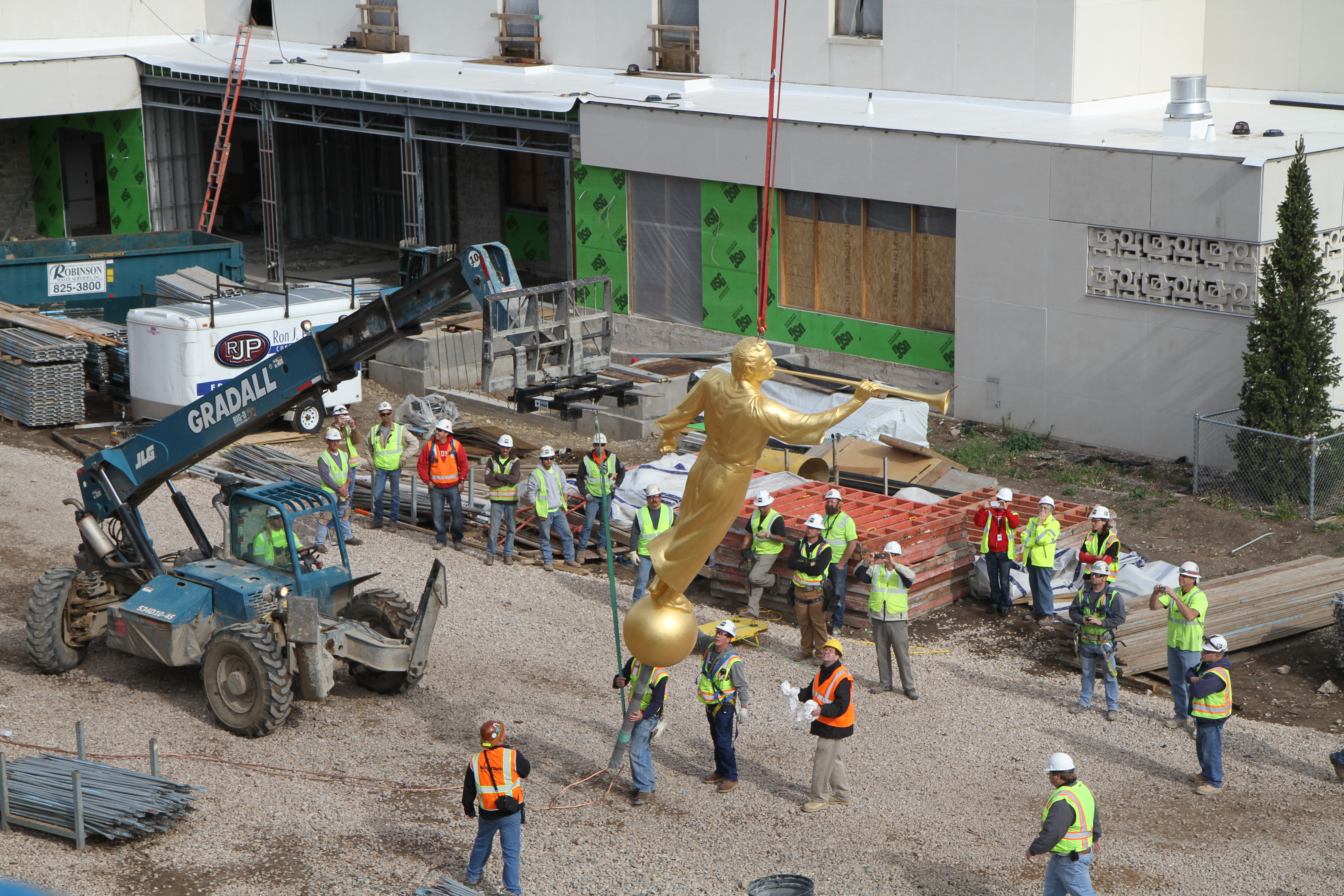 More photos and video of the statue placement will be added to this page as they become available. For construction updates throughout the project, please see the Ogden Temple site.