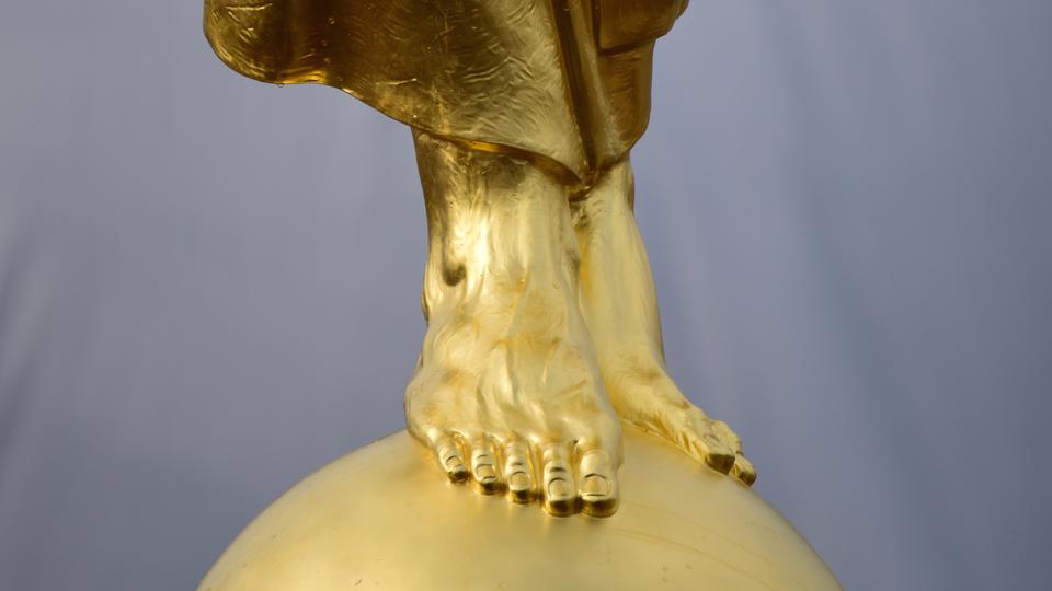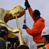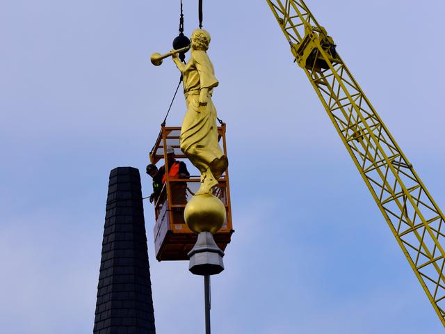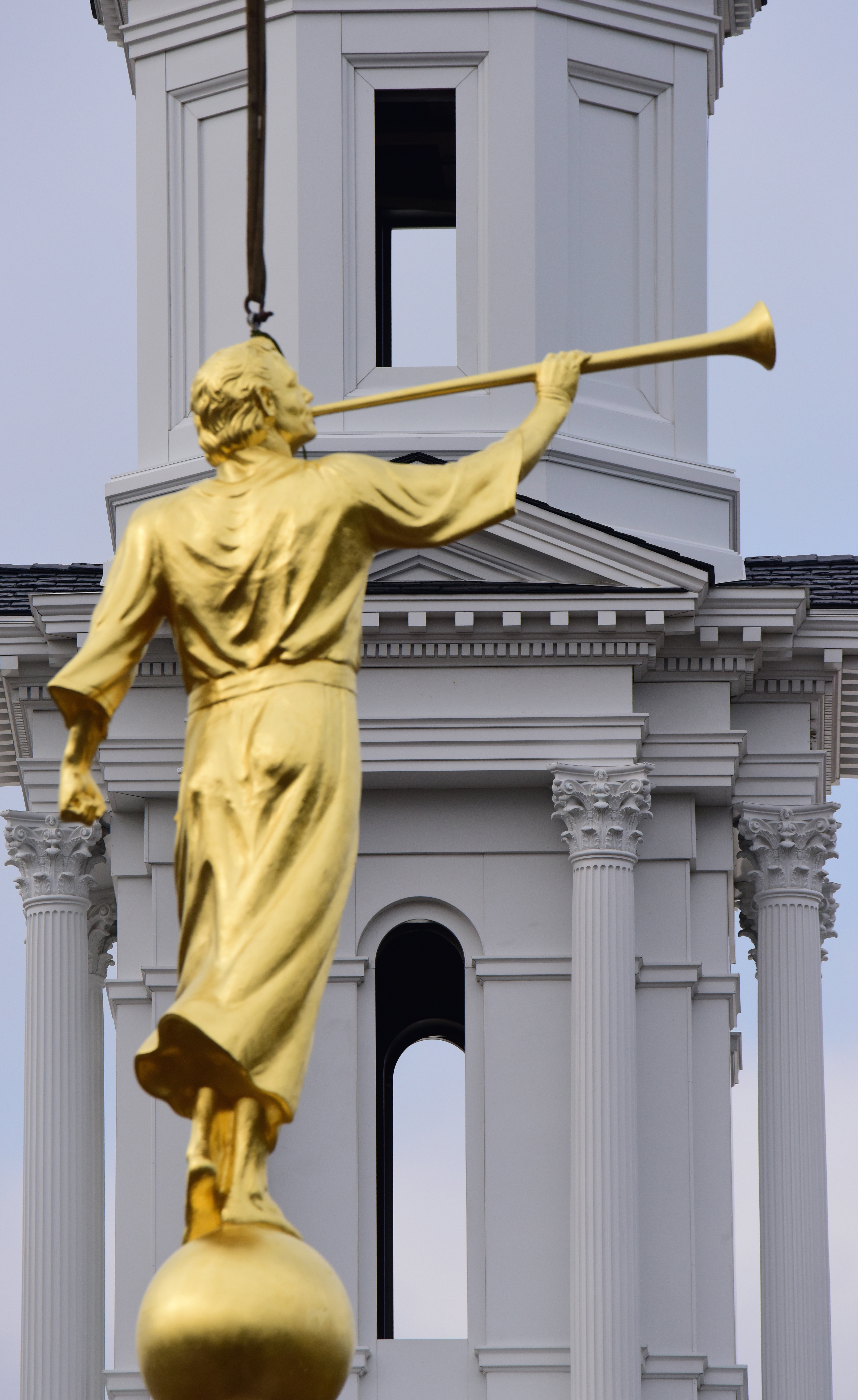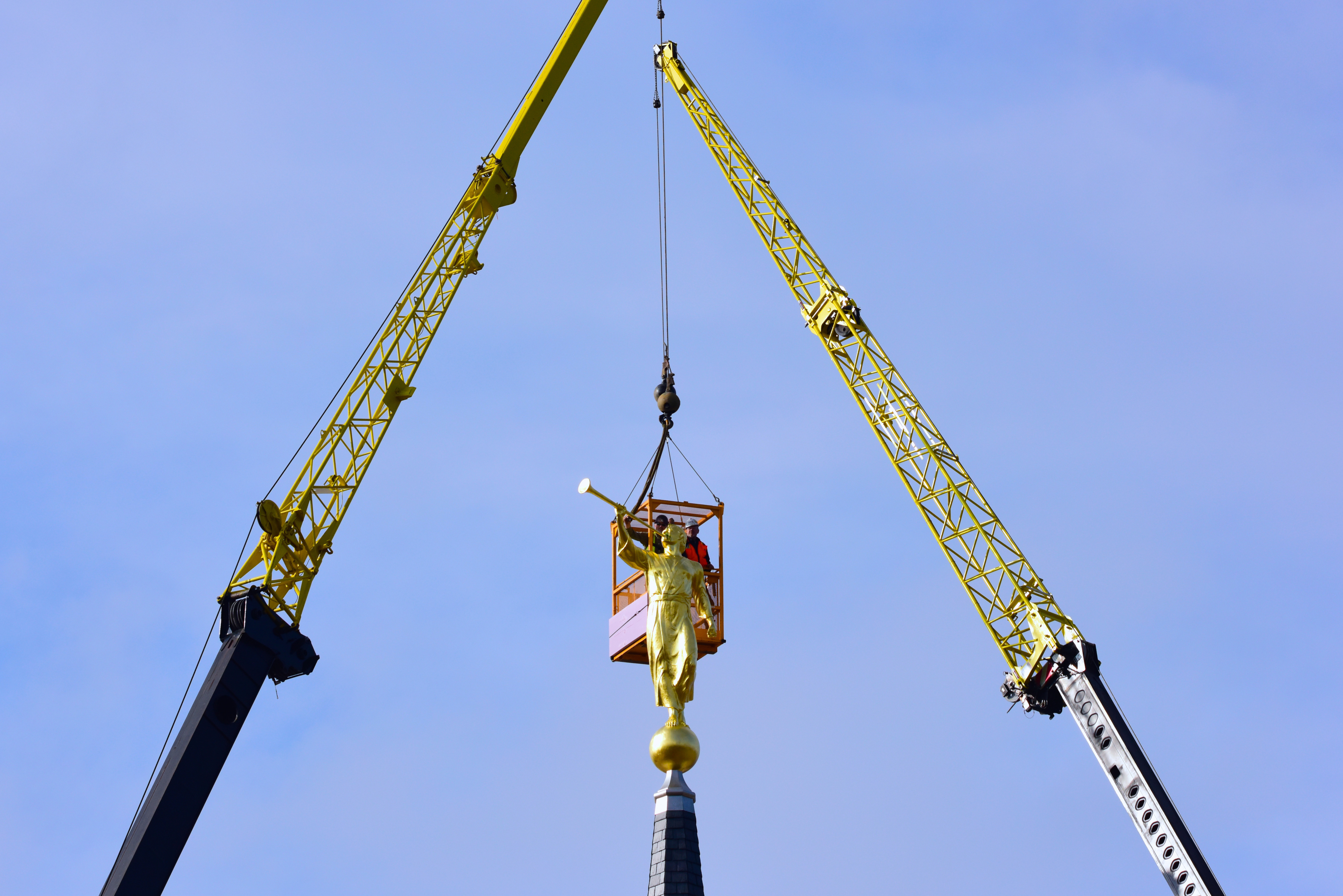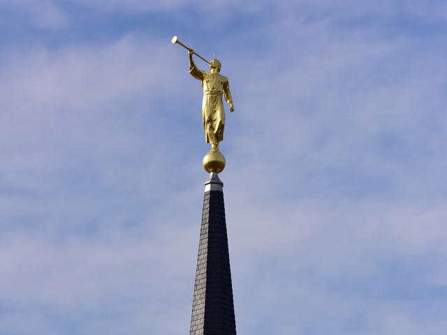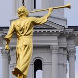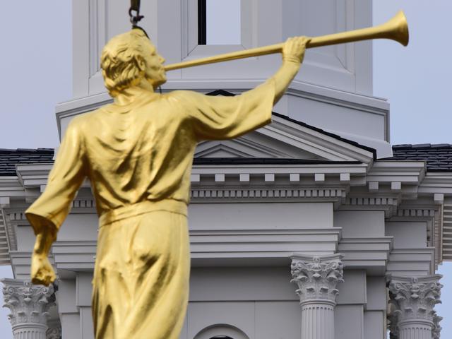 See a video of the angel Moroni statue placed on the spire of the temple.