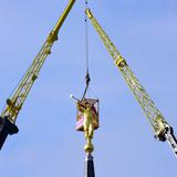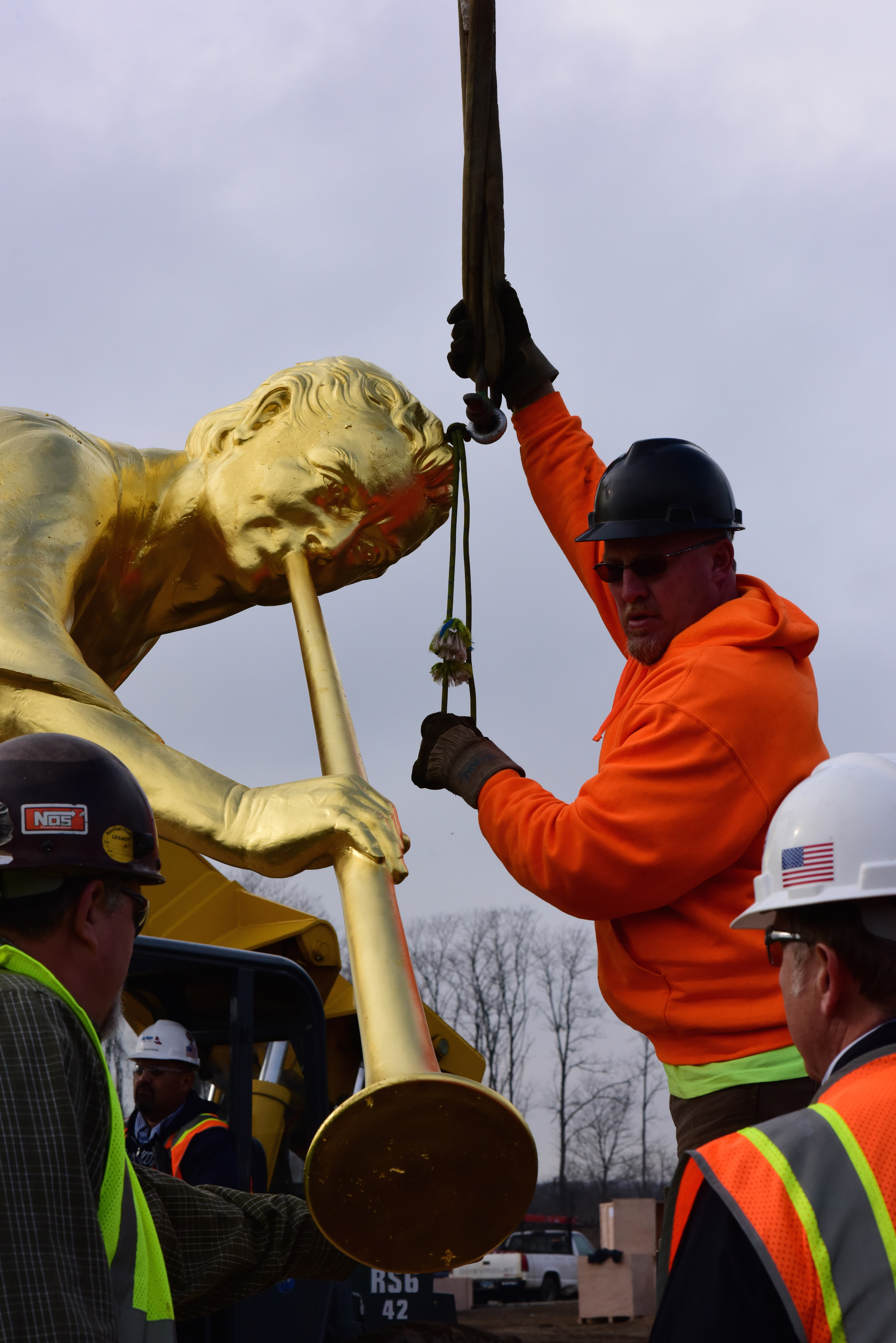 Some of the construction personnel working on the temple weren’t aware that the angel Moroni would be lifted in place on this day. Feeling the excitement of the occasion, several of them got a little teary-eyed as they watched the statue being pulled from the shipping crate. Many were close enough to snap photos of the statue.