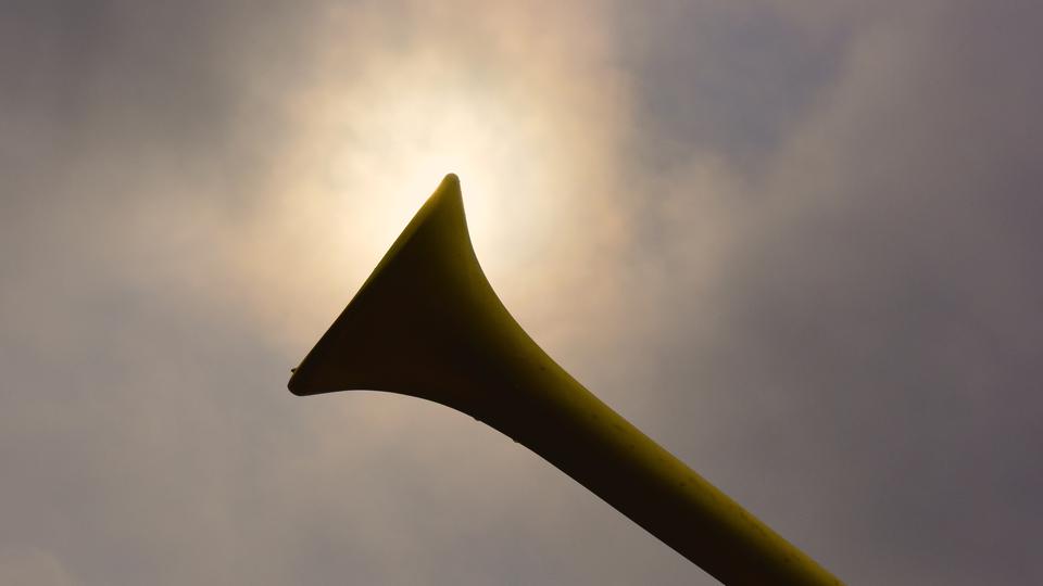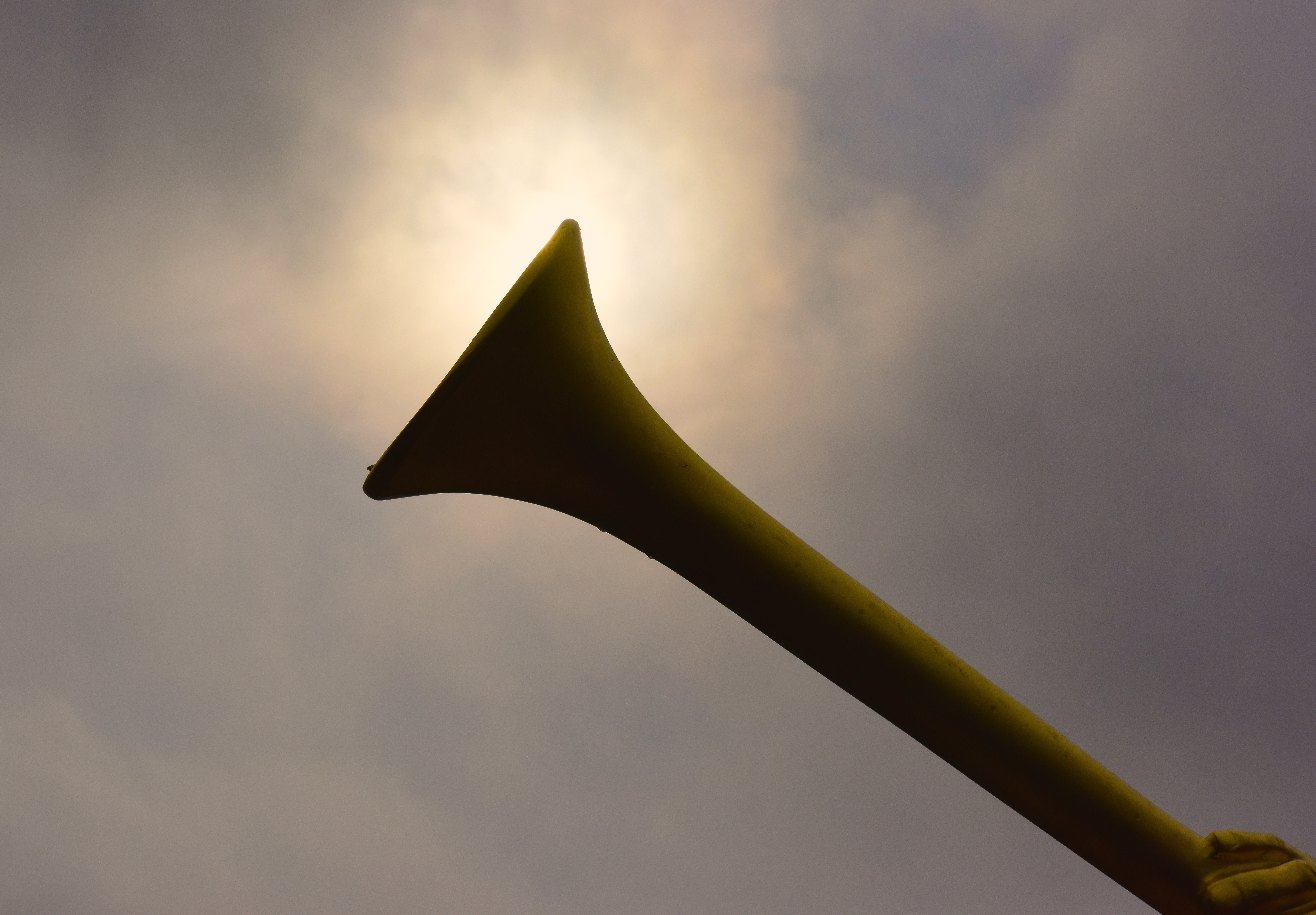 With the horn pressed to his lips and his right hand holding the outstretched horn, the statue of Moroni symbolizes the preaching of the gospel to the world. The angel Moroni, now on the Hartford Temple, is just over 13 feet tall and weighs approximately 1,000 pounds.
