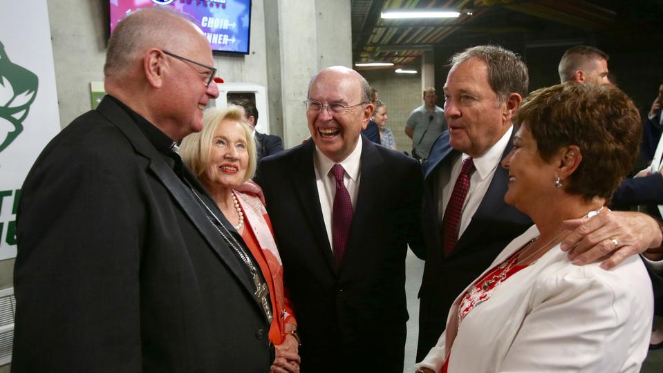 Cardinal Dolan has a long-standing relationship with leaders of The Church of Jesus Christ of Latter-day Saints, including Elder Quentin L. Cook of the Quorum of the Twelve Apostles, who introduced Cardinal Dolan to the audience at the Utah Valley University UCCU Center in Orem.
