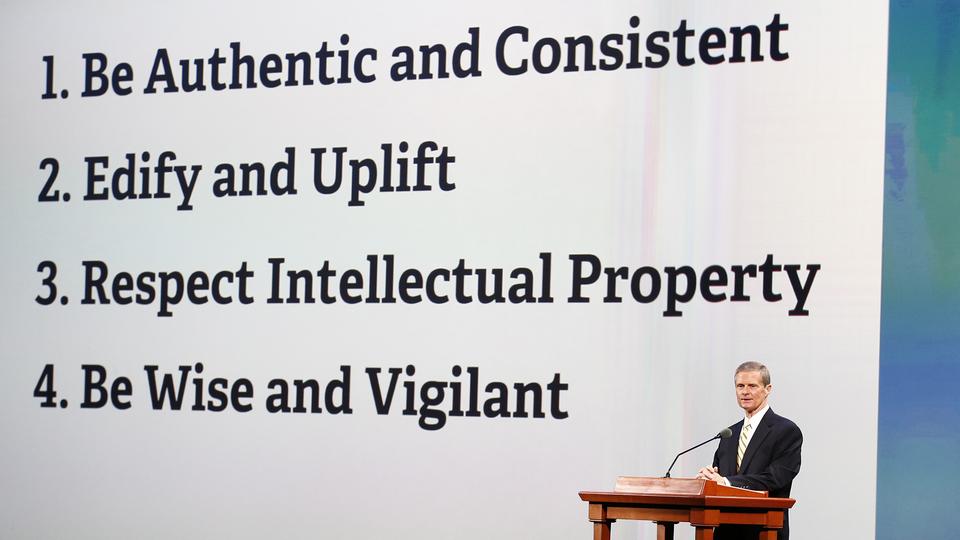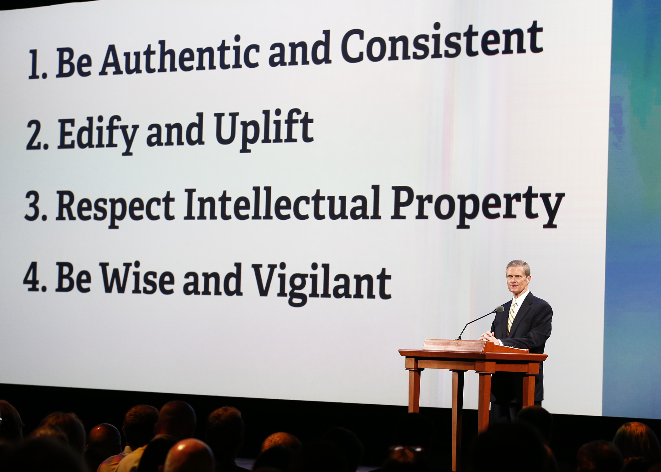 Elder Bednar encouraged listeners to be authentic and consistent when using social media and to only share content that uplifts and edifies. “We should not exaggerate, embellish, or pretend to be someone or something we are not. Our content should be trustworthy and constructive. Anonymity on the Internet is not a license to be inauthentic.”