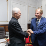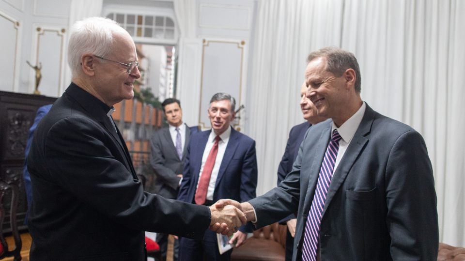 Elder Gary E. Stevenson of the Quorum of the Twelve Apostles, accompanied by his wife, Lesa, ministered in Recife and São Paulo, Brazil, May 20–26. He was accompanied by Elder Brent H. Nielson of the Presidency of the Seventy and his wife, Marcia. At the Metropolitan Curia in São Paulo, Elder Stevenson met with Odilo Scherer, Catholic Cardinal and Archbishop of the Archdiocese of São Paulo. Cardinal Scherer was very interested in how the Church of Jesus Christ has connected with young people. Using the “For the Strength of Youth” pamphlet, Elder Stevenson shared his feelings about modern young people, the challenges they face and the initiatives the Church uses to involve them.