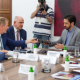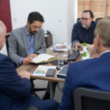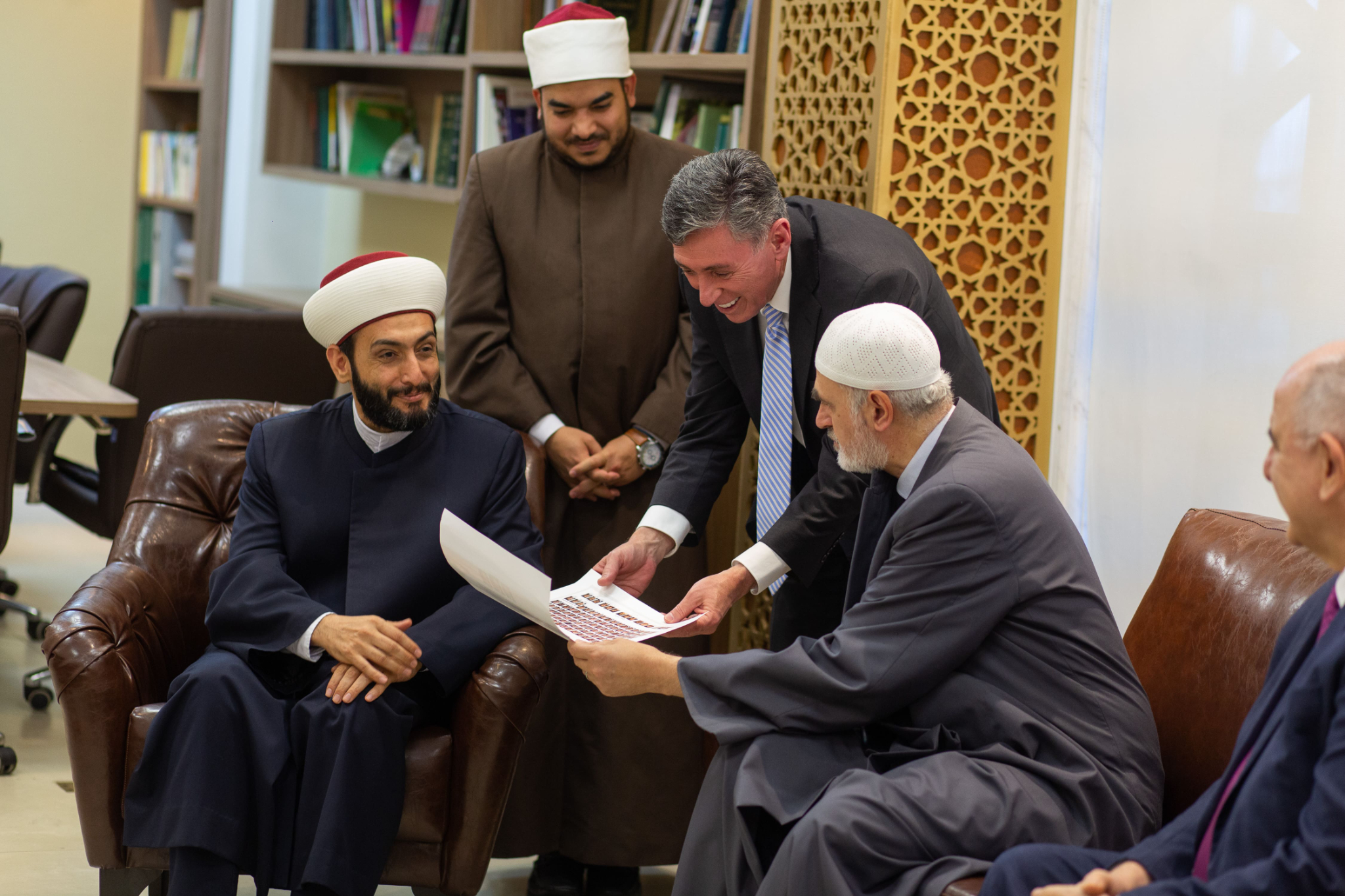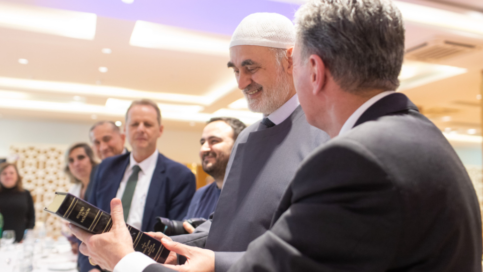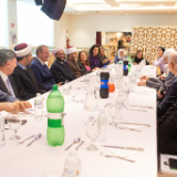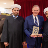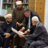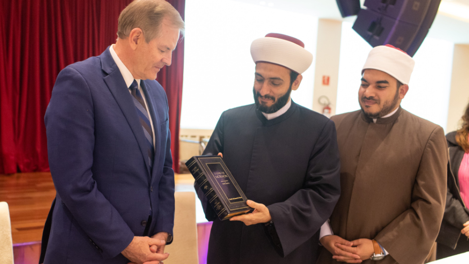 “By sitting and eating together, we further strengthen this relationship which is already so positive,” said Sheikh Mohamad Al Bukai. “We are very happy with your presence today.” At the end of the visit, Elder Stevenson was presented with a copy of the Quran, and in turn, the Sheikhs were given a copy of the Book of Mormon.